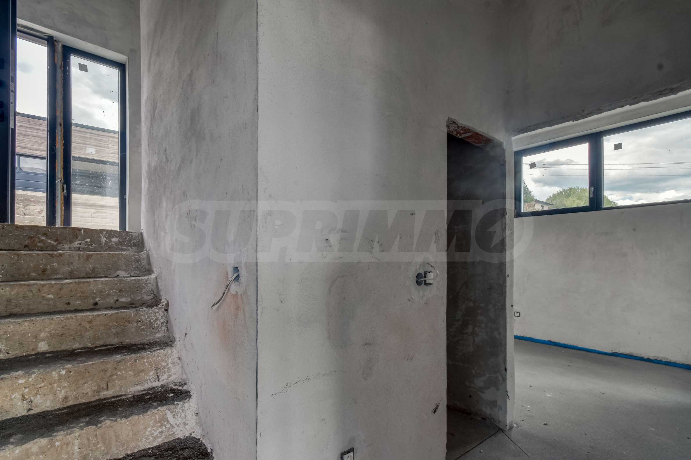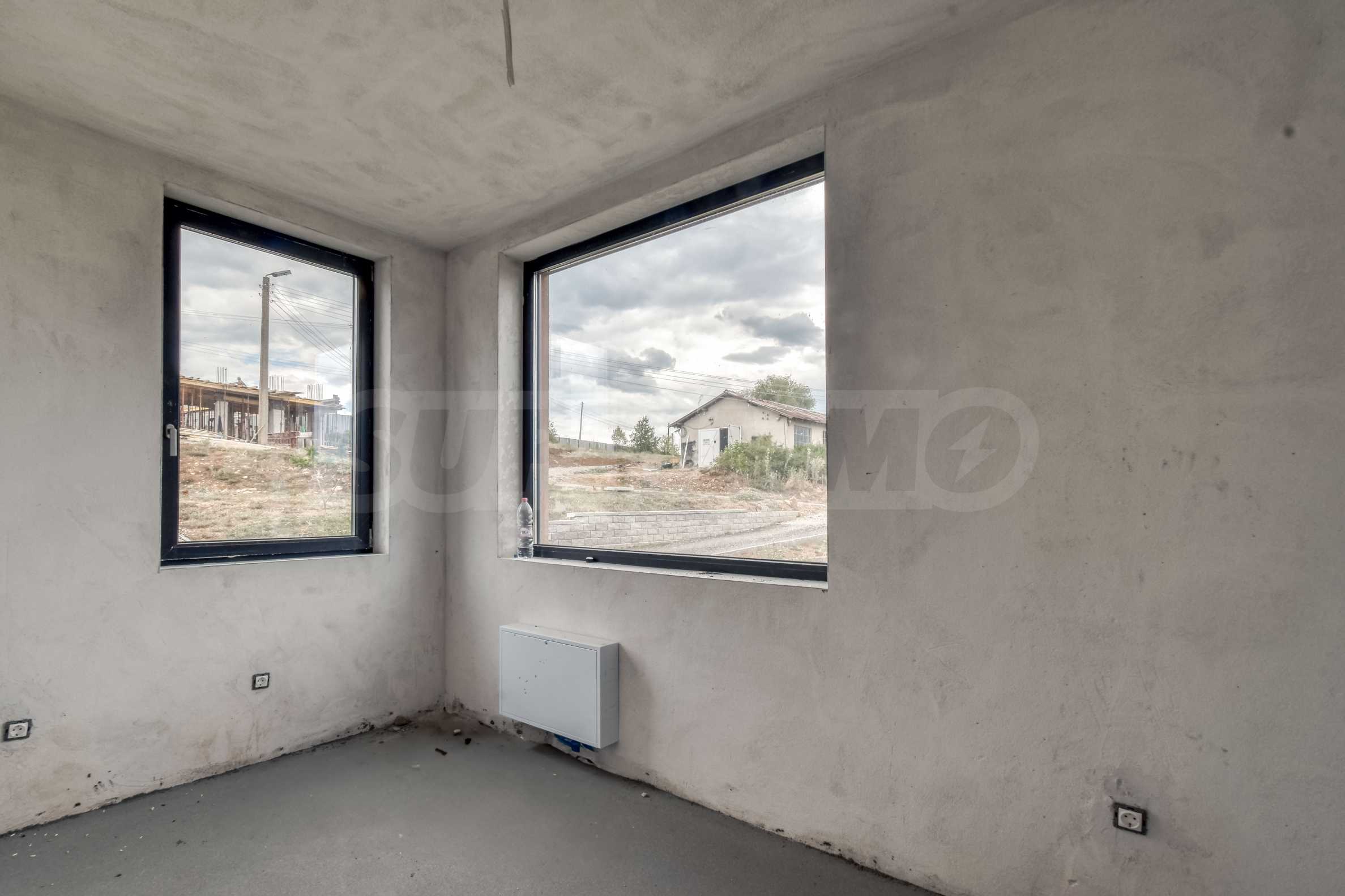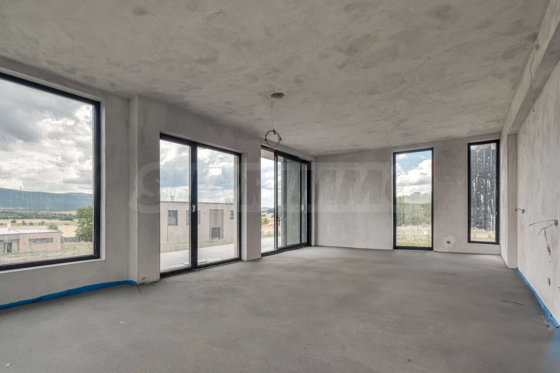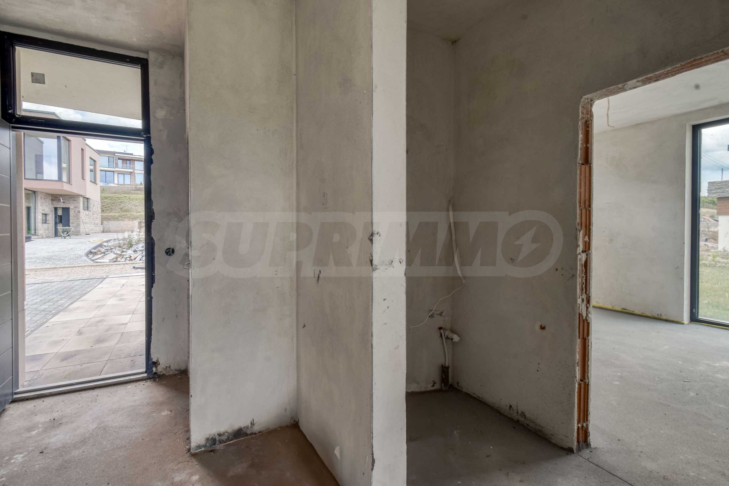 Архитектурната визия на комплекса съчетава изчистени линии, естествени материали като камък и дърво и внимателно подбрани фасадни решения. Висок клас изолация, дограма Rehau Geneo с троен стъклопакет, модерни входни врати и надеждни покривни решения гарантират дълготрайно качество и енергийна ефективност. Отоплението е предвидено чрез термопомпа и подово отопление, а интериорът се предава на шпакловка и замазка, с възможност за завършване „до ключ“ по индивидуален проект.