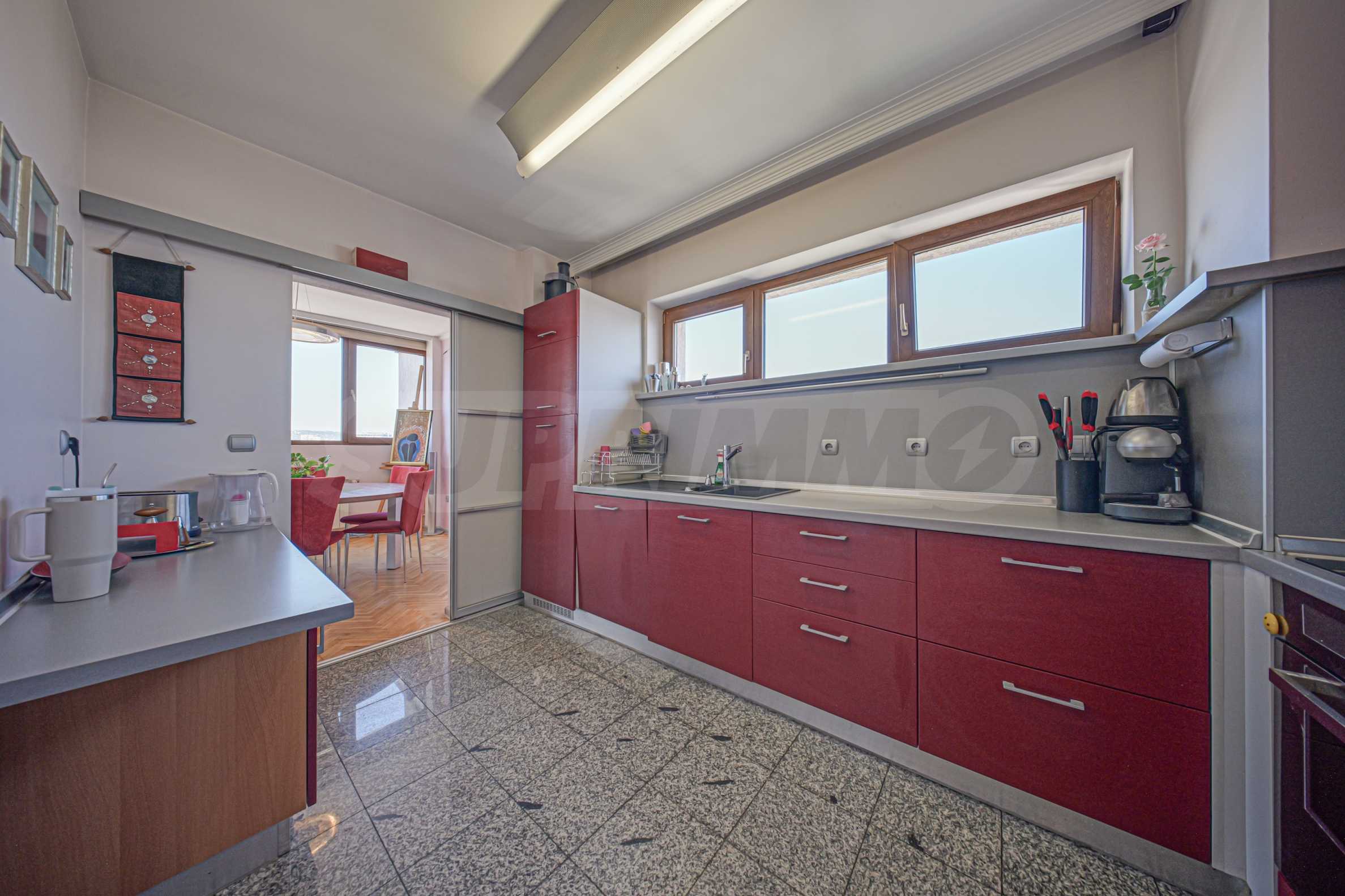 Разположен е на 10-ти етаж и има изложение на изток, запад и север.