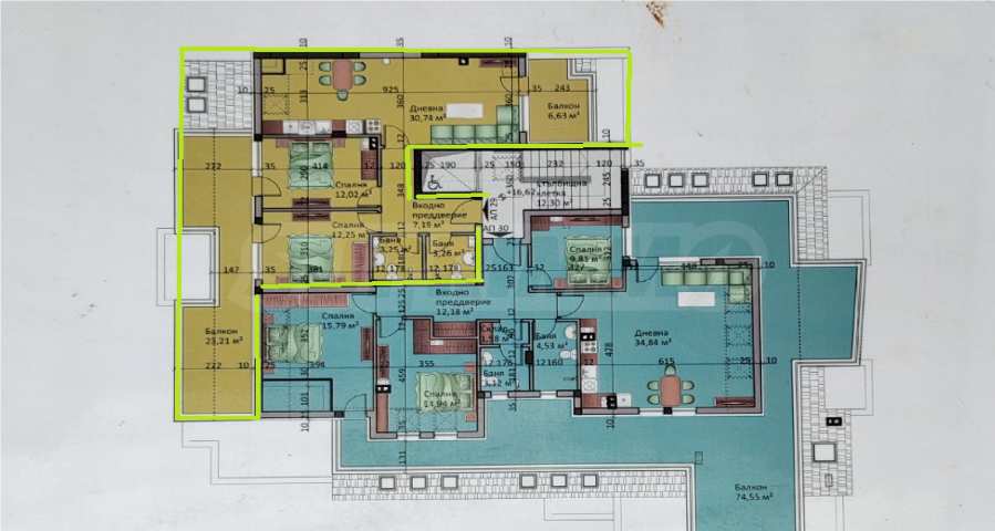 Обща площ на апартамента: 137 кв.м. (жилищна – 117 кв.м.) + складово помещение 3 кв.м. в сутерен.