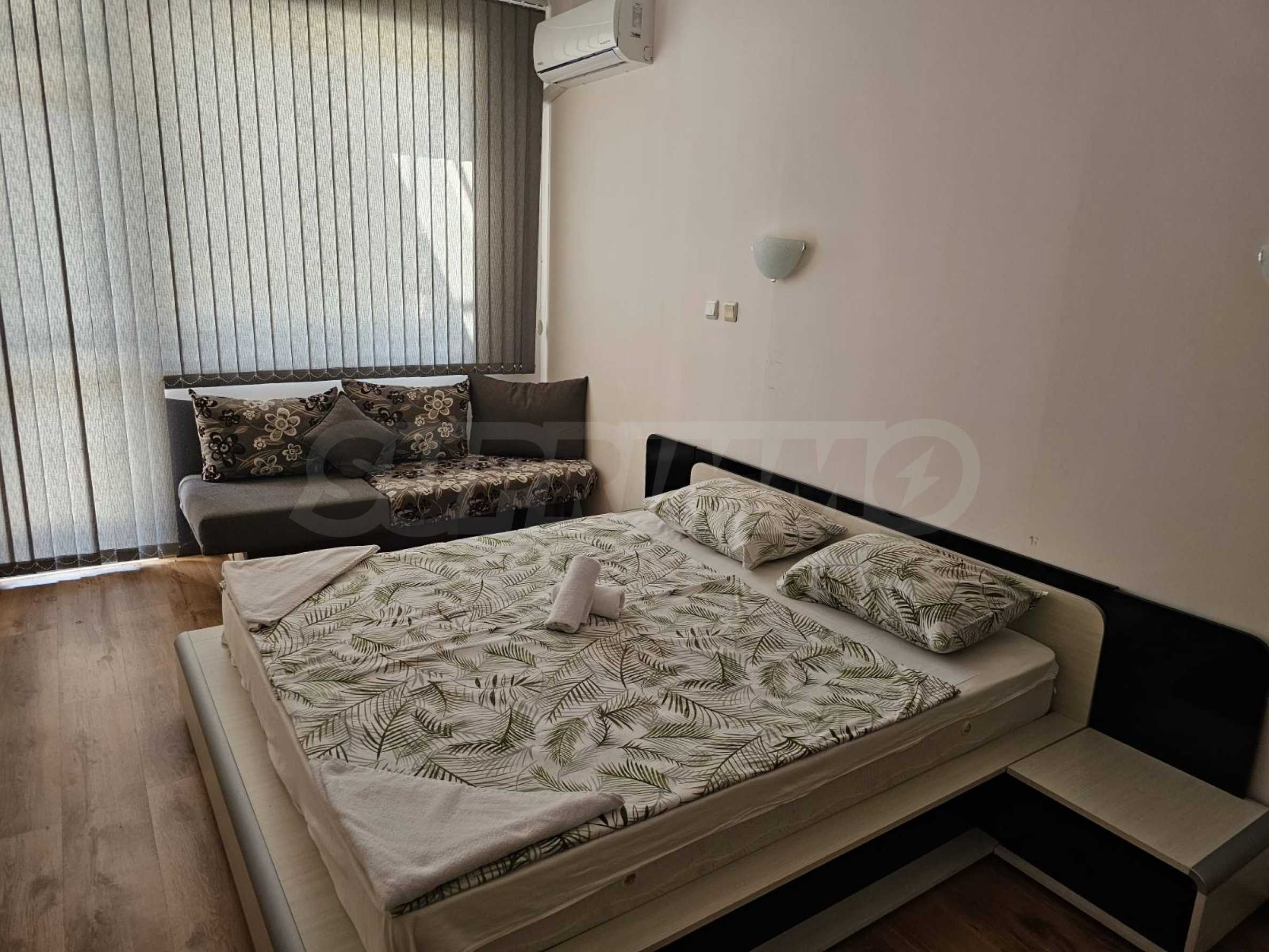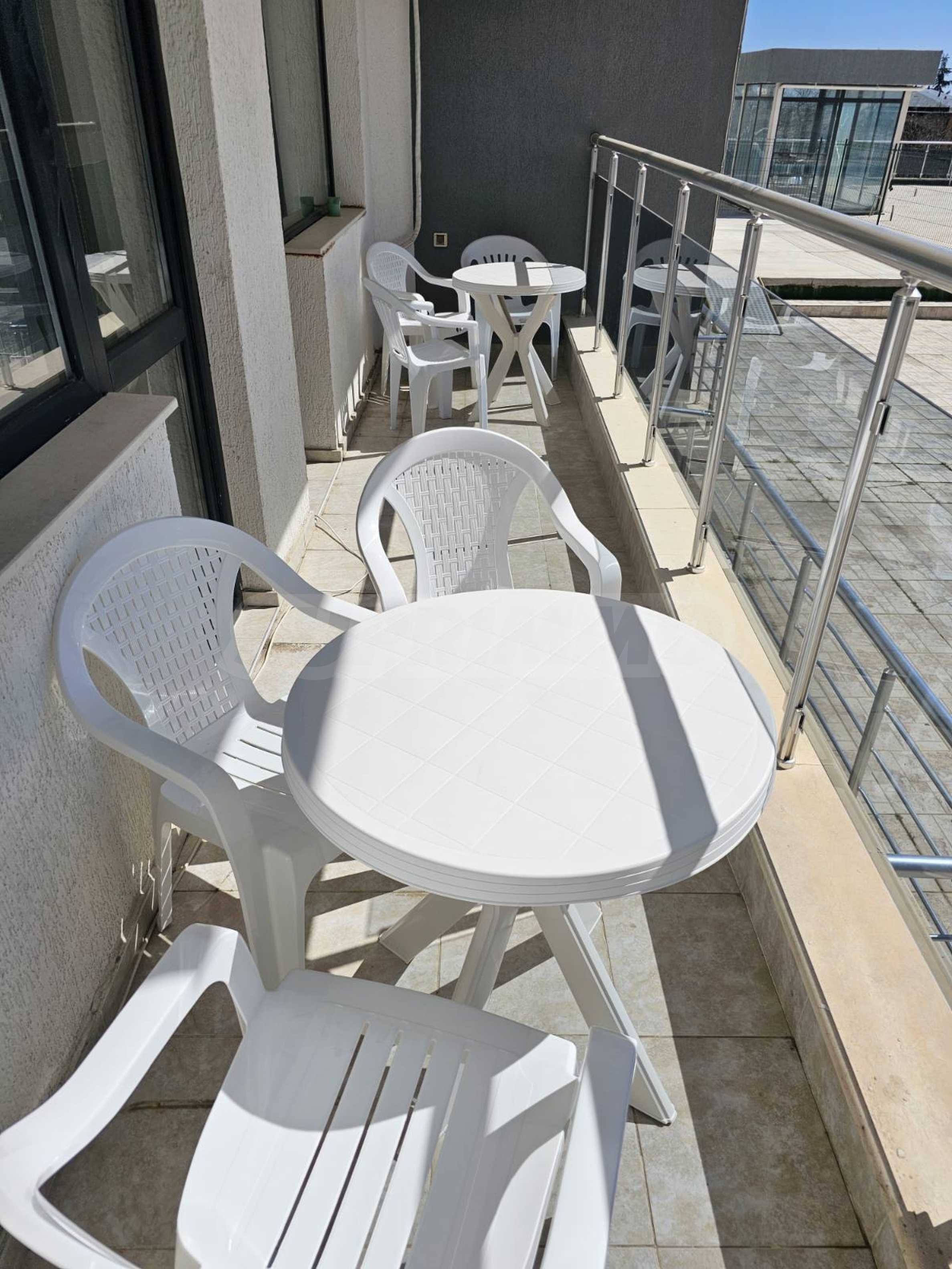 Жилището е напълно обзаведено и оборудвано, с мебели и техника, има монтирани климатици във всяко помещение. Подходящо е както за лично ползване, така и за инвестиция за отдаване под наем.