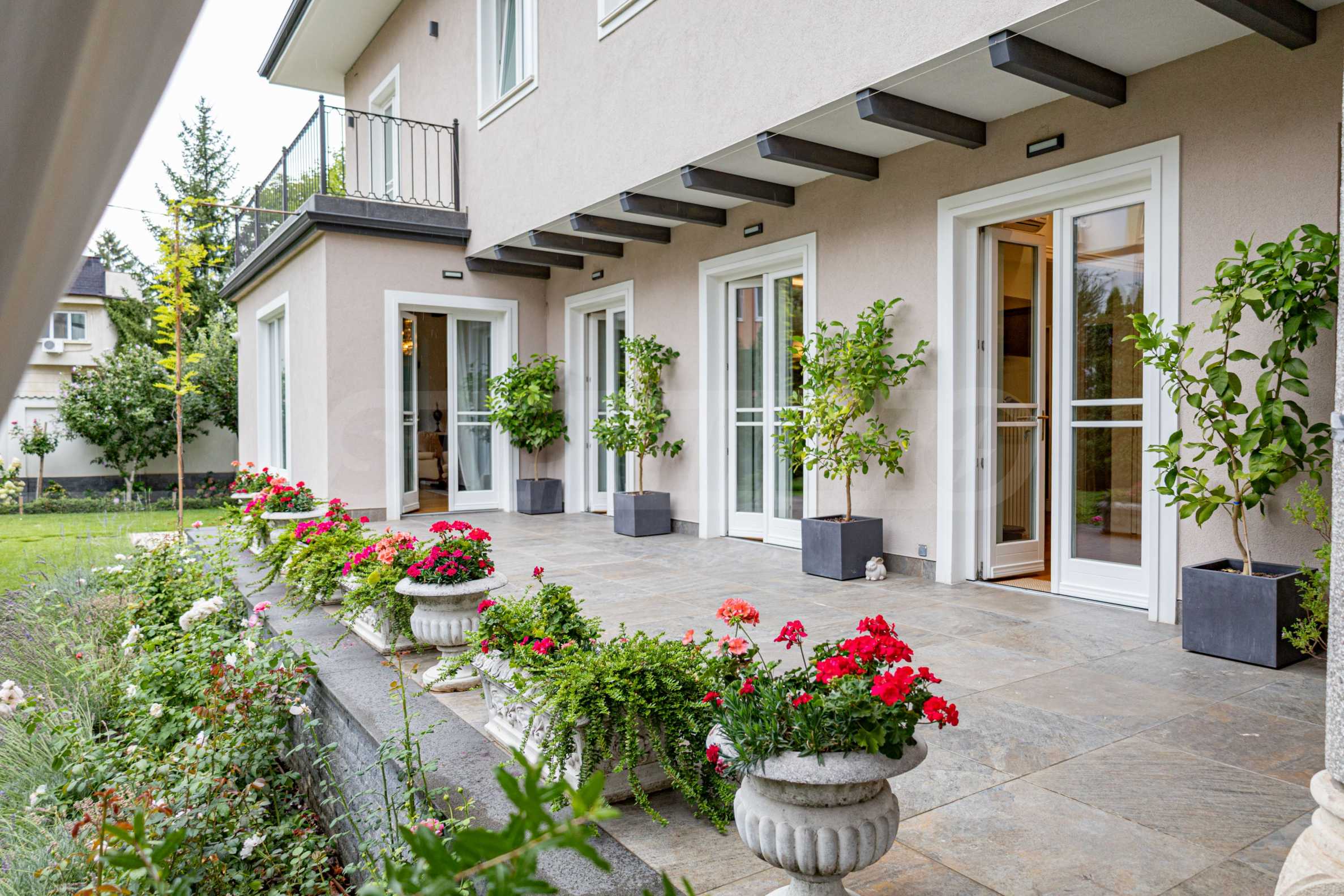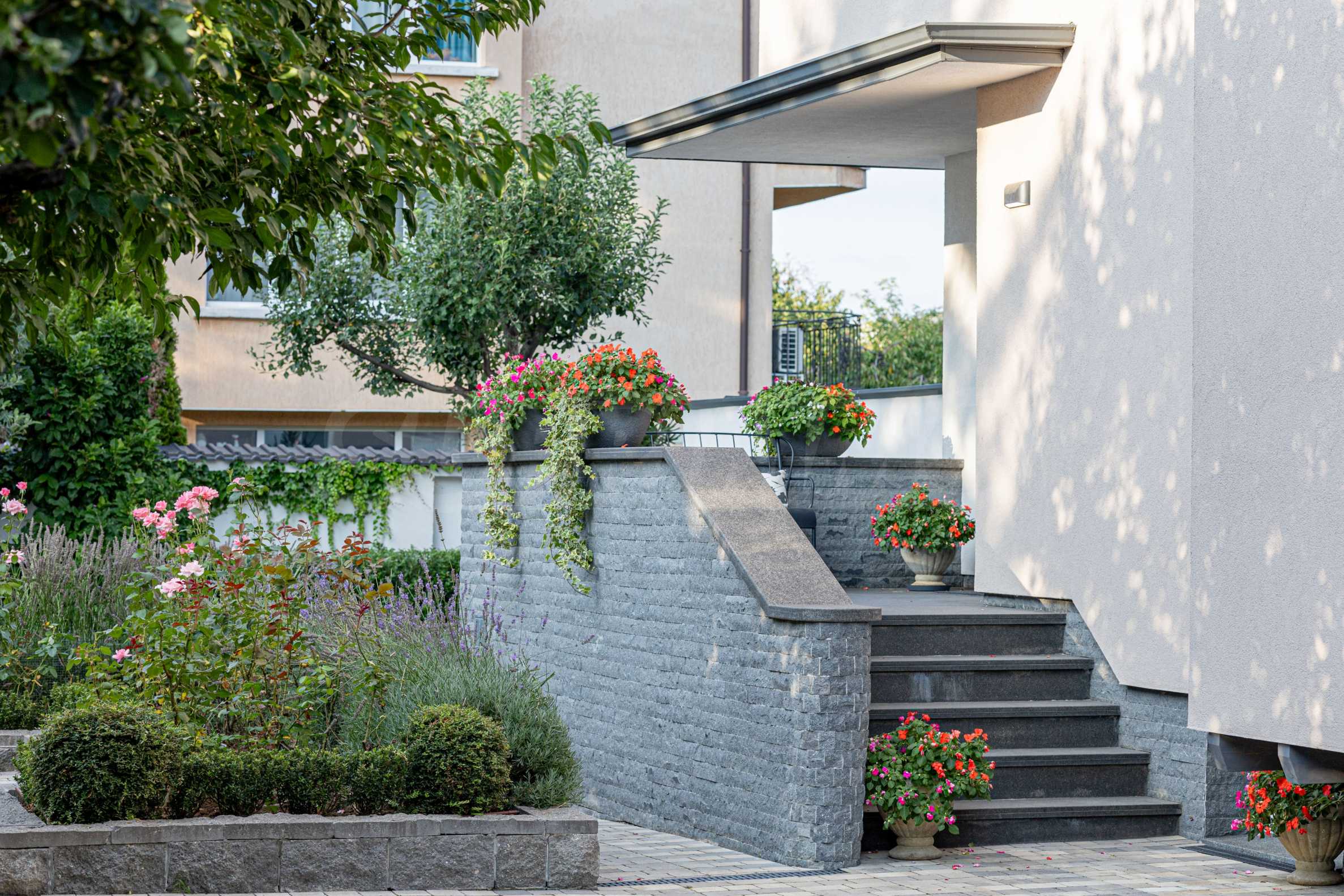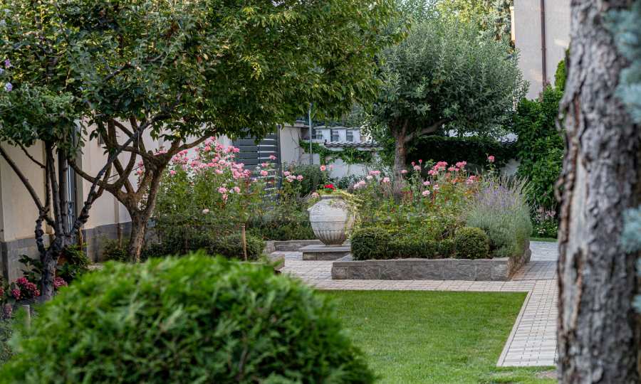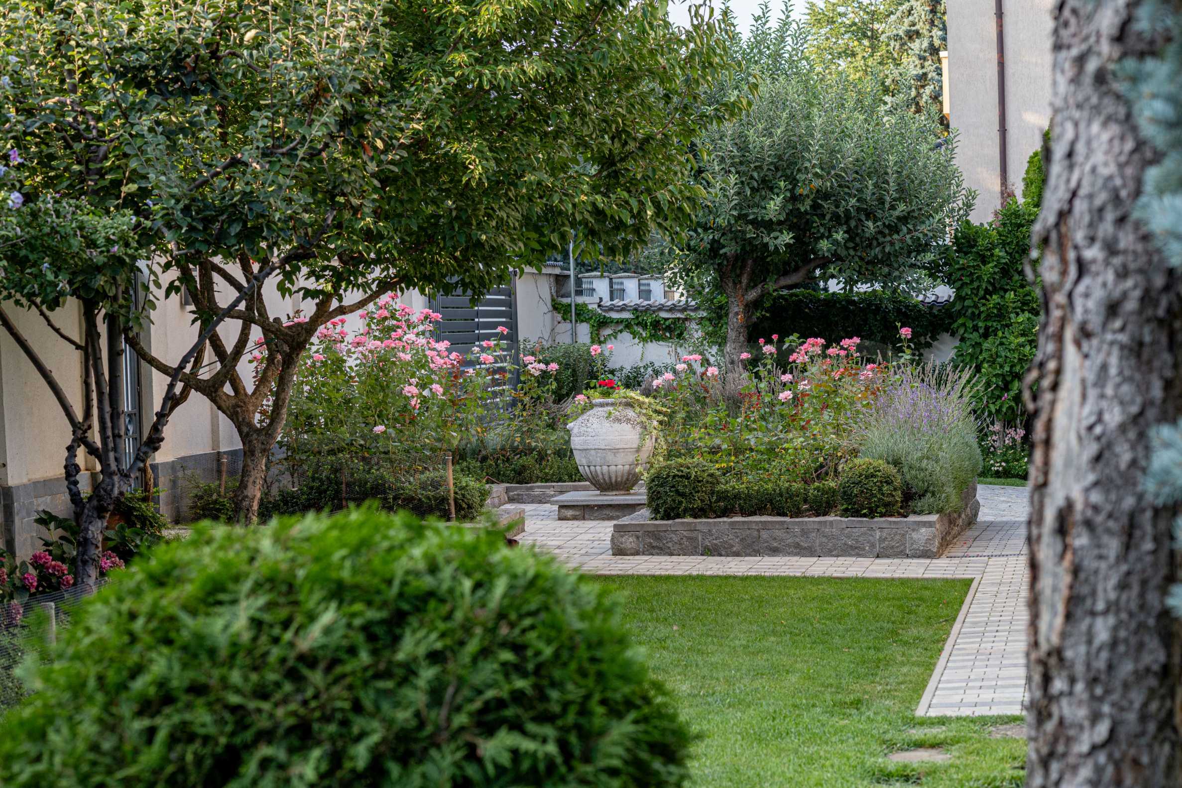 Градината продължава приказката за елегантност и непреходност – водното огледало, розариум, аромат на лавандула и красивото озеленяване ще Ви накарат да забравите, че сте в София.