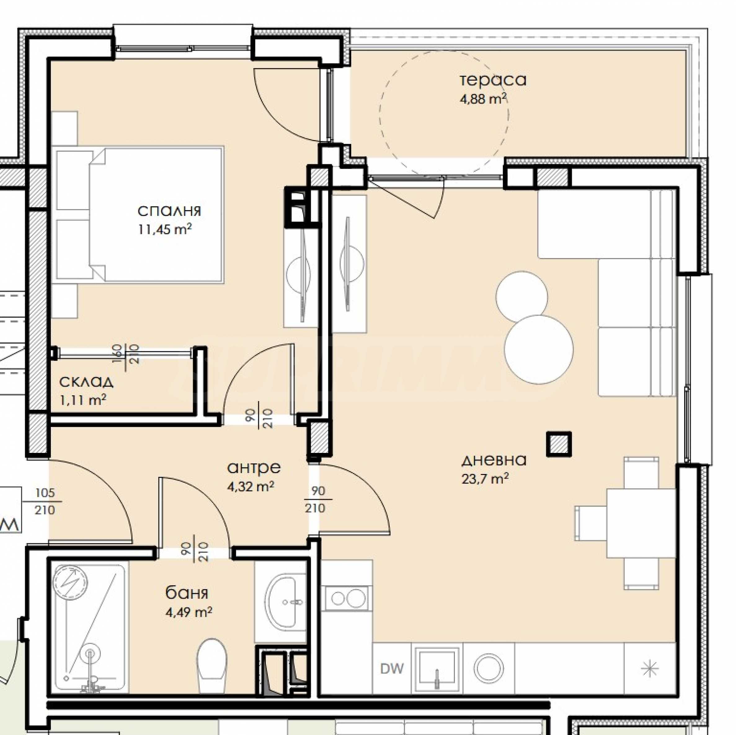 Предлаганият имот е разположен на 3-ти етаж, с обща площ от 70,36 кв.м със следното разпределение: