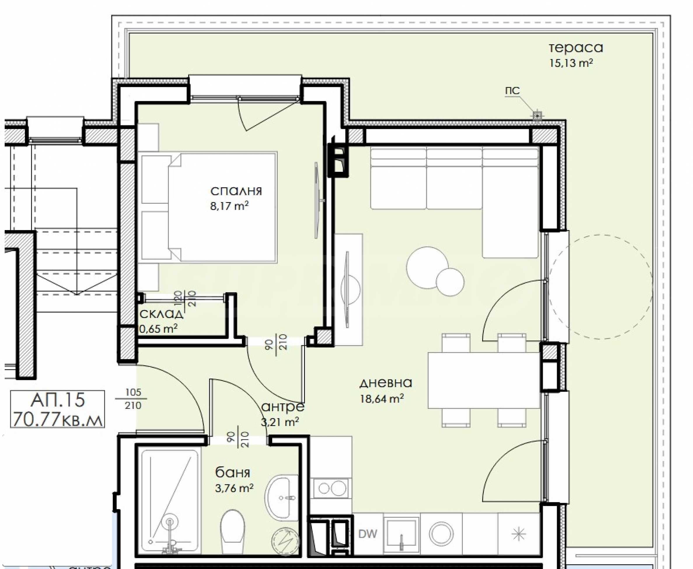 Сградата ще бъде с асансьор, с 15 апартамента, разположени на четири жилищни и сутеренен етаж. Предлагат се надземни и подземни паркоместа за продажба.