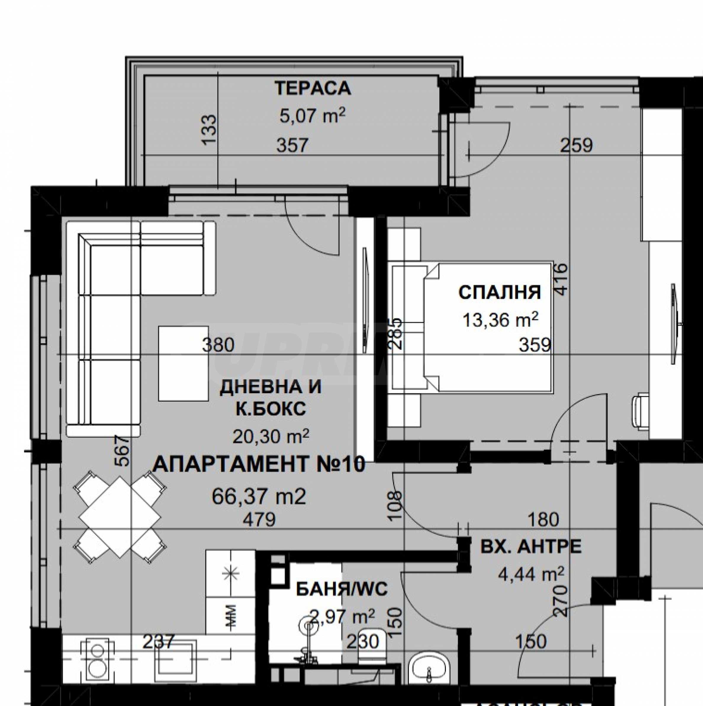 • дневна с кухненски бокс;