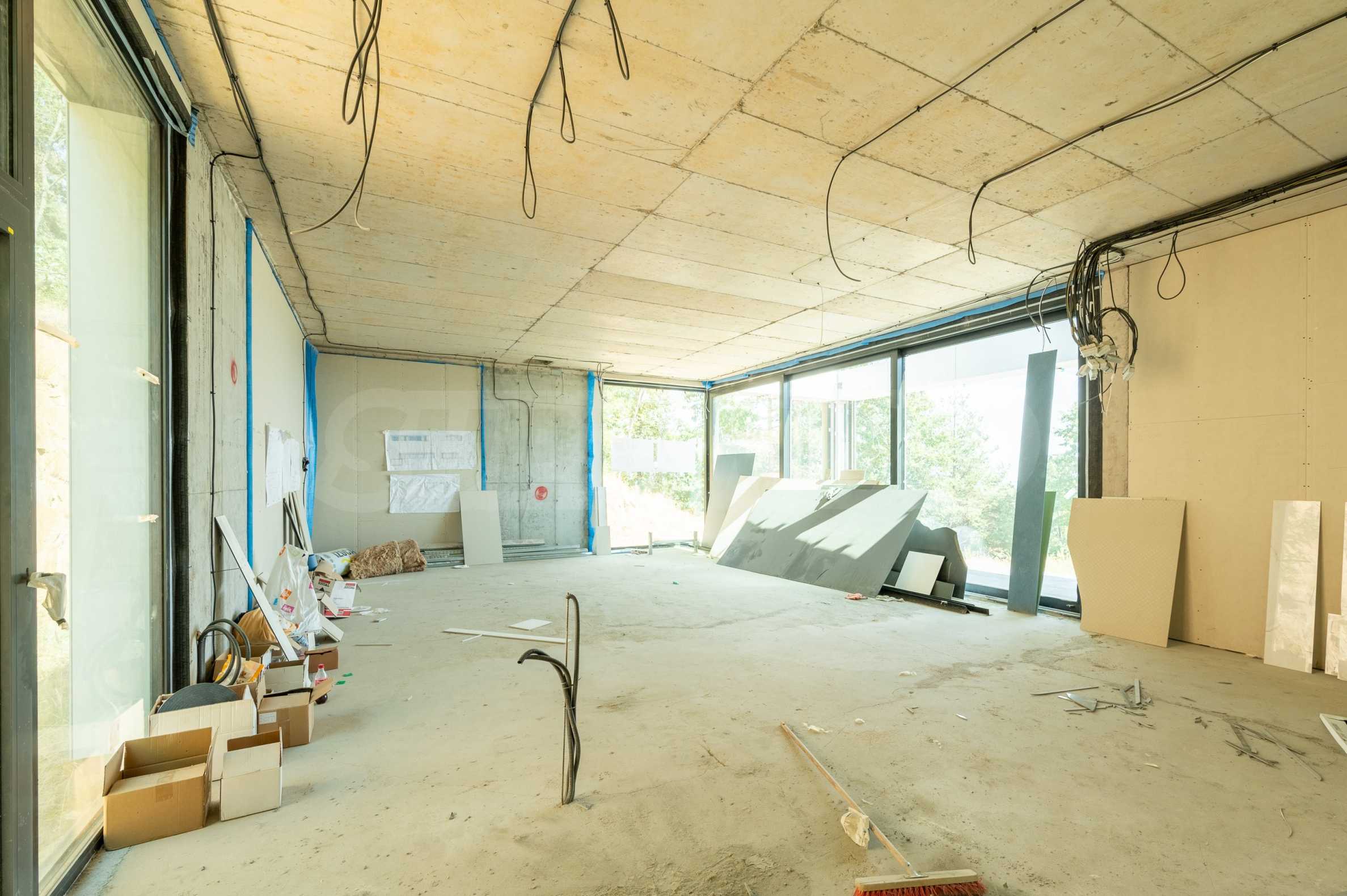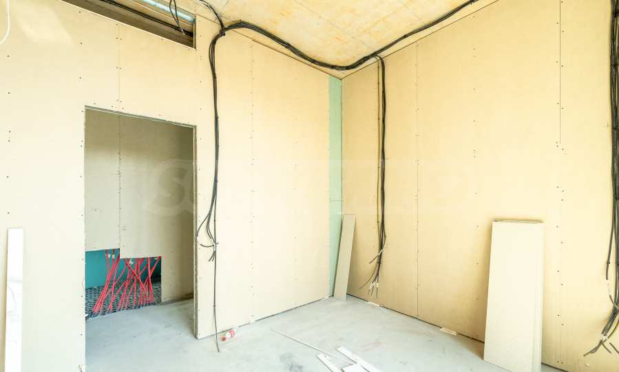 В момента къщата е на етап Акт 14, като очакваното въвеждане в експлоатация е през 2026 г. Имотът ще бъде предаден от строителя напълно завършен „до ключ“ – с настилки, кухня, камина, готови бани и тоалетни, съгласно високия стандарт на проекта.