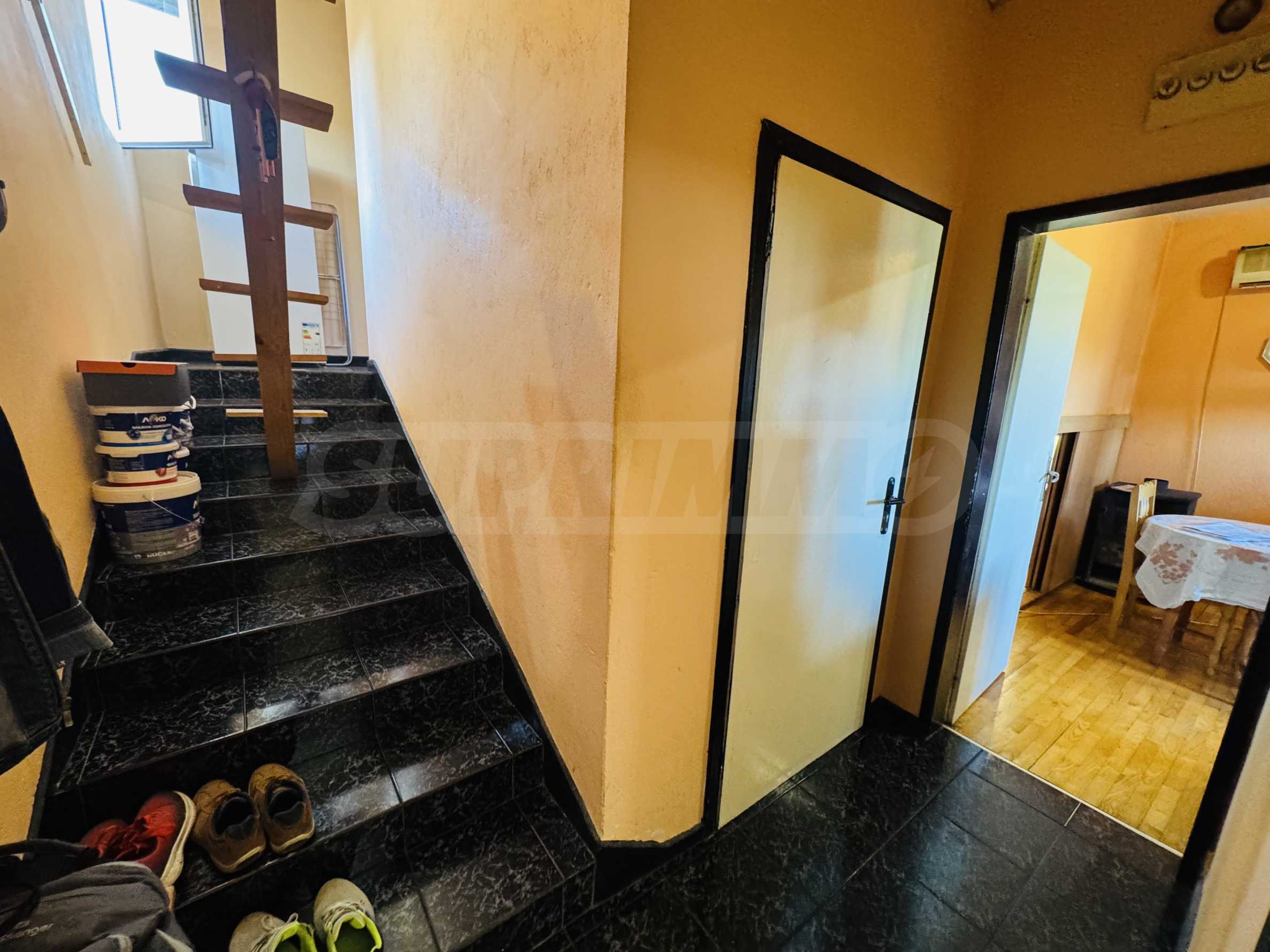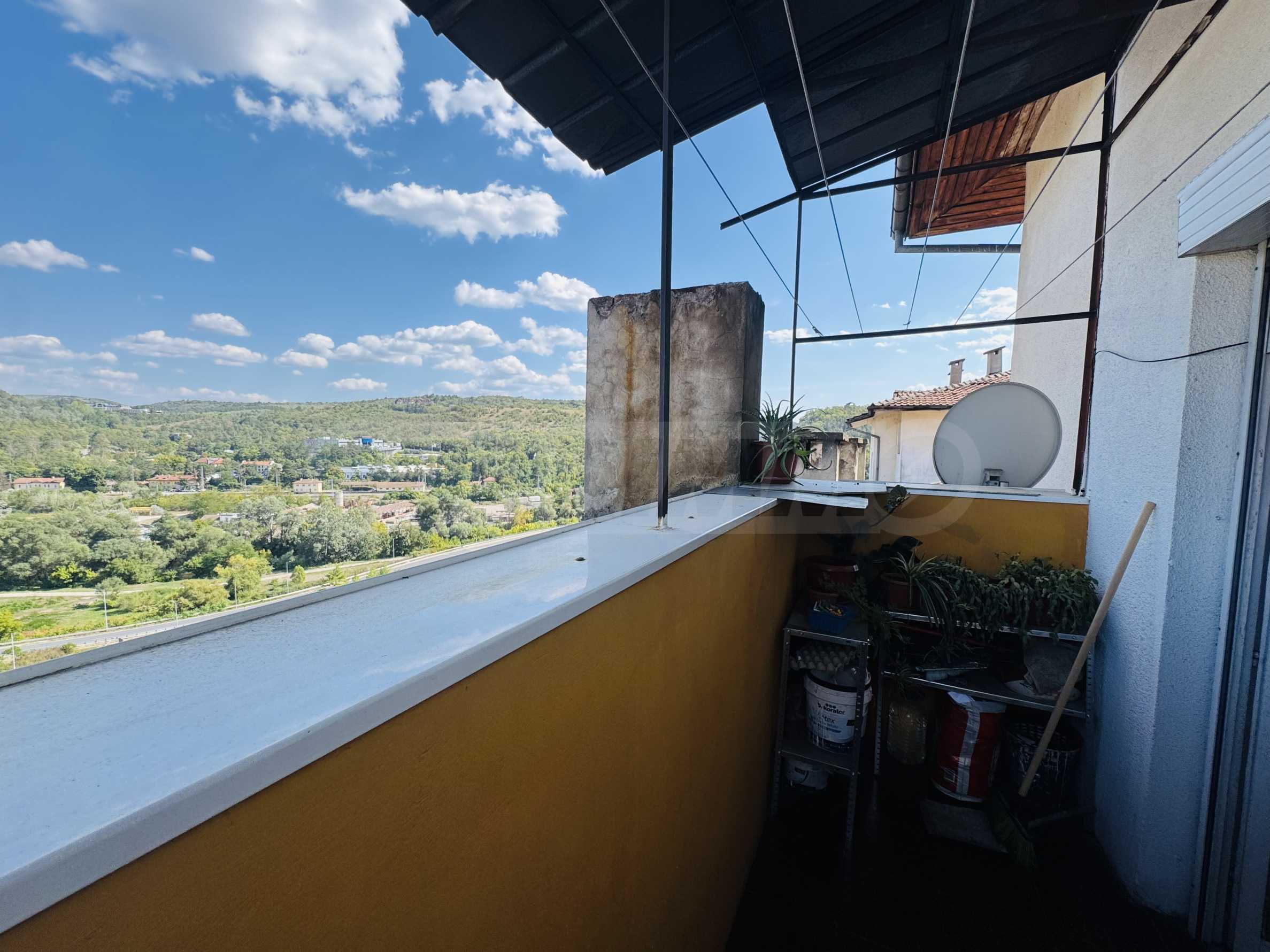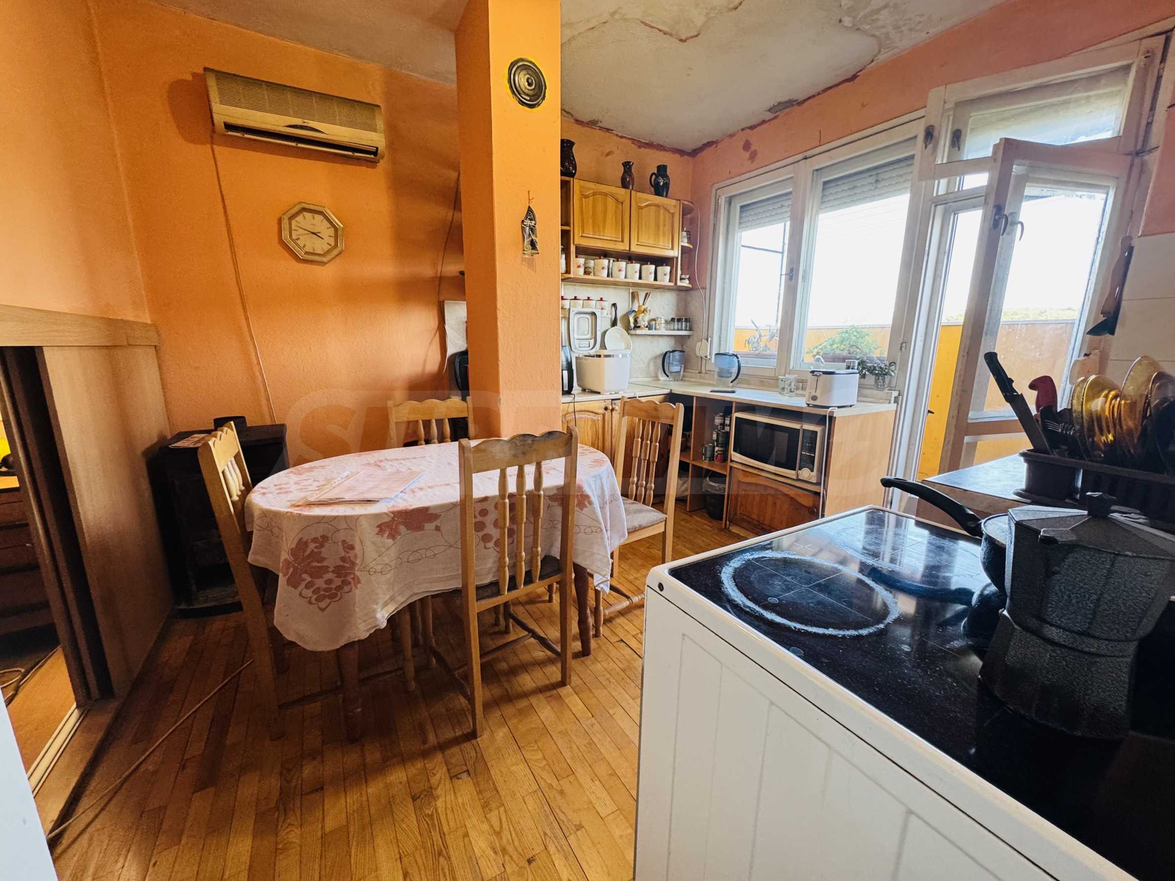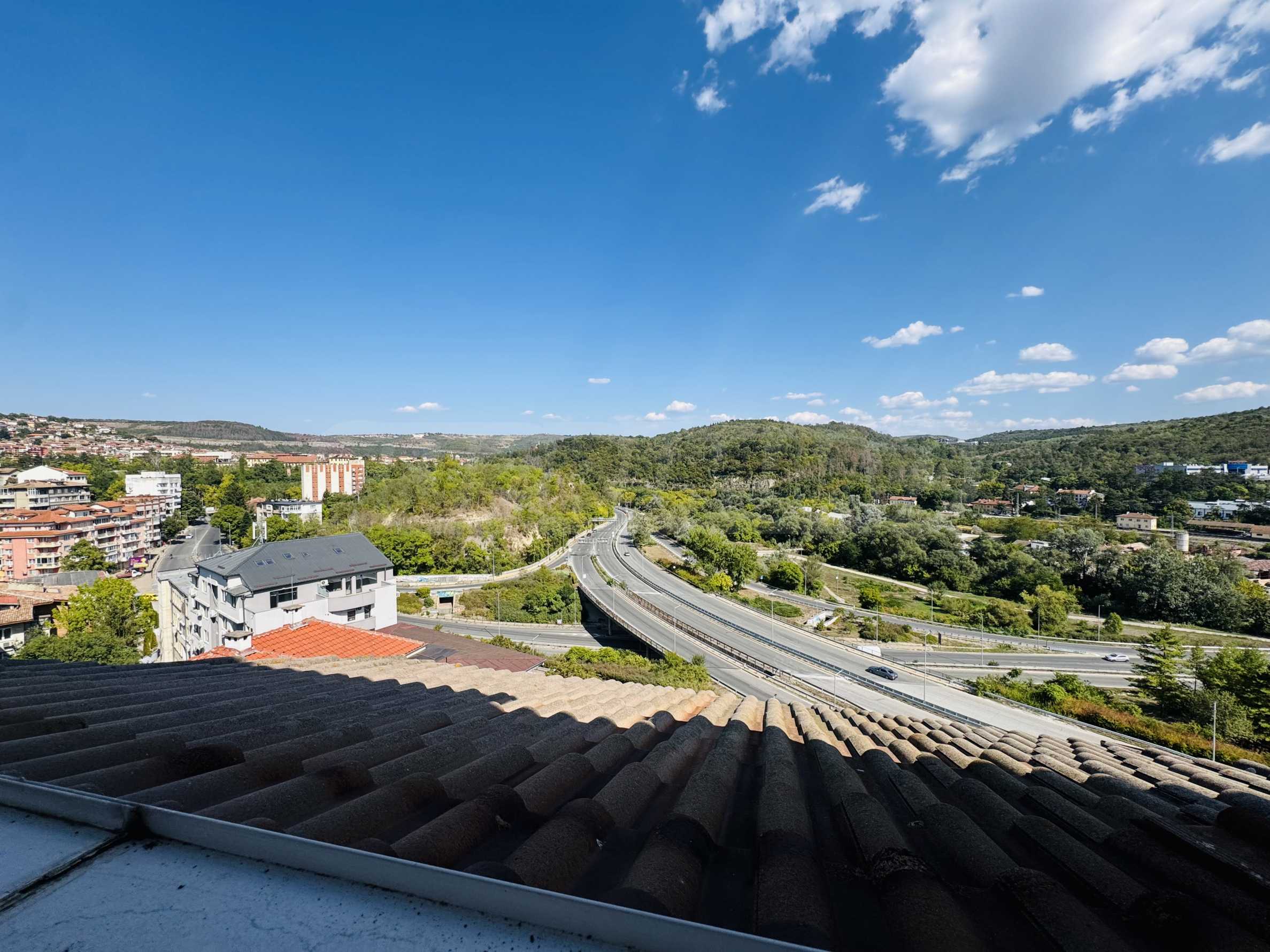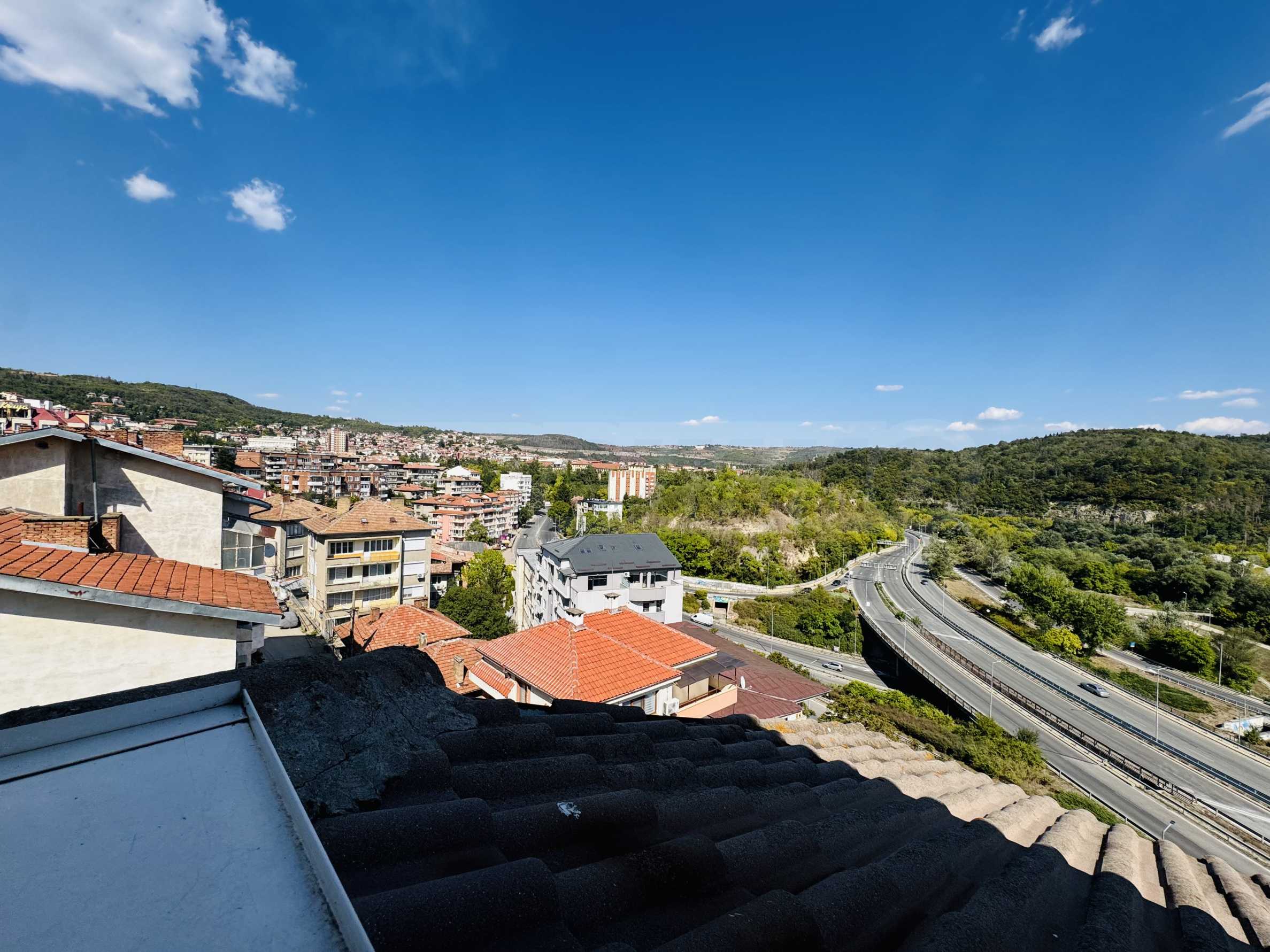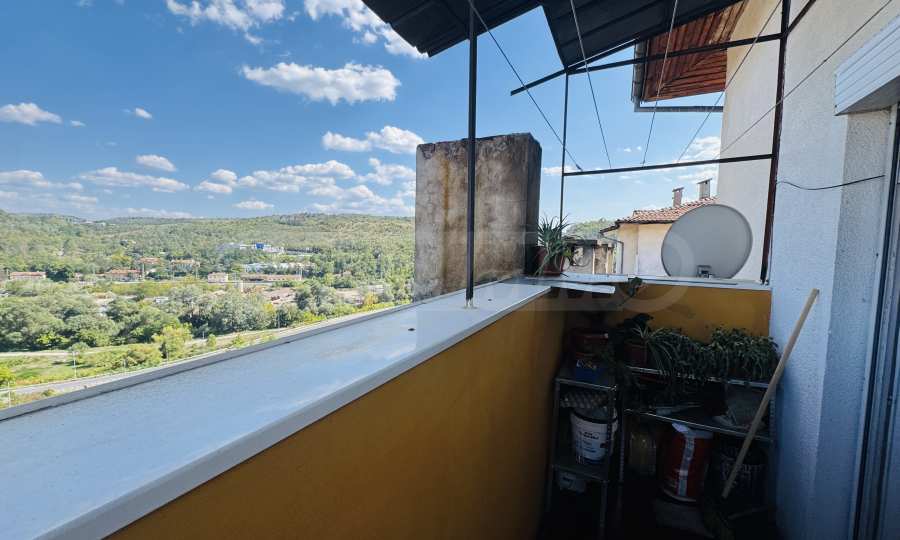 Състои се от дневна с кухня и тераса с панорама, складово помещение с височина 1.20 м превърнато в малка спалня, широка баня с тоалетна, а на второто ниво има хол/ спалня с вграден дрешник по цялата стена. Дограмата е частично сменена. Правен е ремонт на покрива 2023. Не е имало течове в жилището. На плочата има 10 см каменна вата.