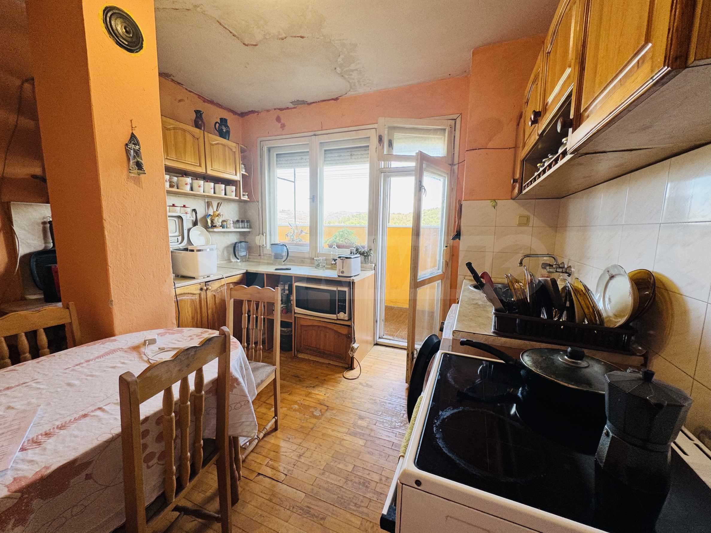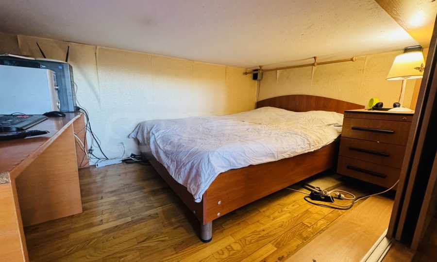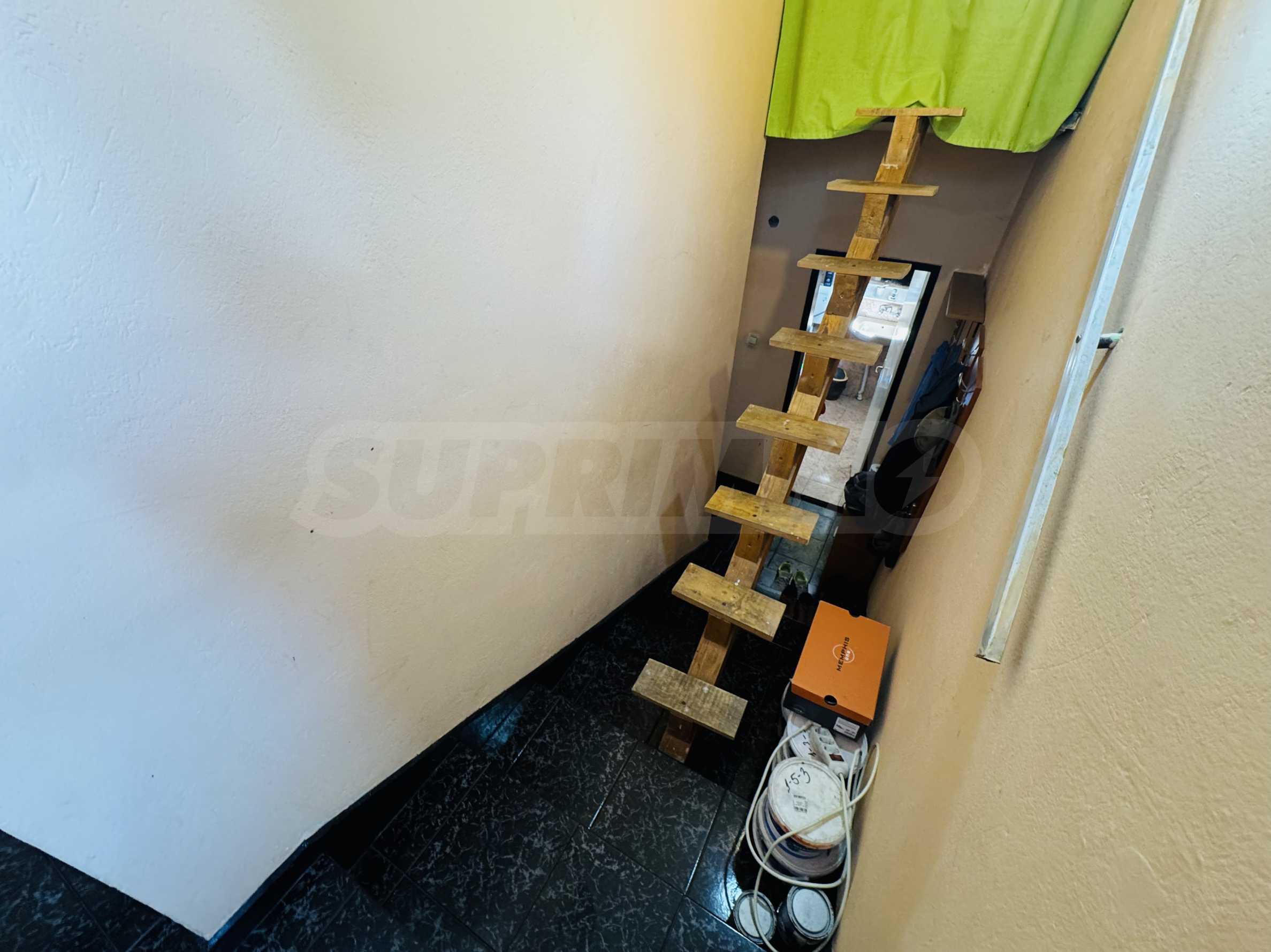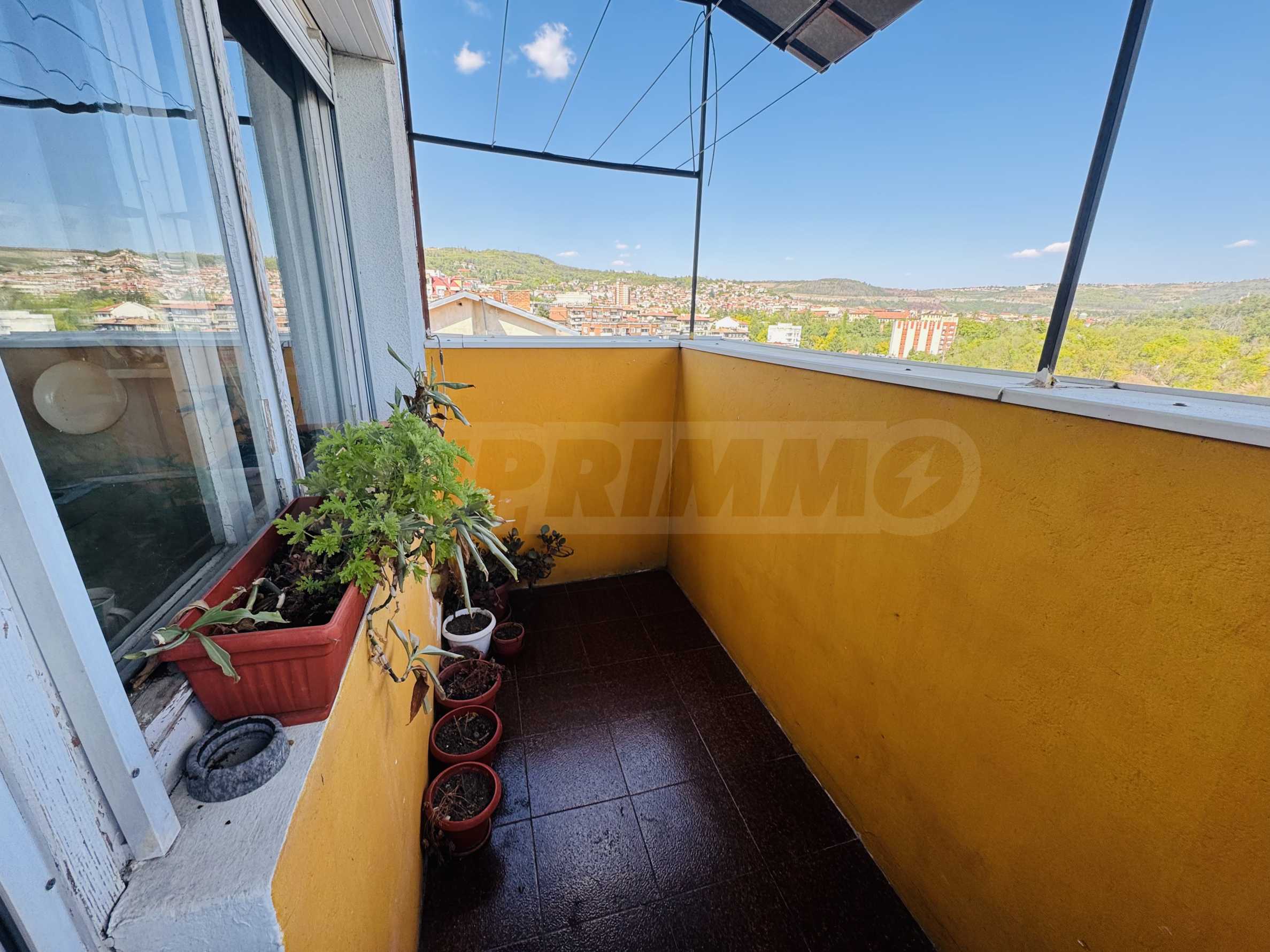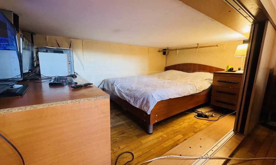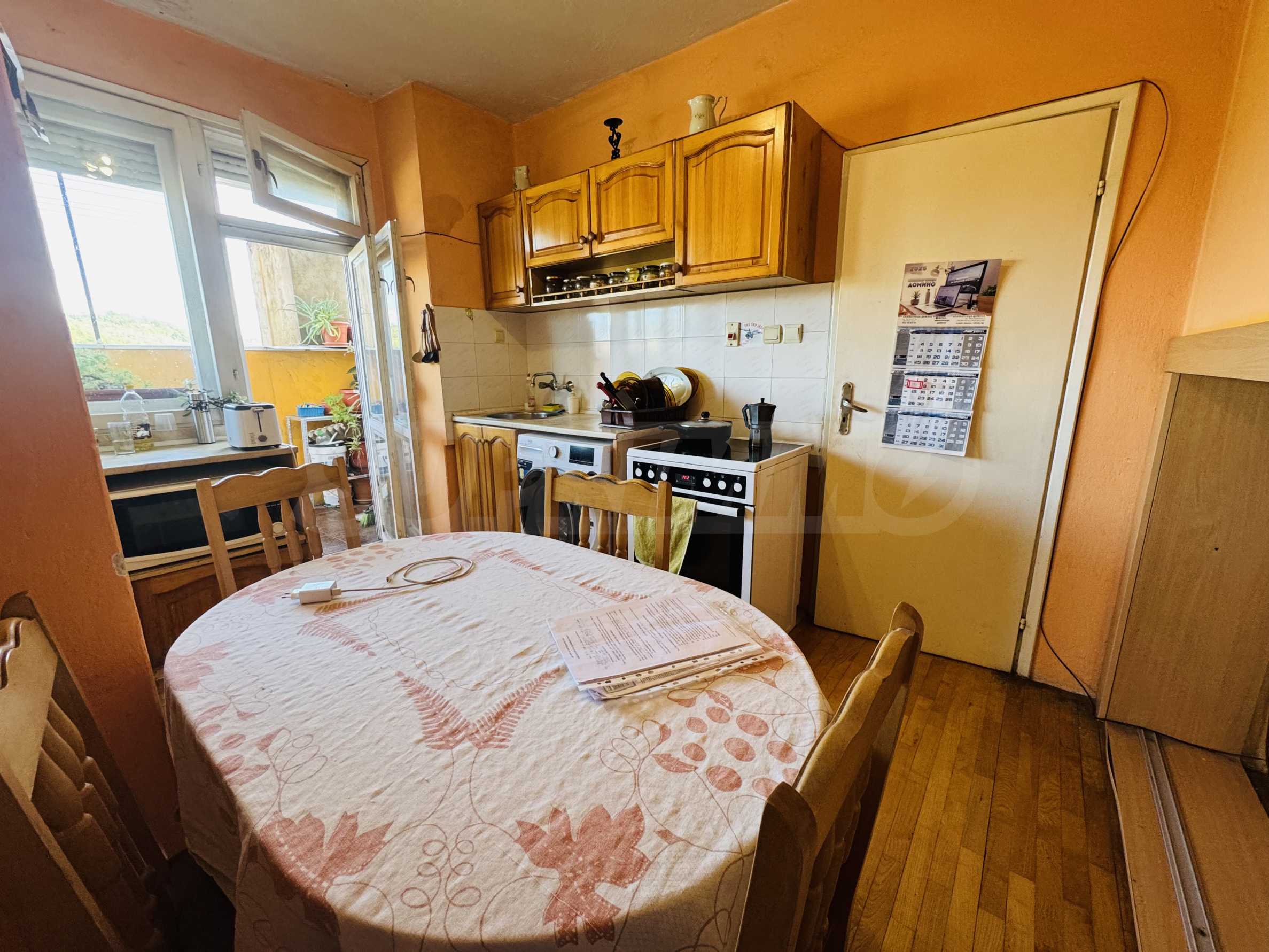 Състои се от дневна с кухня и тераса с панорама, складово помещение с височина 1.20 м превърнато в малка спалня, широка баня с тоалетна, а на второто ниво има хол/ спалня с вграден дрешник по цялата стена. Дограмата е частично сменена. Правен е ремонт на покрива 2023. Не е имало течове в жилището. На плочата има 10 см каменна вата.