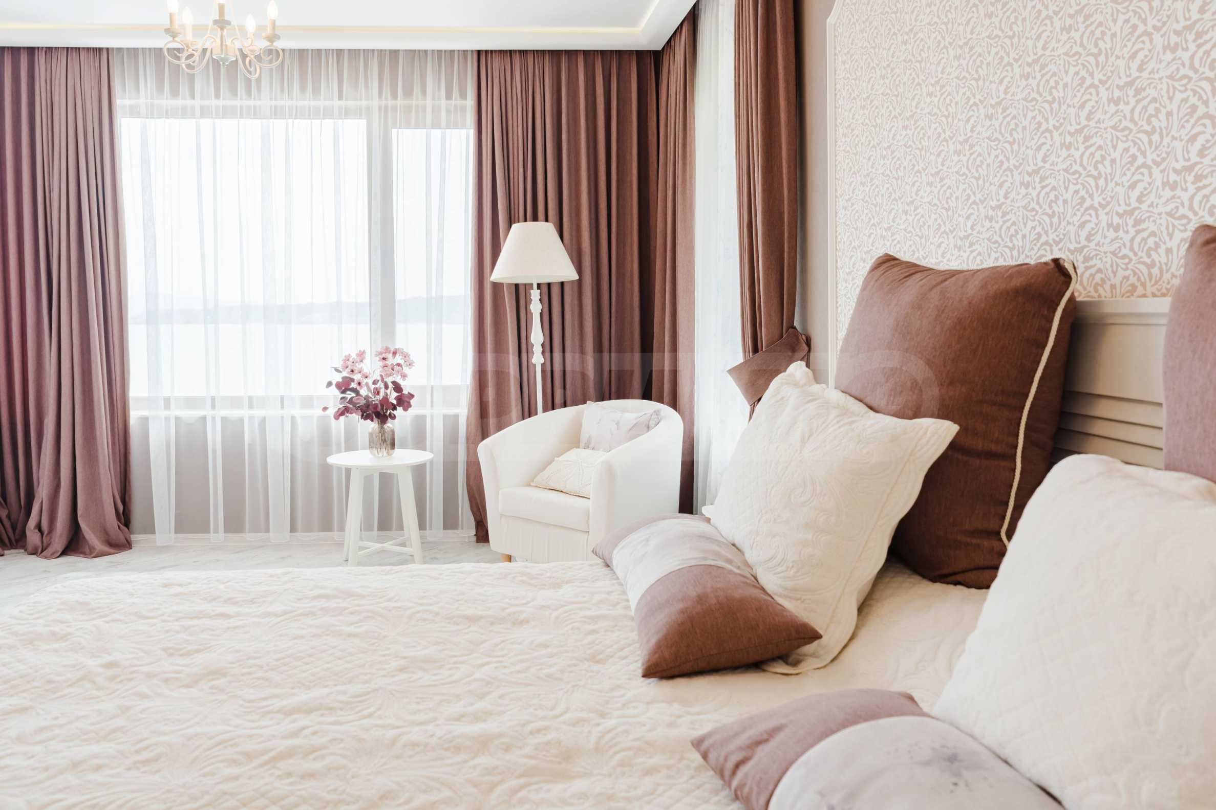 • родителска спалня със самостоятелна баня: мебели по индивидуален проект, климатик;