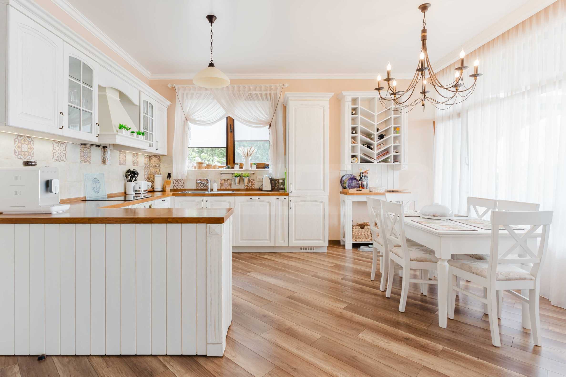• кухня с мебели по индивидуален проект, вграден хладилник с фризер, котлони - 4 бр, вградена ел. фурна, съдомиялна машина, абсорбатор;