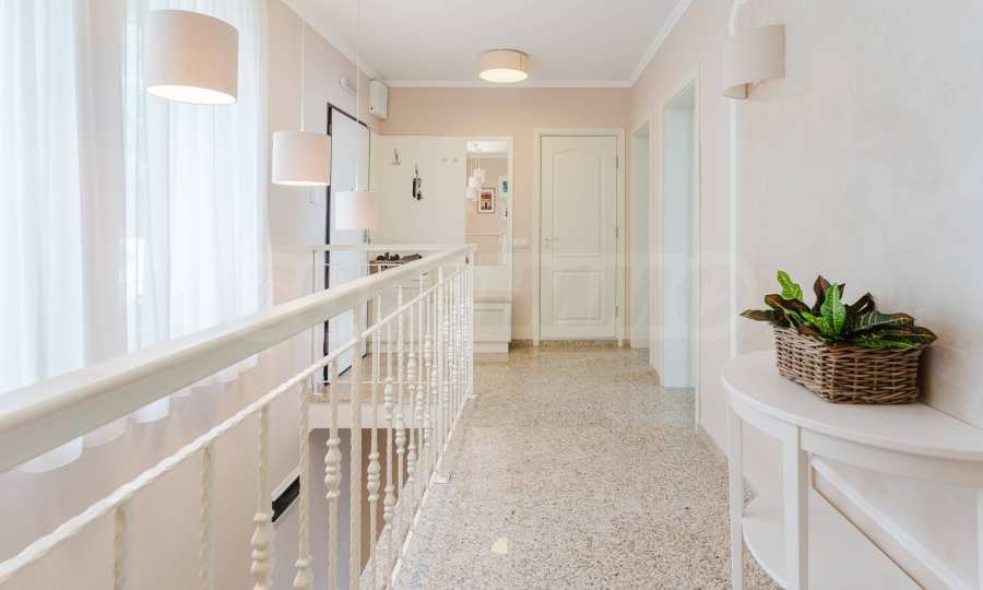• етаж 2: коридор, три спални, две бани, тераса с гледка море - застроена площ на етажа: 125.30 кв.м.