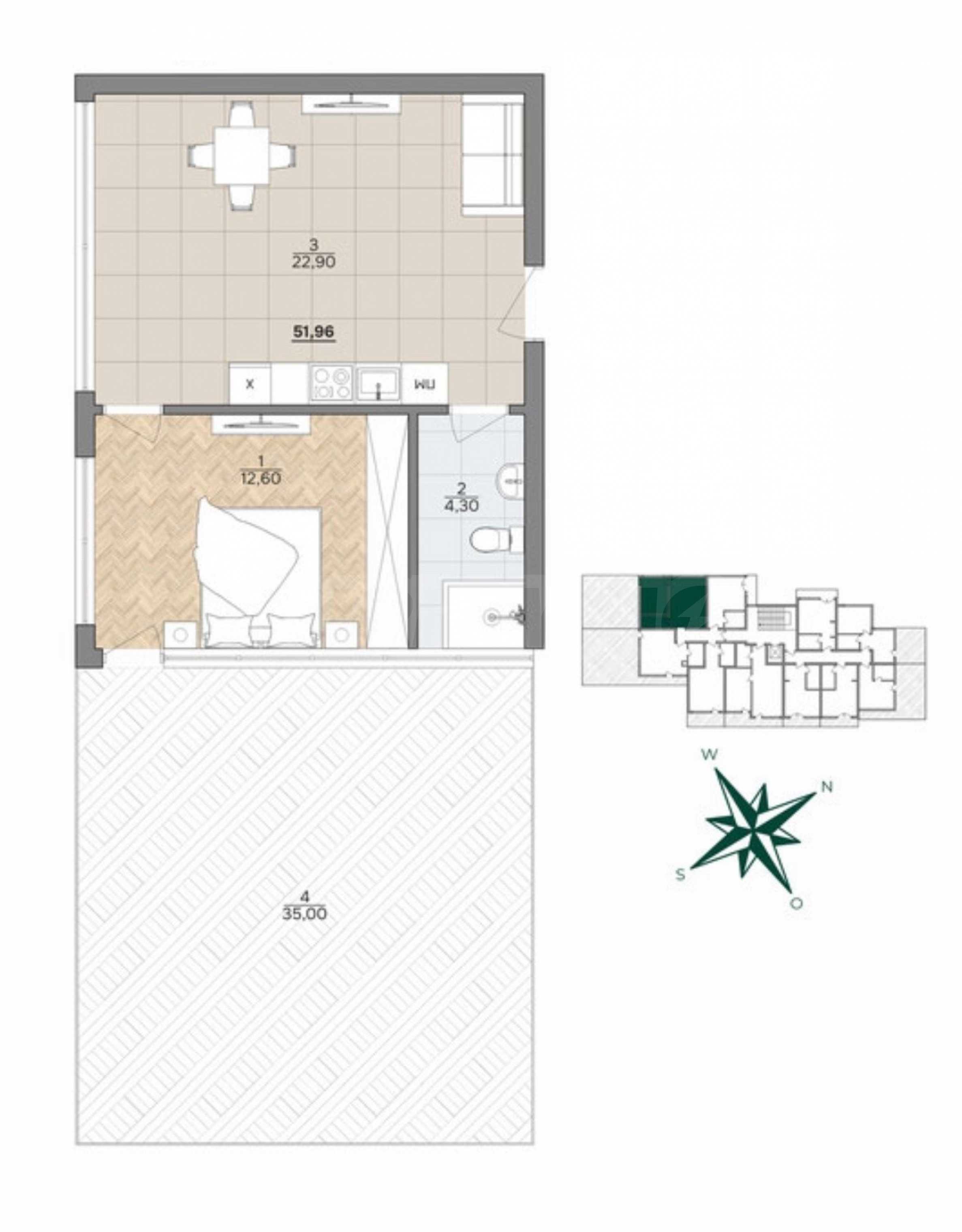 • покривна тераса - 35 кв.м.