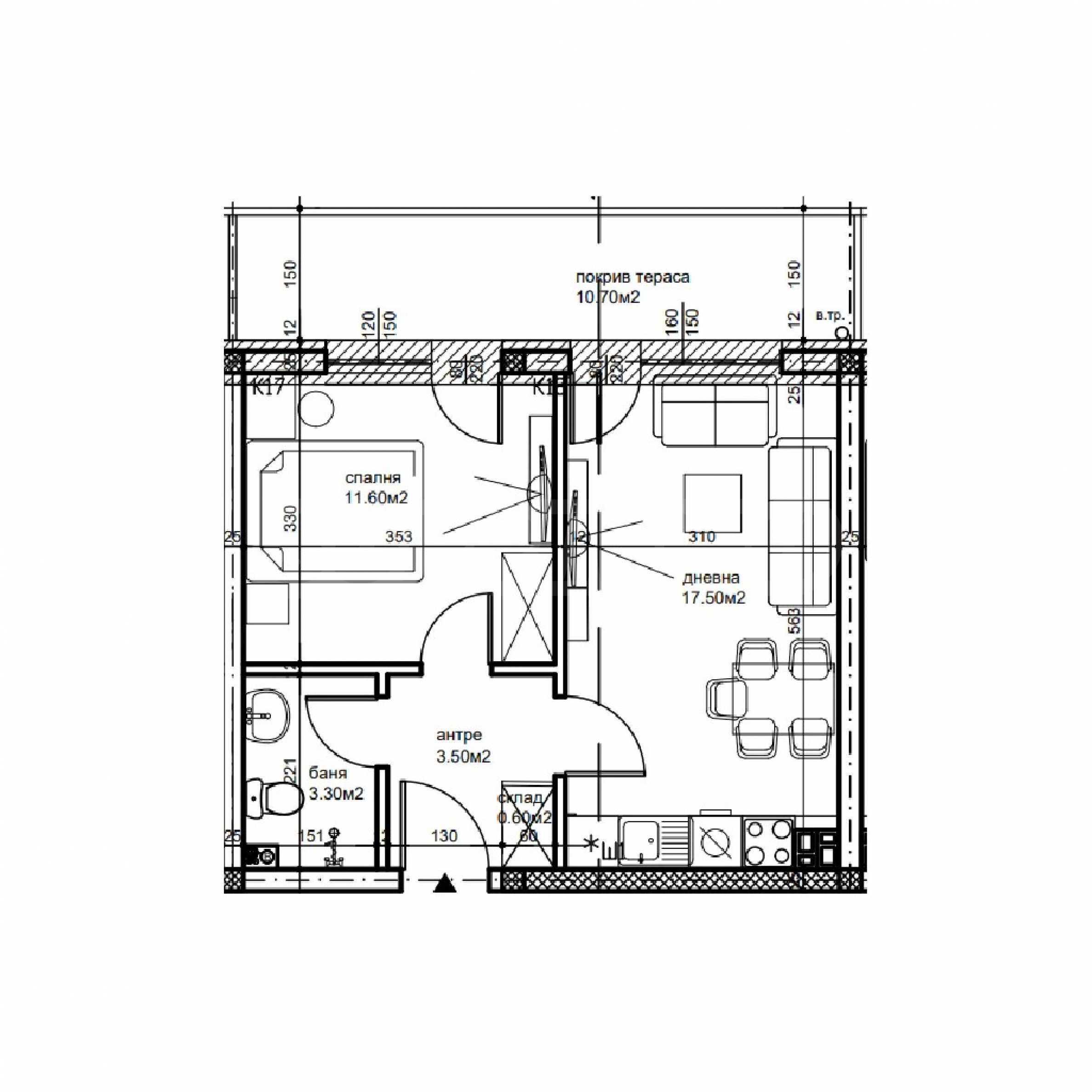 • ел. инсталация - трипроводна, хоризонтална и вертикална разводка с монтирано апартаментно табло;
