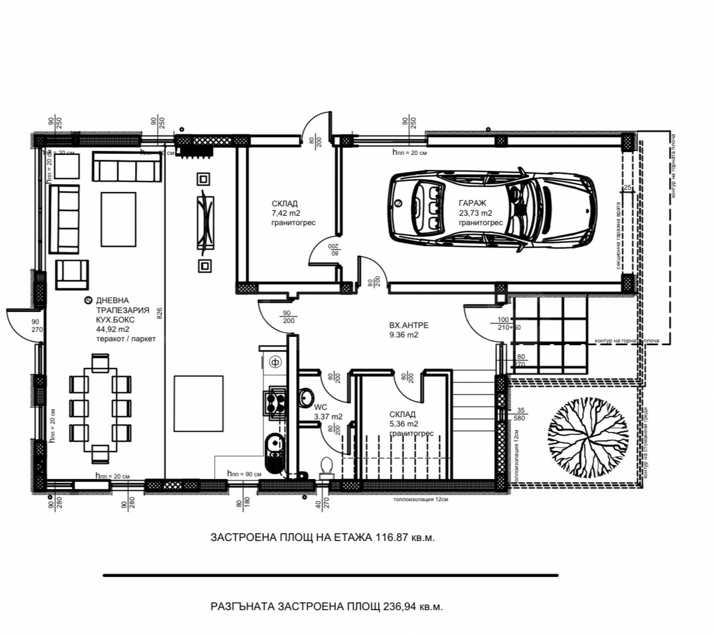 Първи етаж – застроена площ - 116,87 кв.м:
