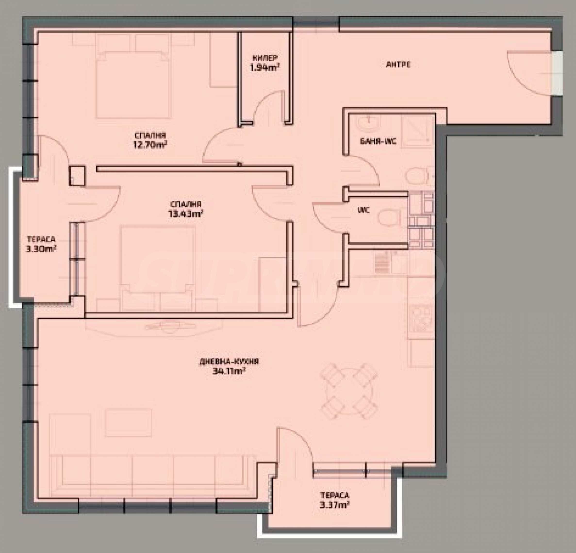 Жилището с обща площ от 126.90 кв.м е разположено на 3-ти етаж от 5.