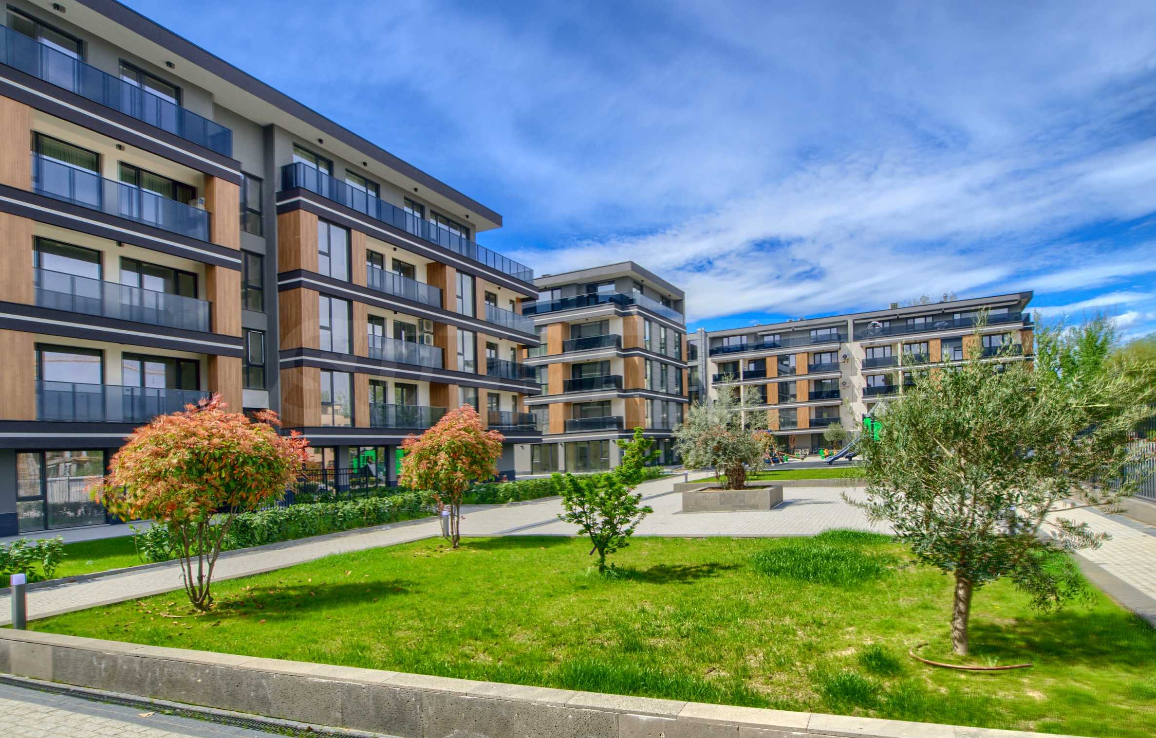 Трите секции на комплекса обграждат красива градина с площ 3 000 кв.м, която оформя вътрешното пространство. Освен зеленина, ще има фонтани, пешеходни алеи, зони за релакс и детски площадки.