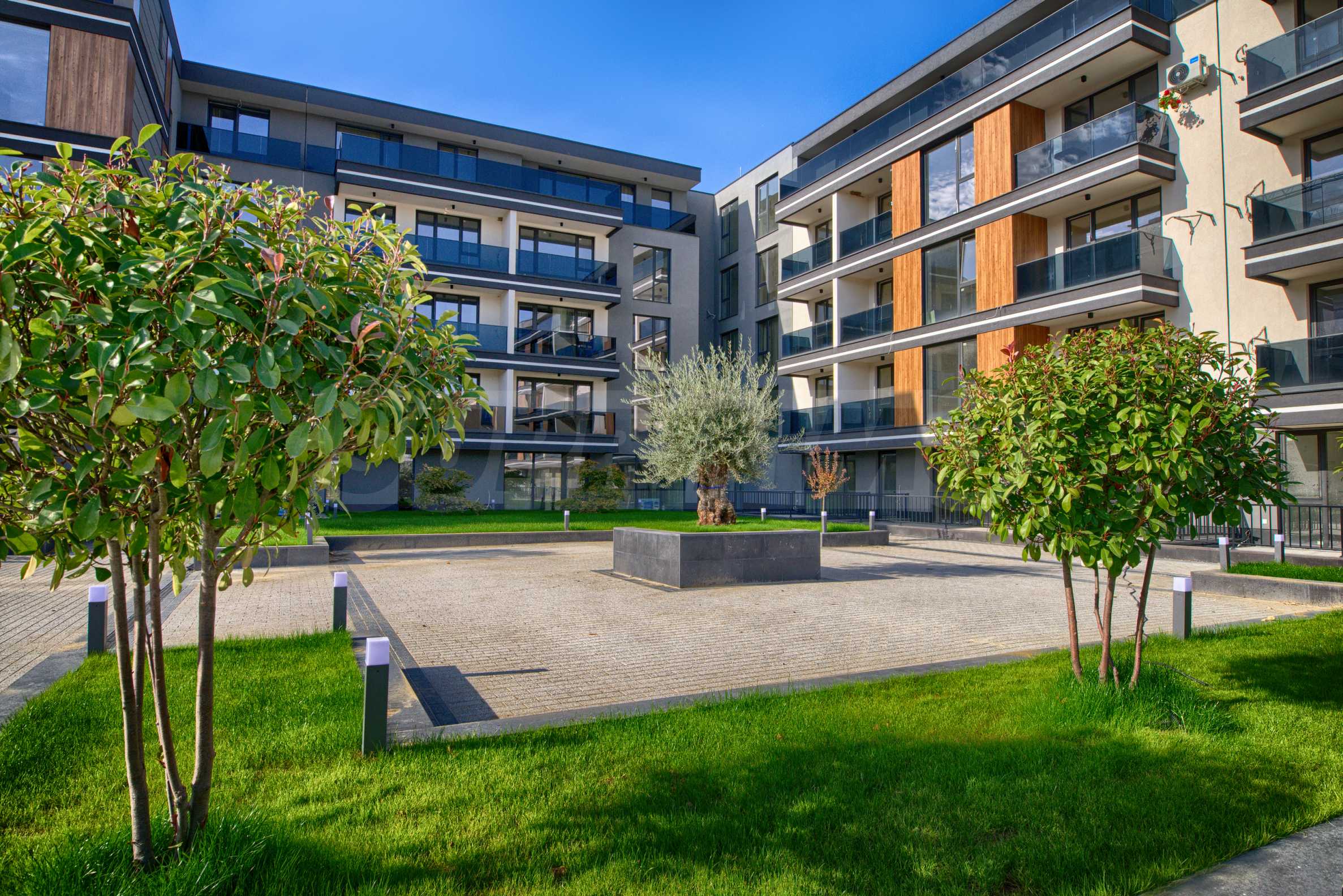Трите секции на комплекса обграждат красива градина с площ 3 000 кв.м, която оформя вътрешното пространство. Освен зеленина, ще има фонтани, пешеходни алеи, зони за релакс и детски площадки.