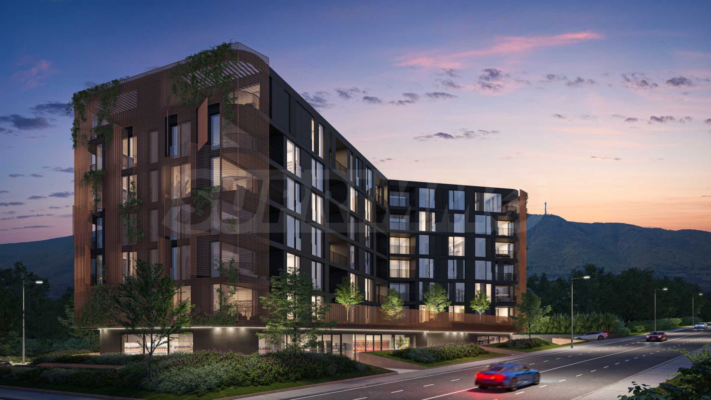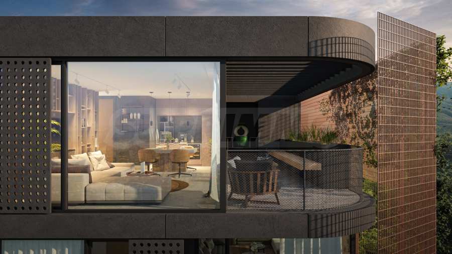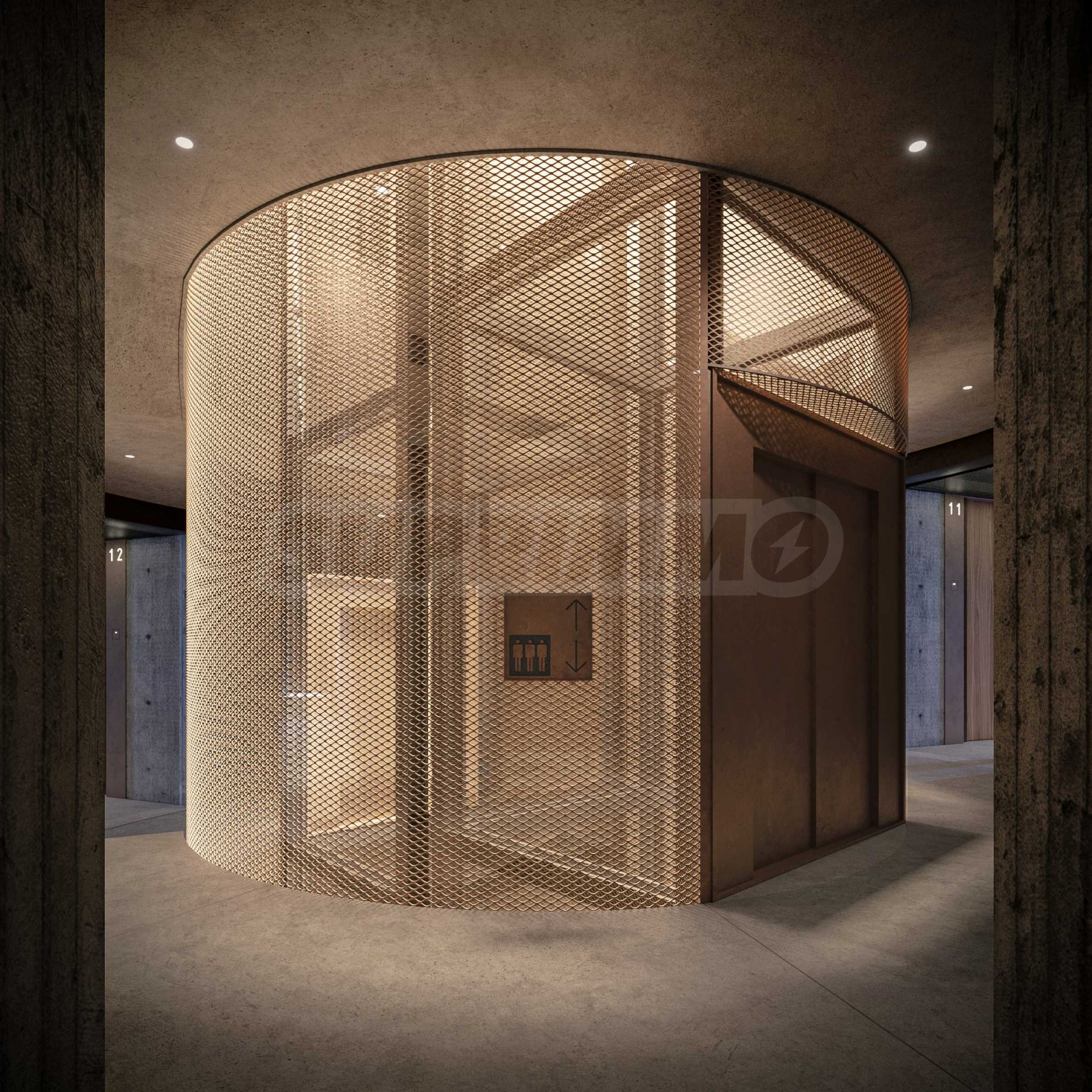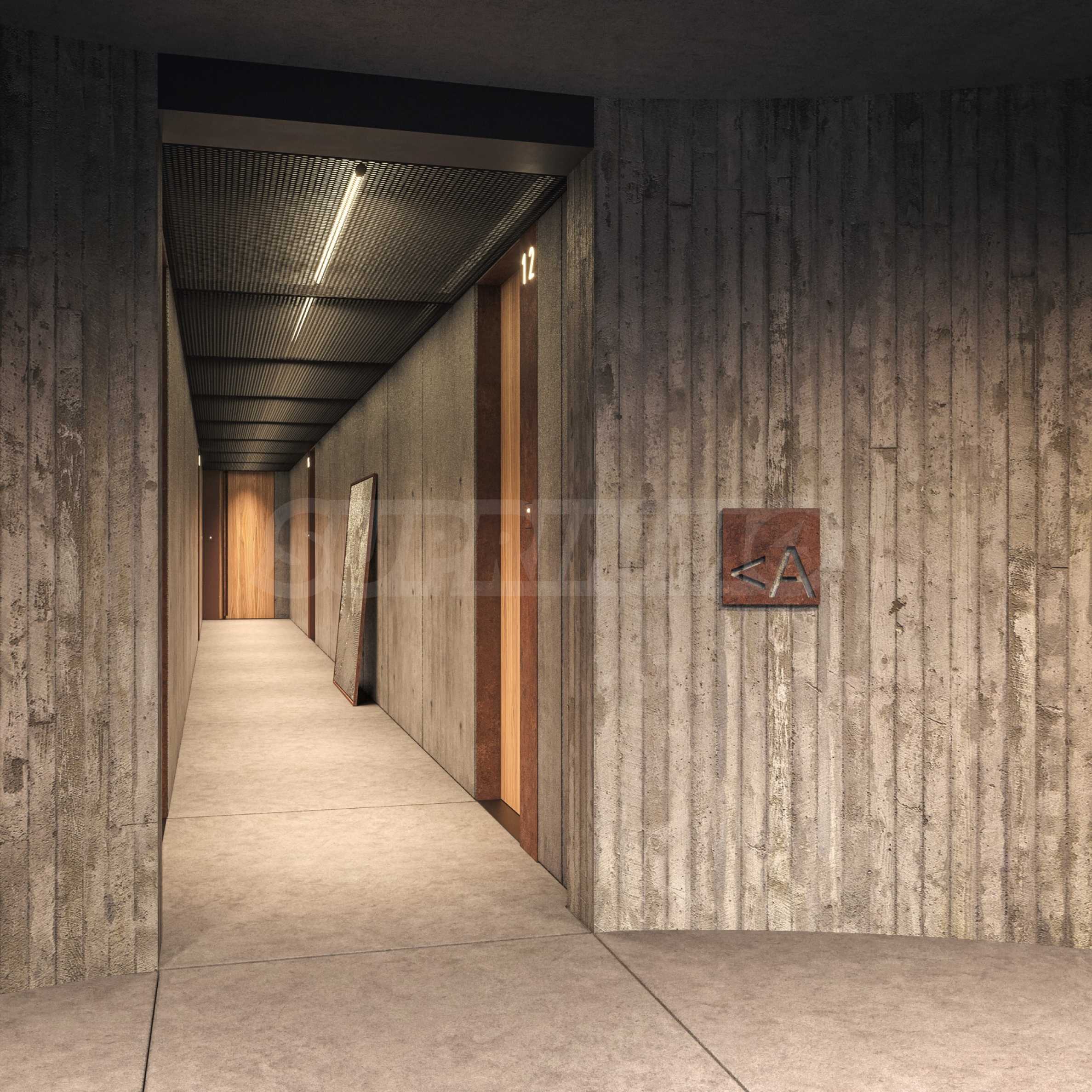 Сградата впечатлява със своята визия и модерни решения. На партерното ниво са разположени търговски обекти и ресторант. Общите части са изпълнени в индустриален стил с видим бетон, кортен, дизайнерско осветление и авторски постери, създаващи усещане за музей на модерното изкуство. Централното цилиндрично стълбищно пространство е озарено от естествена светлина, проникваща от покрива.