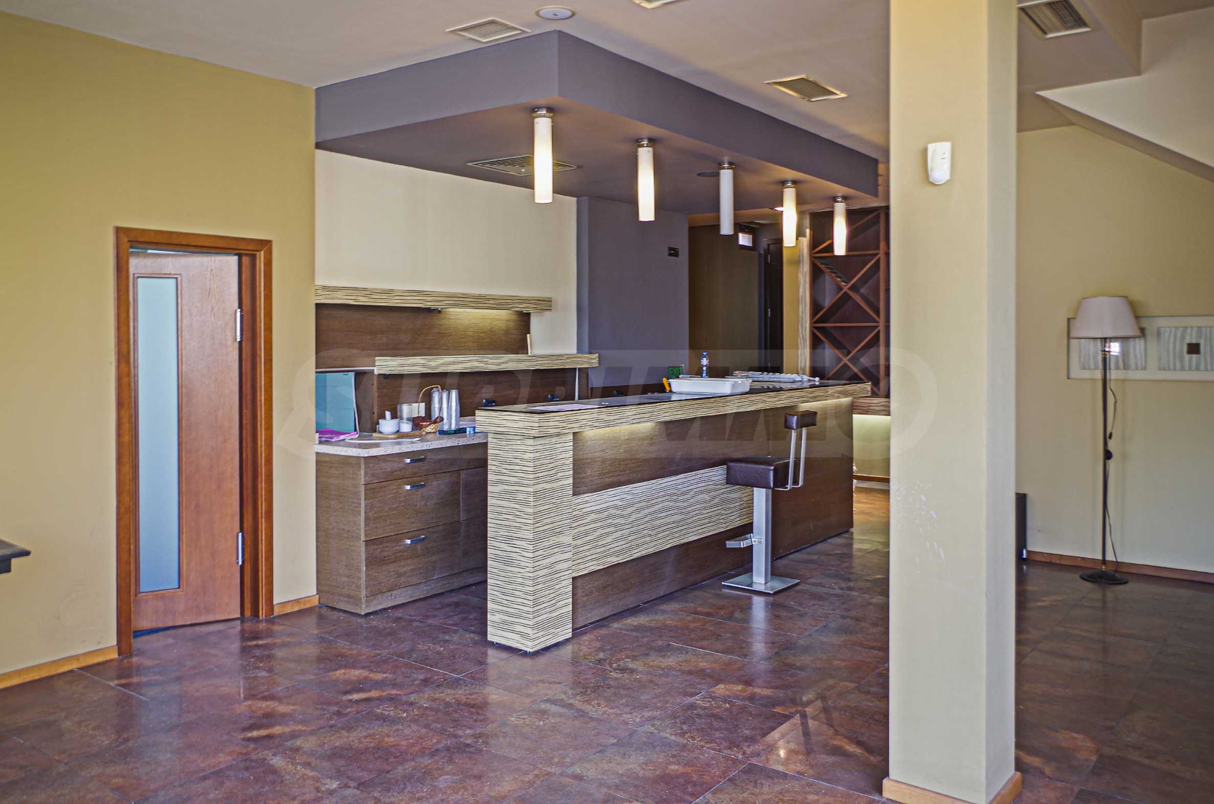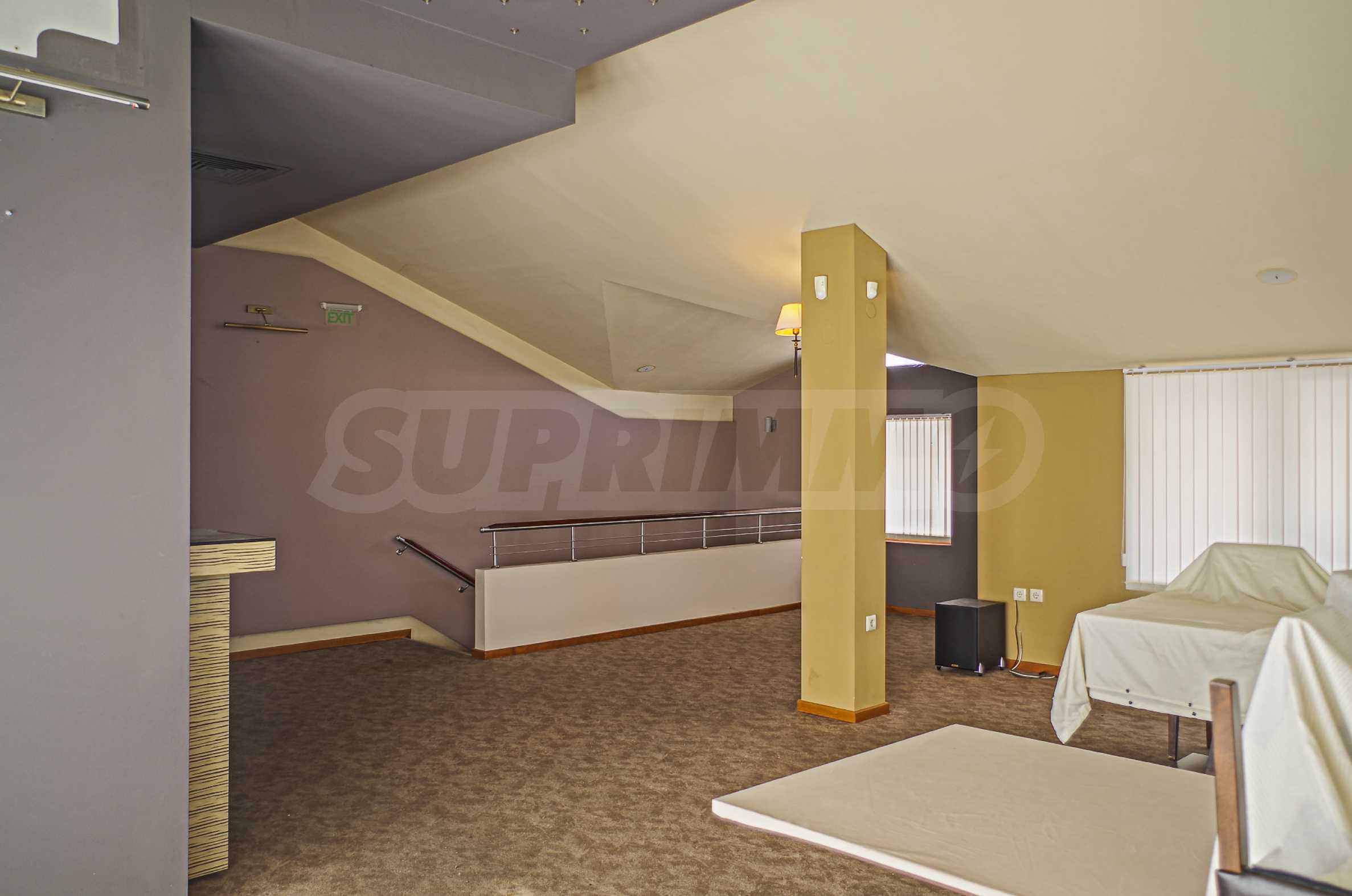 - Втори етаж: Голямо, изпълнено със светлина общо помещение с настилка от висококачествен мокет. Тук също има бар кът за отдих и неформални разговори. Основно предимство на етажа е просторната тераса с гледка към града, предлагаща приятно открито пространство за кафе паузи, събития или срещи с клиенти и партньори.