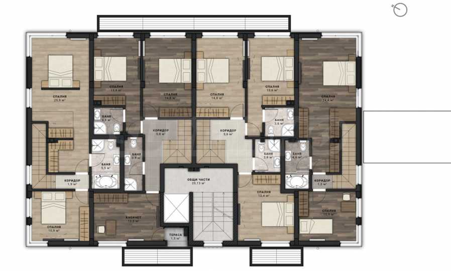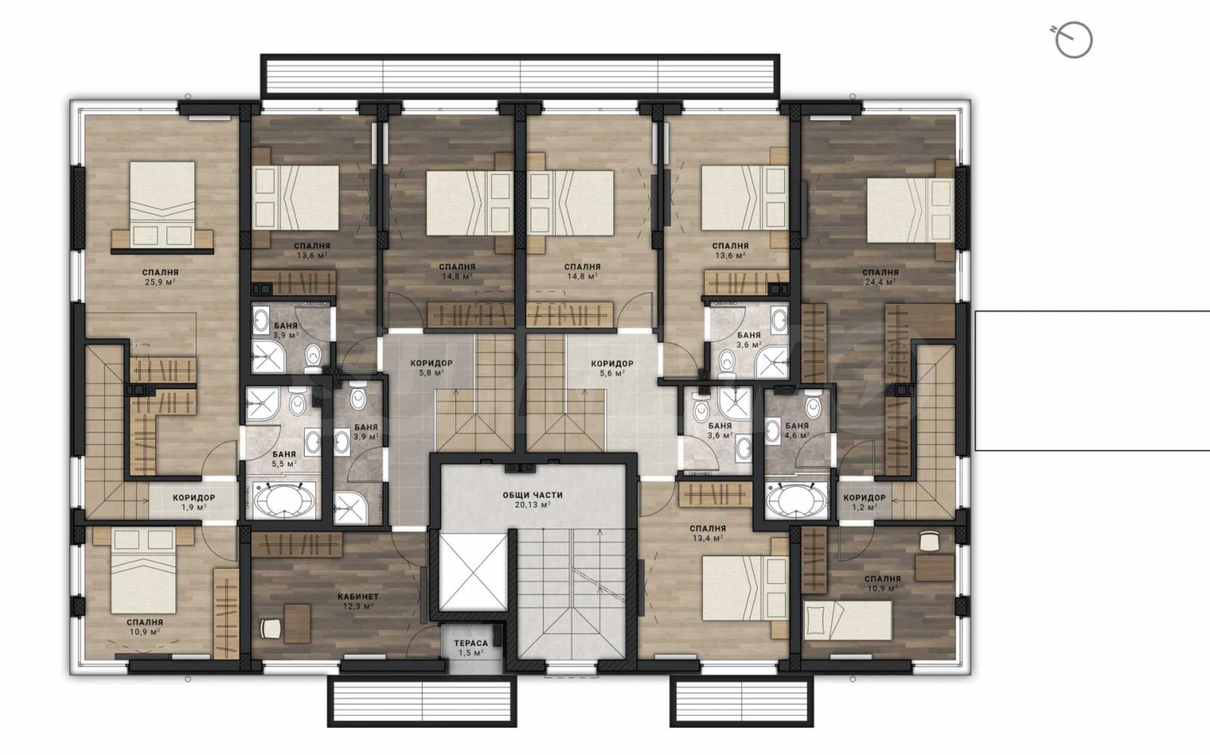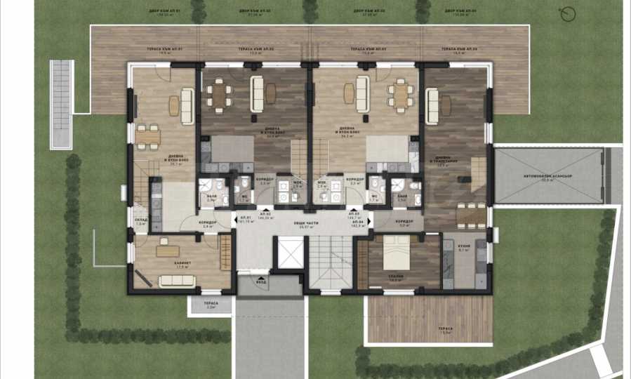 • Луксозно завършени общи части – гранит и МДФ облицовки;