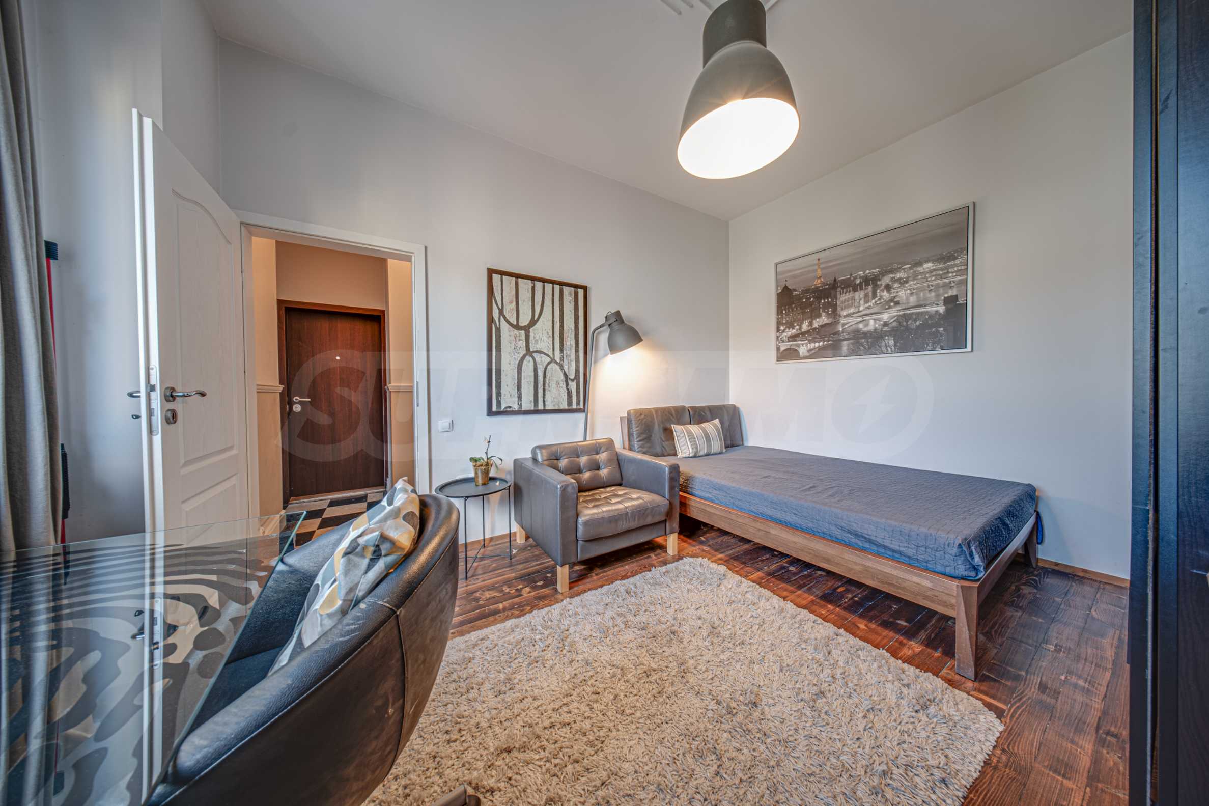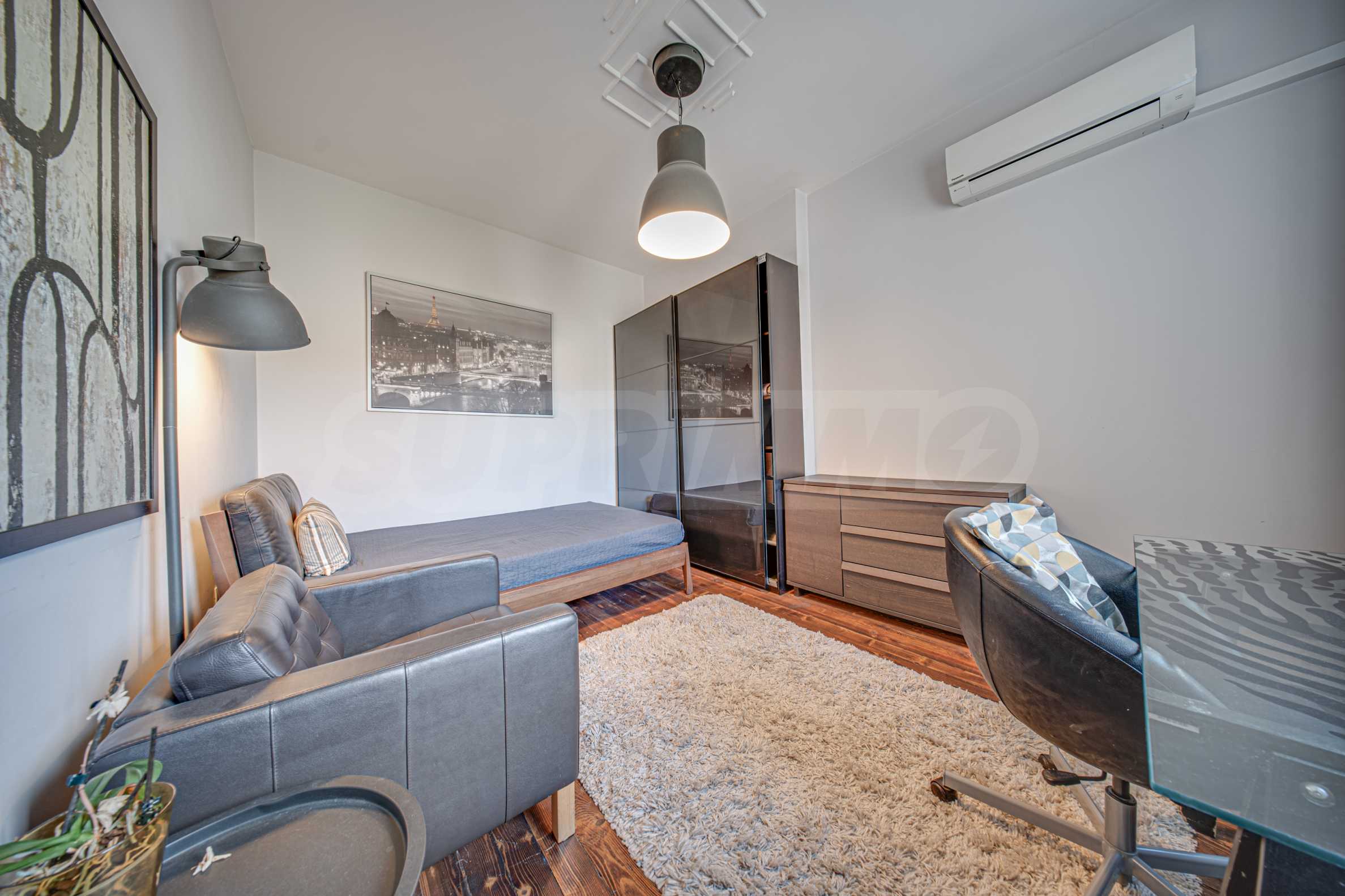 Жилището се предлага, напълно обзаведено със стилни мебели и качествено оборудване, като на разположение са: