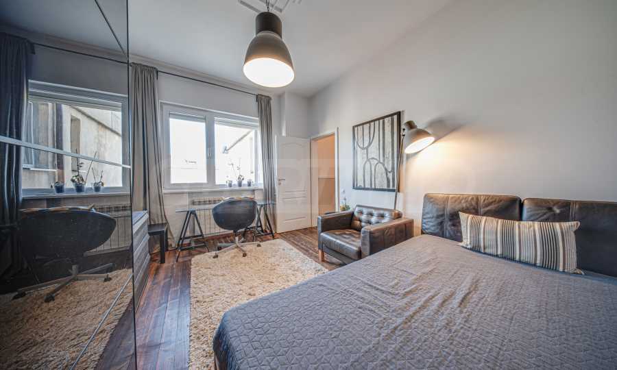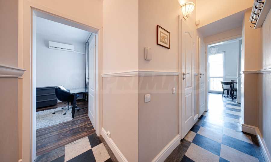 Стилно обзаведено жилище с панорамна гледка към площад“ Славейков“ в сграда строена през 1940 год с поддържан вход и асансьор. Апартаментът е с отлична локация в сърцето на столицата. В близост са разположени множество градски удобства – популярни заведения и ресторанти, магазини, офиси в сферата на услугите, банкови представителства, парк и много други. Основни пътни артерии, обслужващи района са ул. Г. С. Раковски, бул. Васил Левски и ул. Граф Игнатиев.