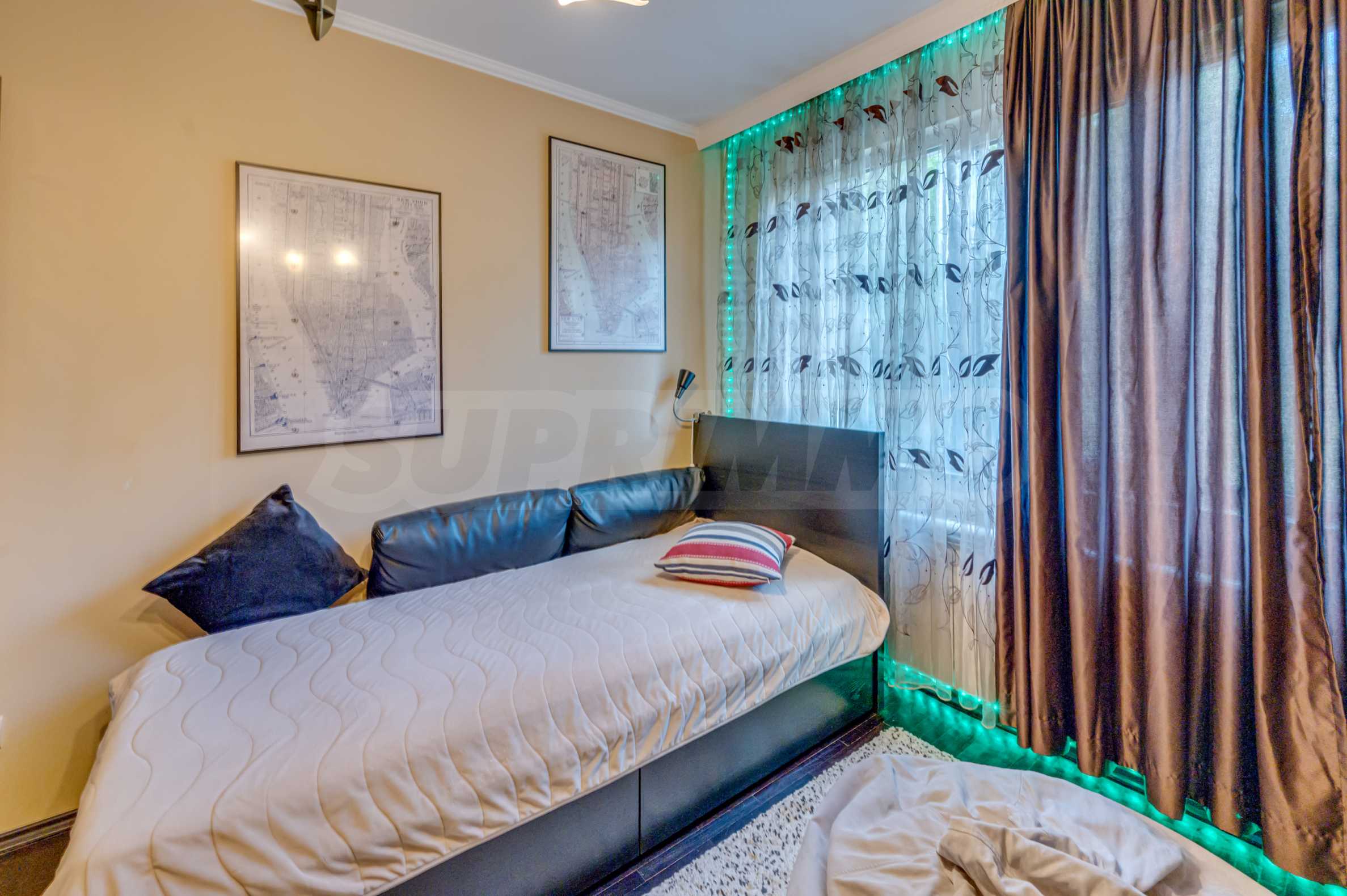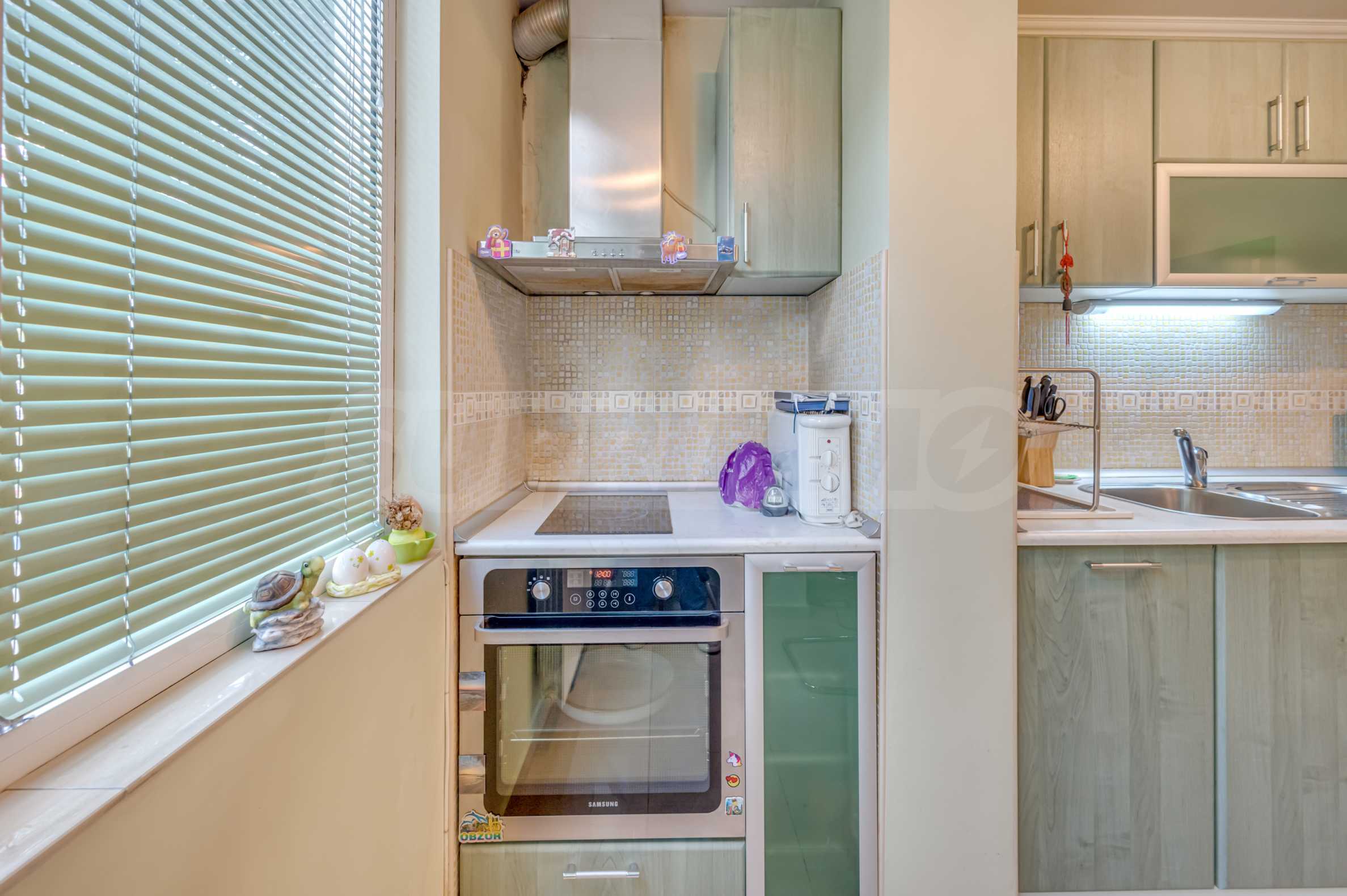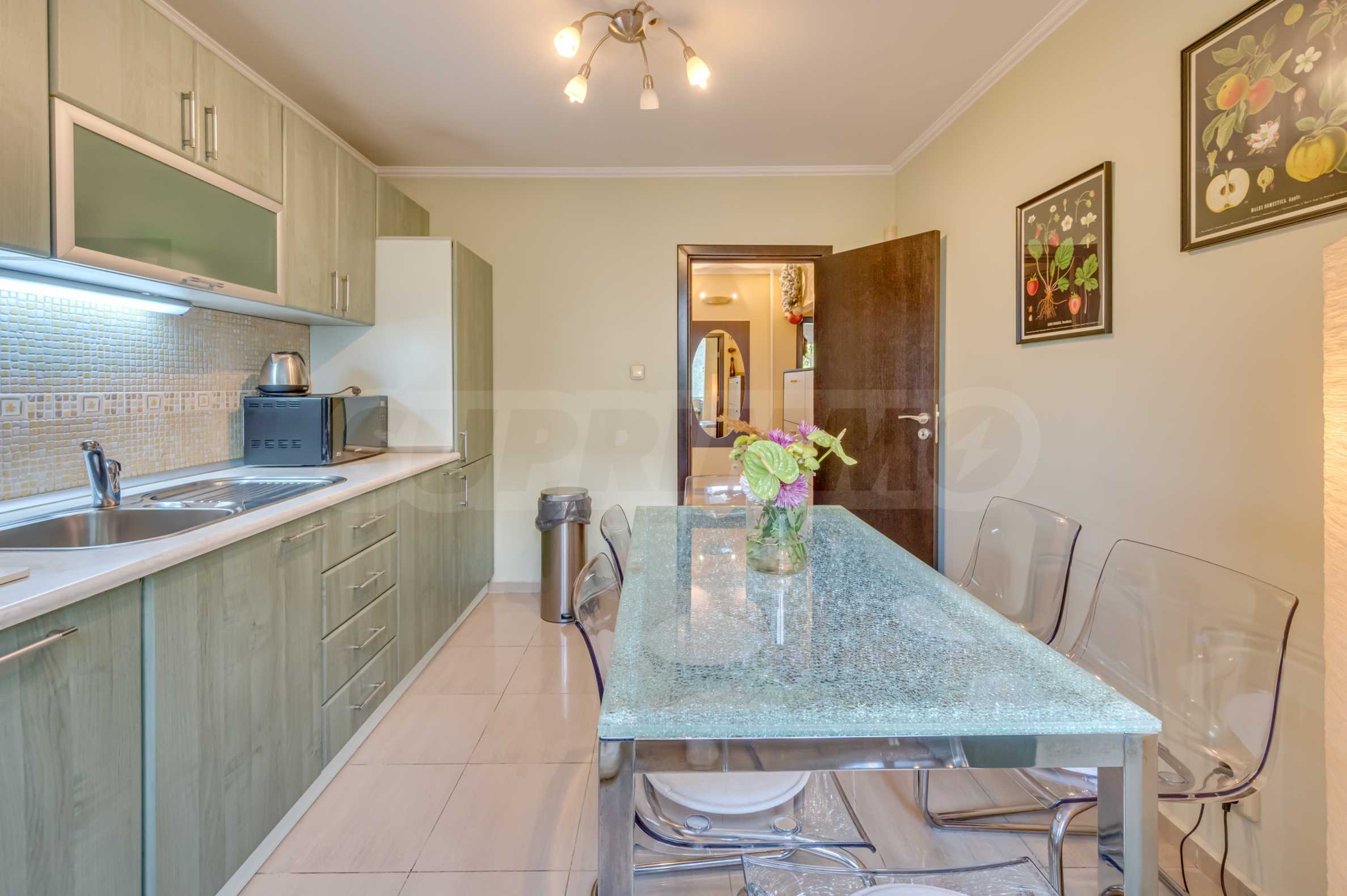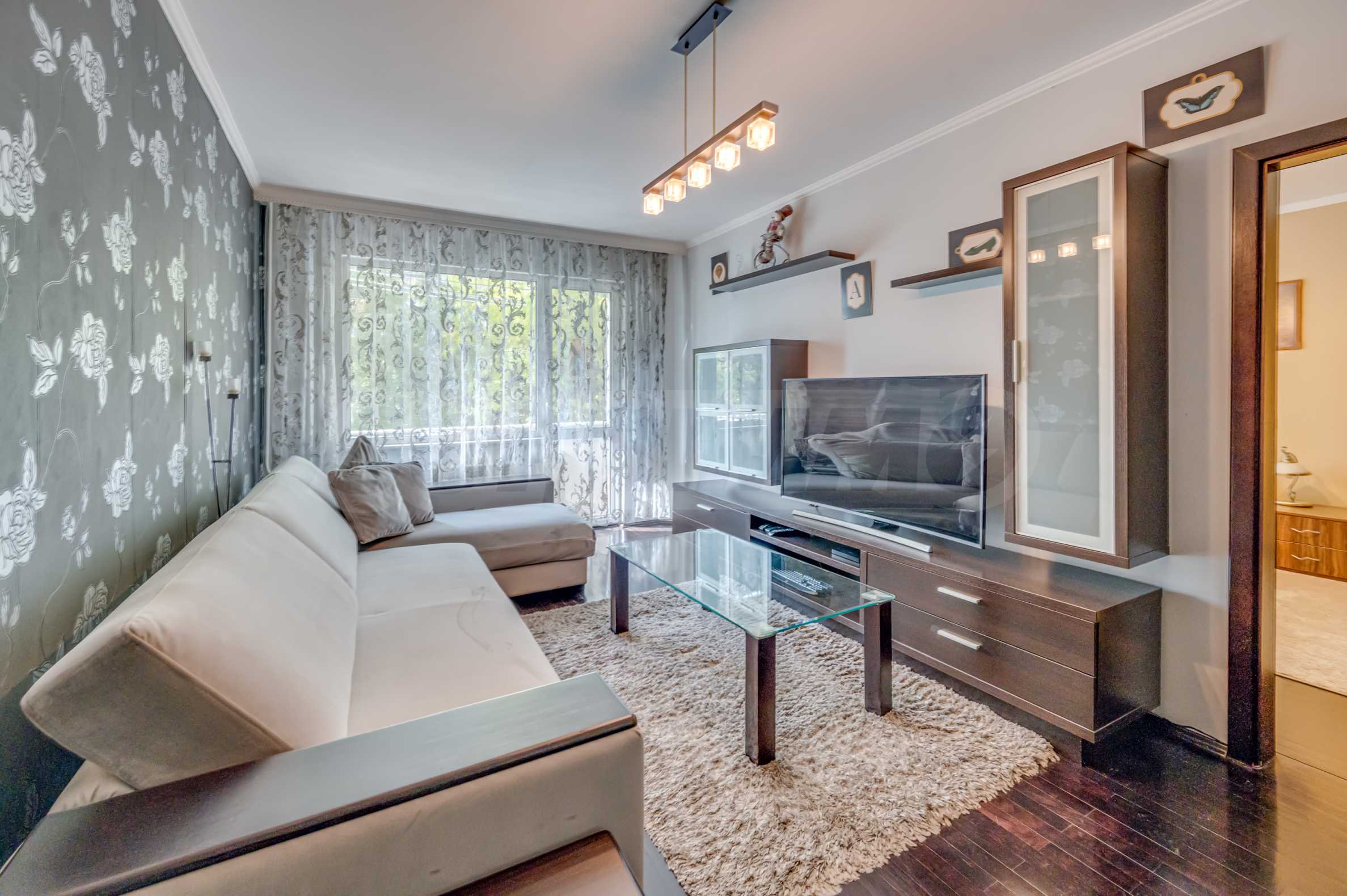 Имотът се намира на тиха и зелена улица, с отлична комуникация и лесен достъп до центъра на града. Апартаментът е напълно обзаведен и оборудван, готов за нанасяне веднага.