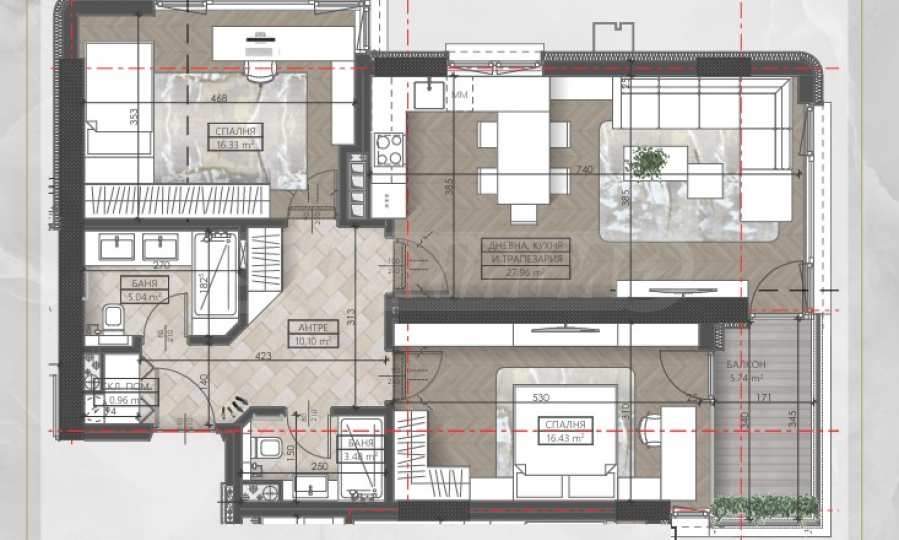 • Монолитна стоманобетонна конструкция, проектирана и изпълнена по най-съвременни стандарти за дълготрайност и устойчивост;