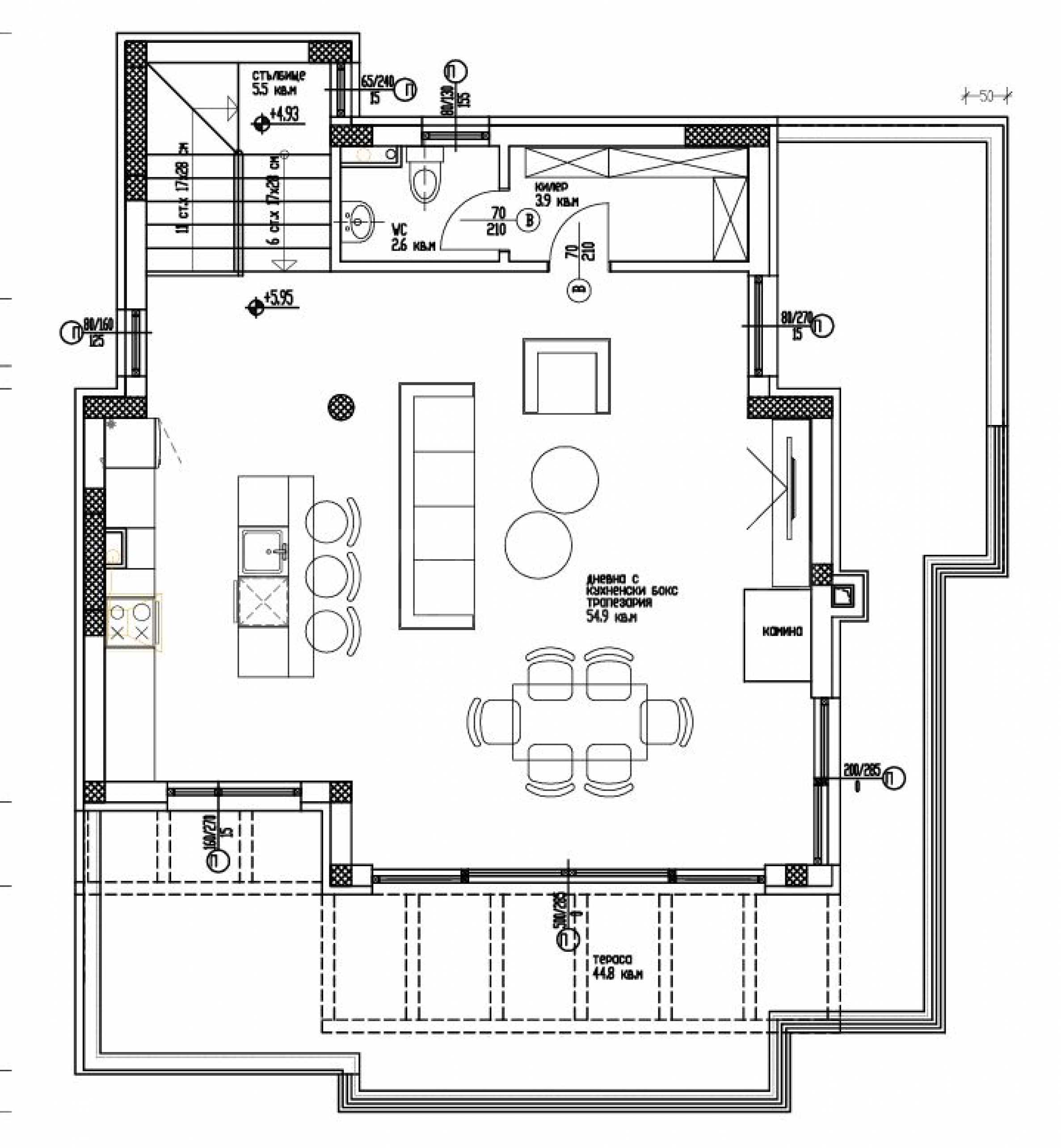 • просторен дневен тракт – 54.9 кв.м;