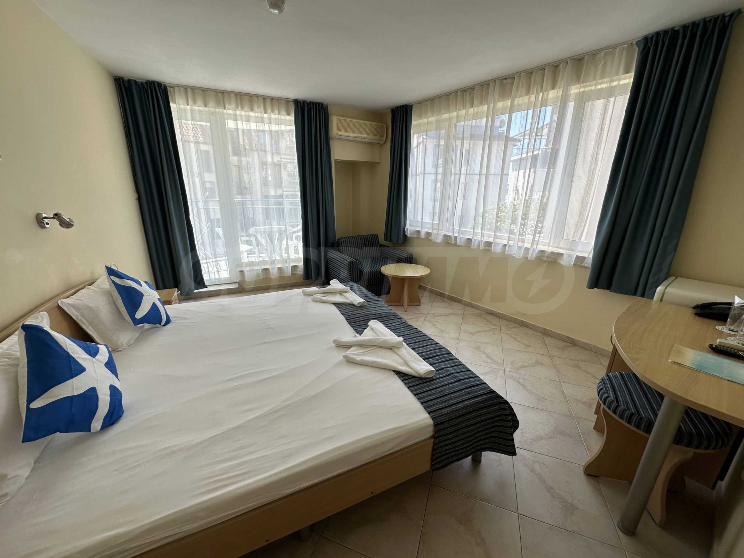 Представяме за продажба работещ семеен хотел край скалистия морски бряг и в непосредствена близост до плаж Харманите, Созопол.