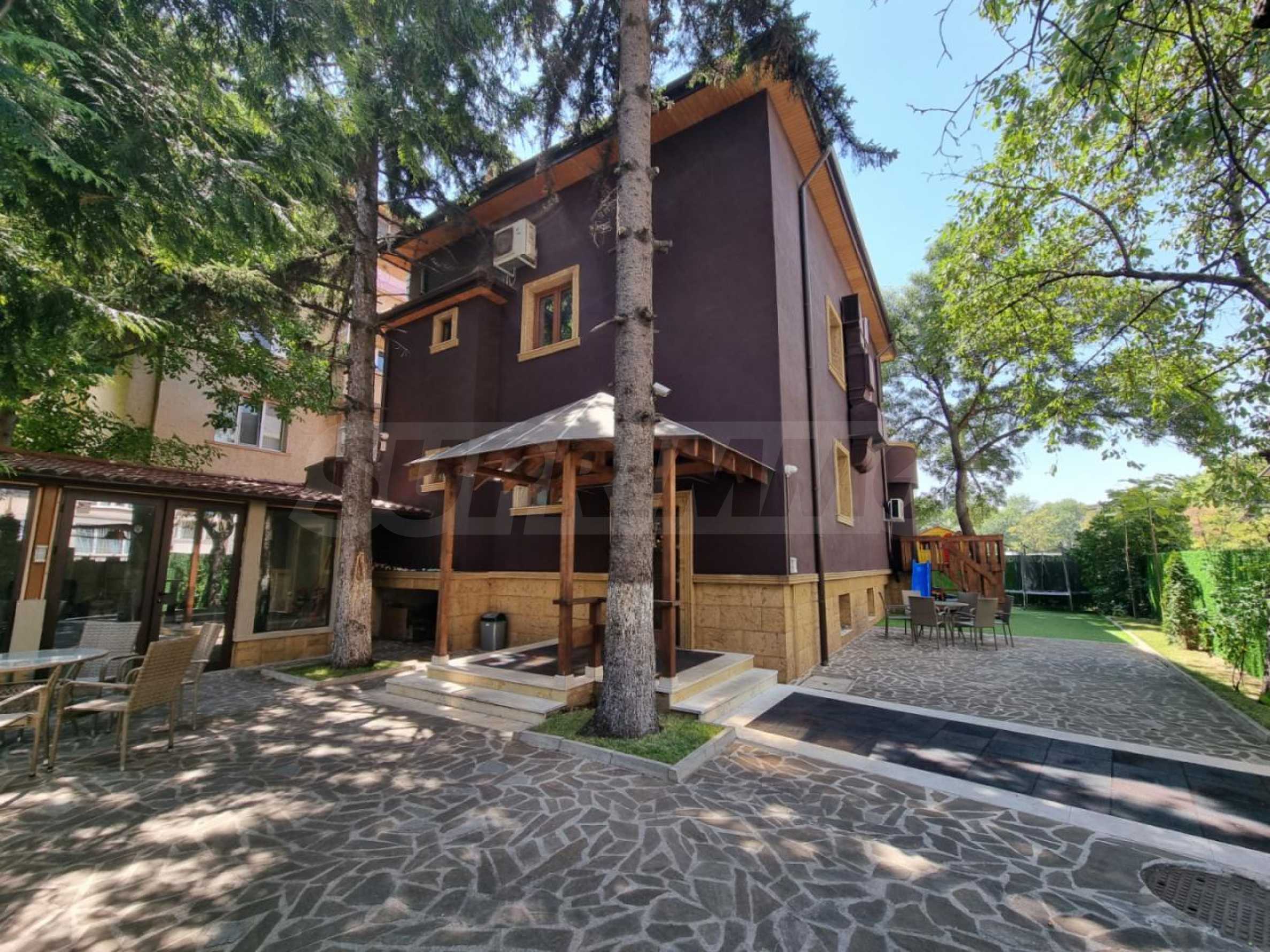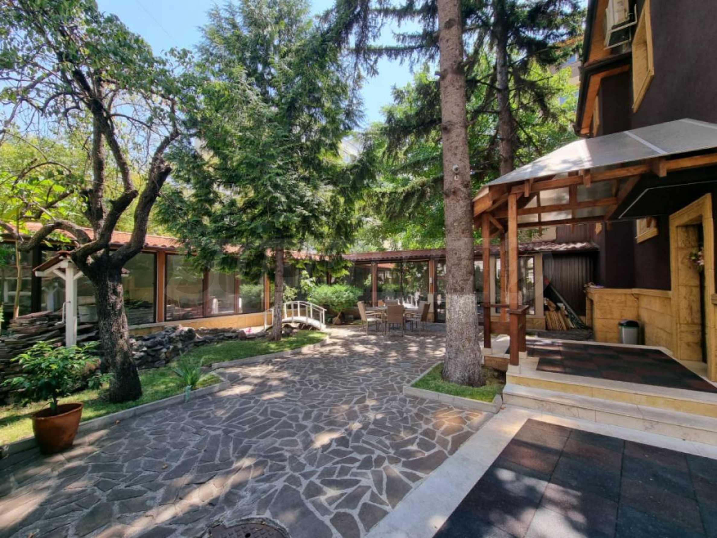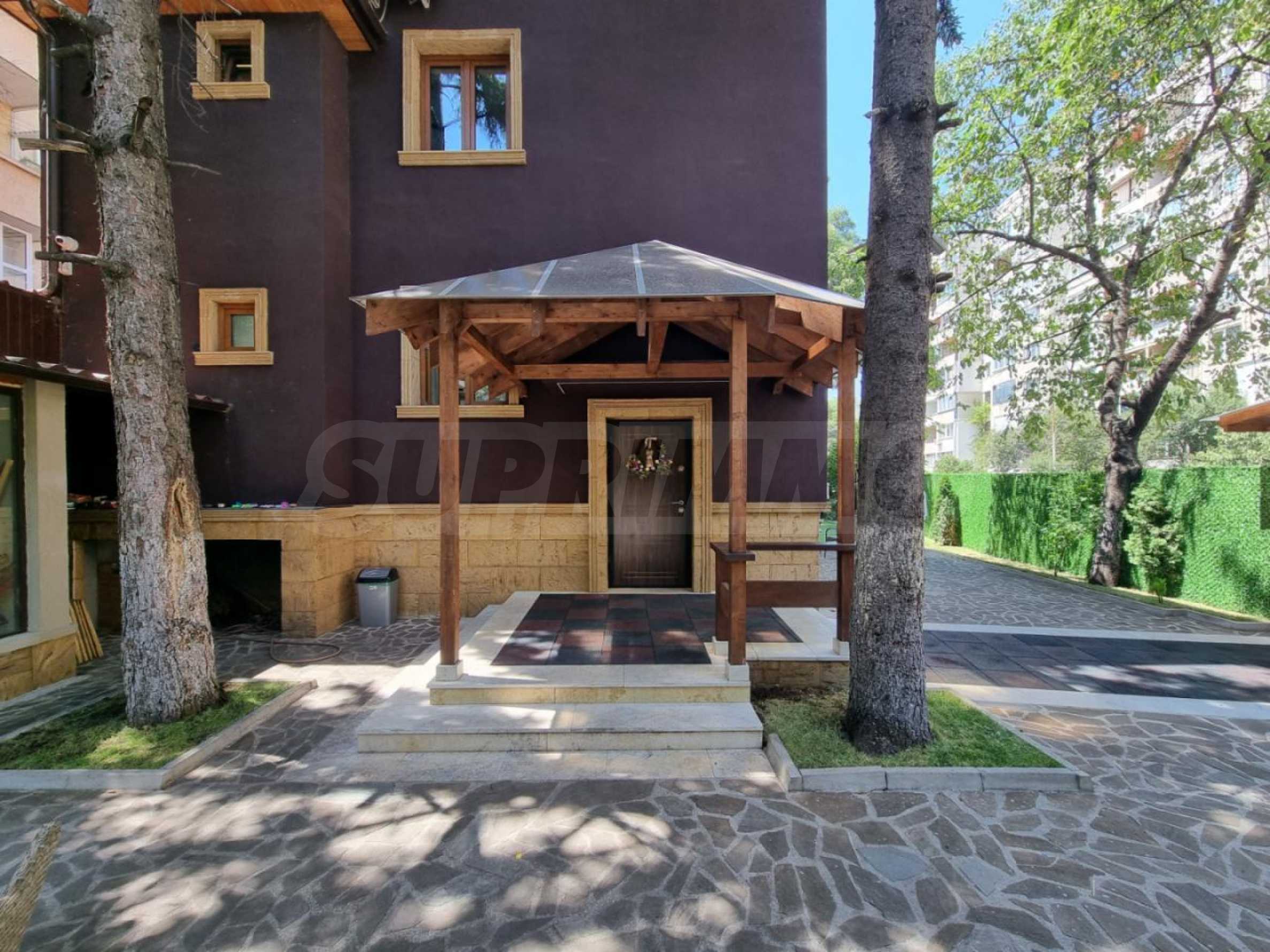 Имотът е разположен в един от най-тихите и озеленени райони на столицата и впечатлява с простор, функционалност и внимание към всеки детайл. Къщата е изградена върху парцел с площ от 530 кв.м., с разгъната застроена площ от 310 кв.м., отличава се с висококачествени материали, стилен интериор и безупречна поддръжка.