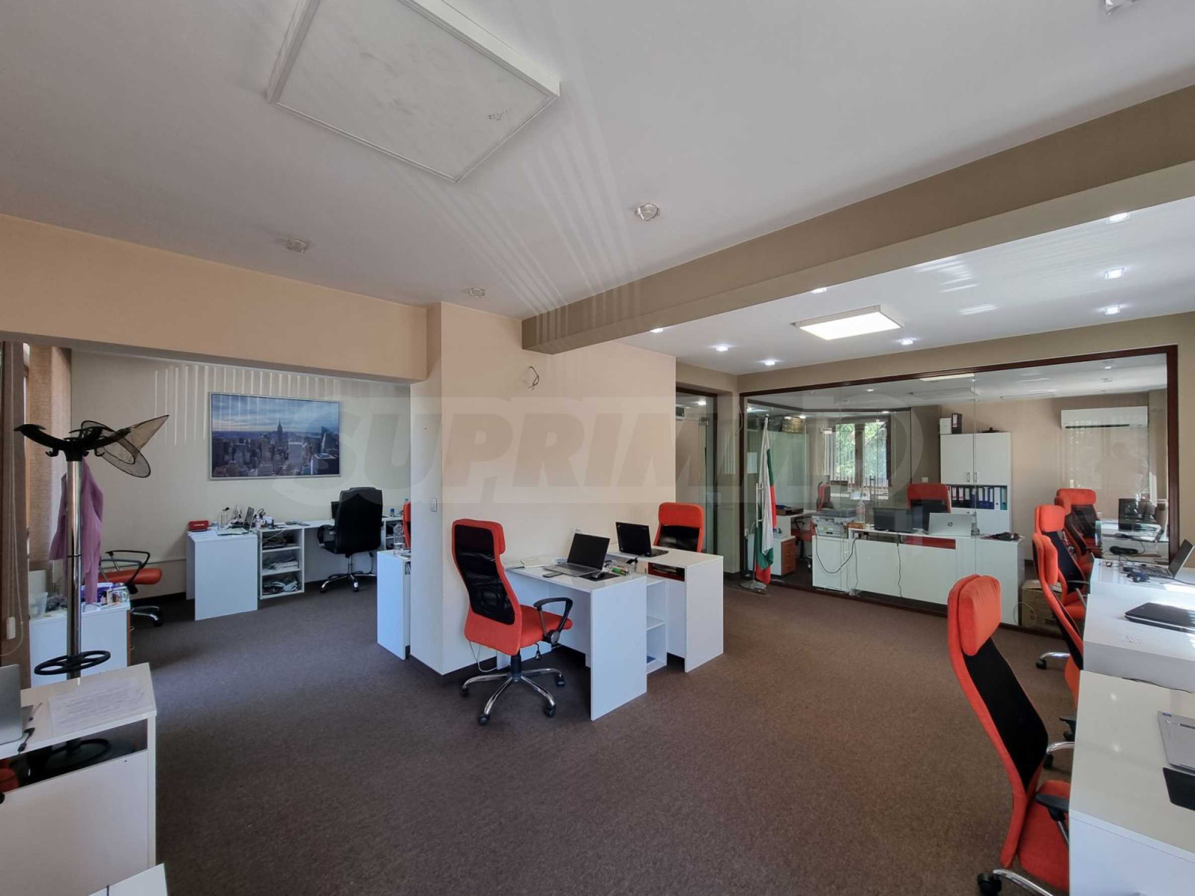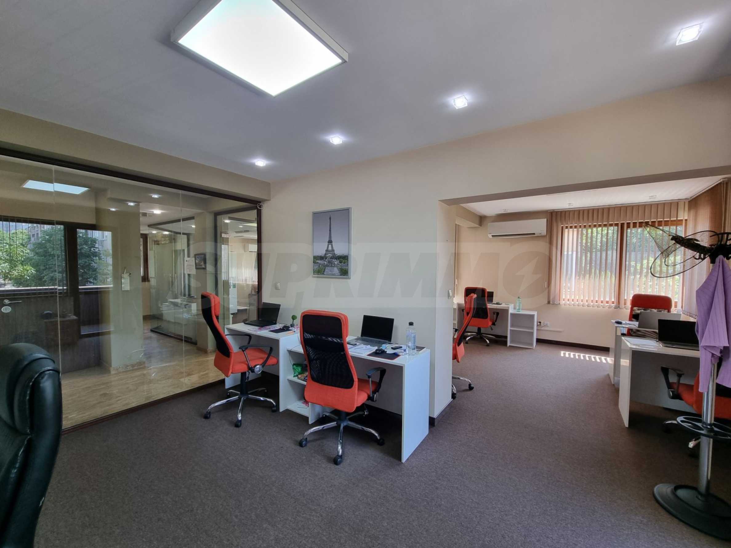 - На втория етаж е обособено просторно open-space офис пространство с тоалетна и голям балкон, оборудван с темперирани стъкла за оптимален комфорт.