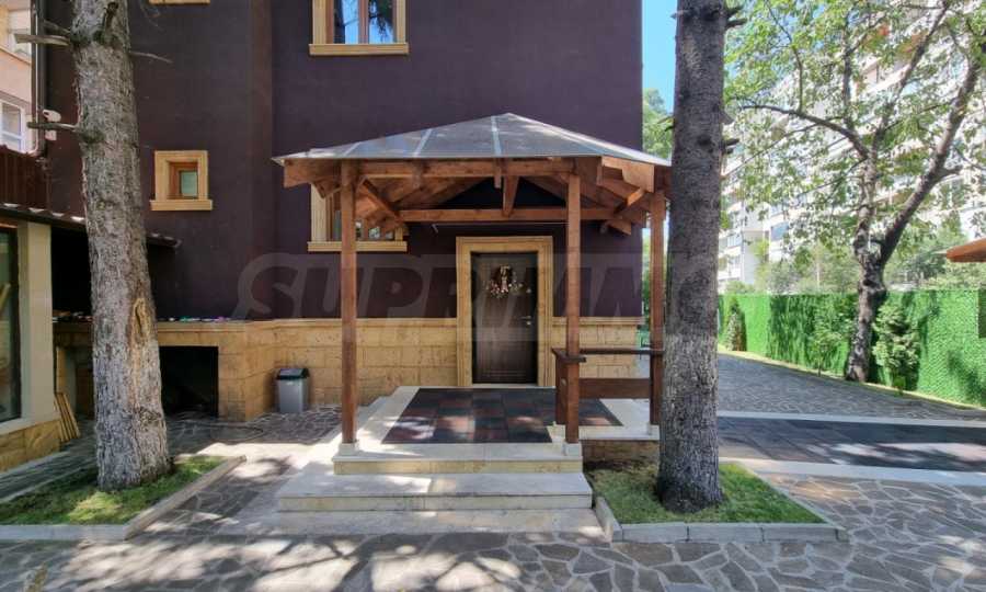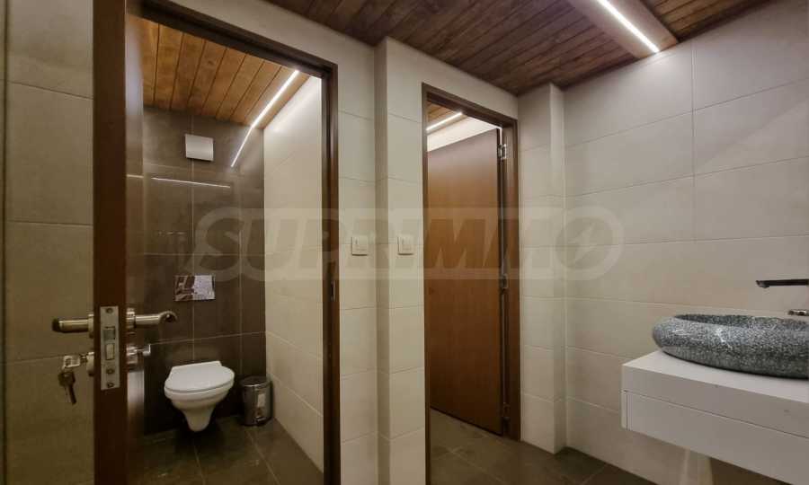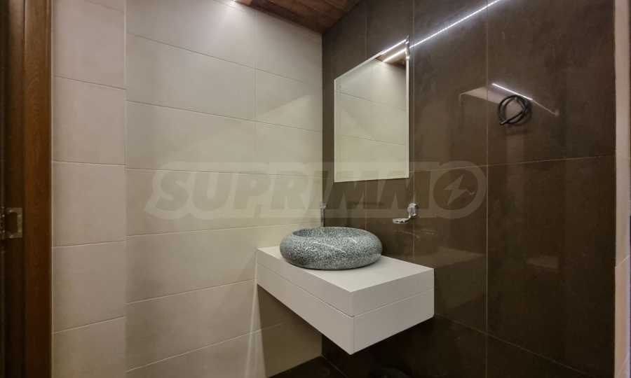 - На сутеренния етаж са разположени просторна трапезария с кухненски бокс, елегантна двулицева камина, баня с тоалетна, допълнителна тоалетна и складово помещение.