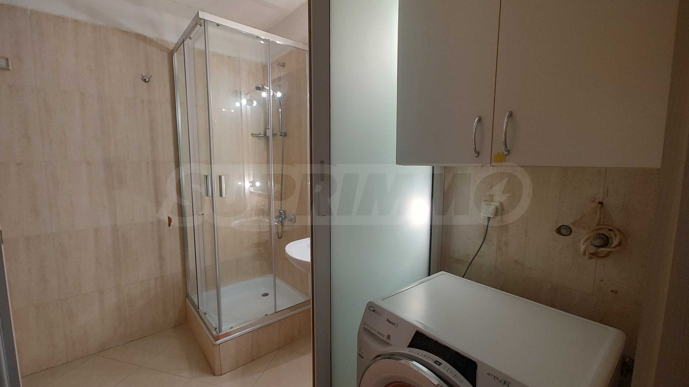 Жилището предлага функционално разпределение: уютна дневна с кухненска зона,тераса, баня с тоалетна, една самостоятелна спалня и още една преходна стая, която може да бъде обособена като втора спалня, кабинет или детска стая според нуждите на наемателя.