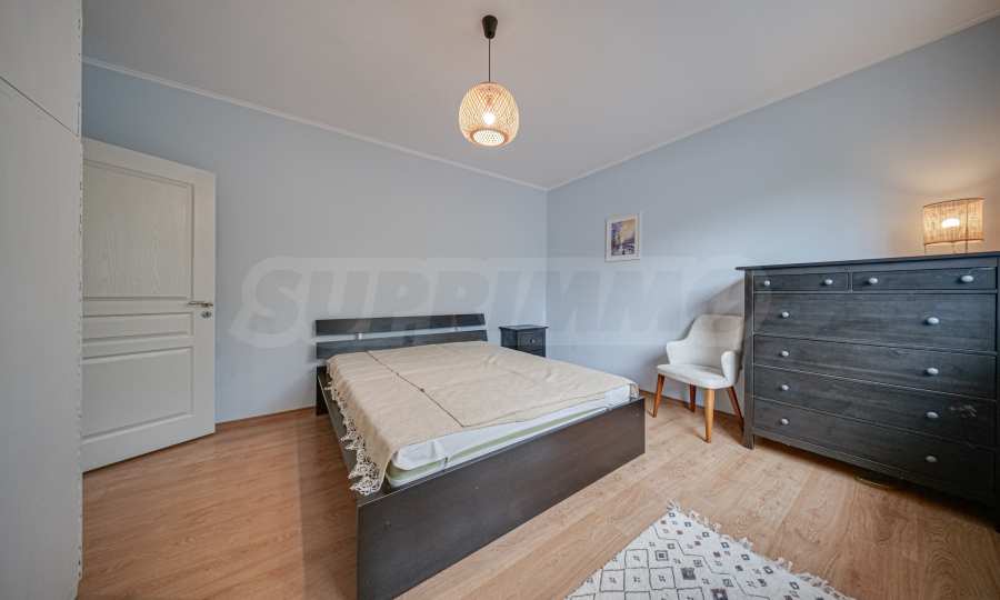 Имотът е напълно обзаведен и оборудван с всички електроуреди, пребоядисан, с естествен паркет в хола и първата спалня, ламинат във втората спалня, и е готов за нанасяне.