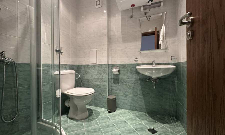 Подовата настилка е на ламинат, прозорците са с алуминиева дограма, стените са боядисани с латекс.