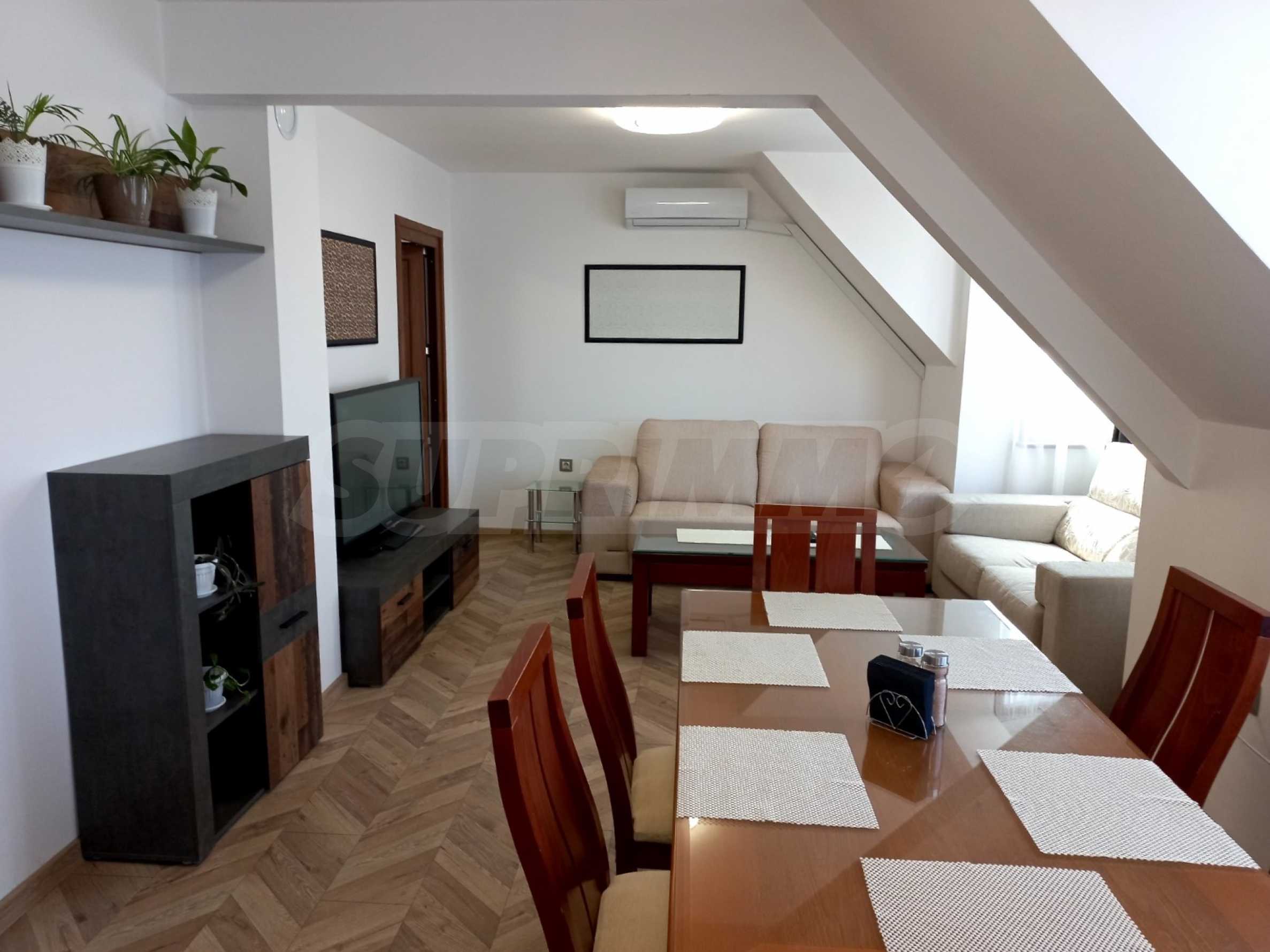 Апартаментът е много добре поддържан и с ново обзавеждане. Отоплението е решено с климатик.