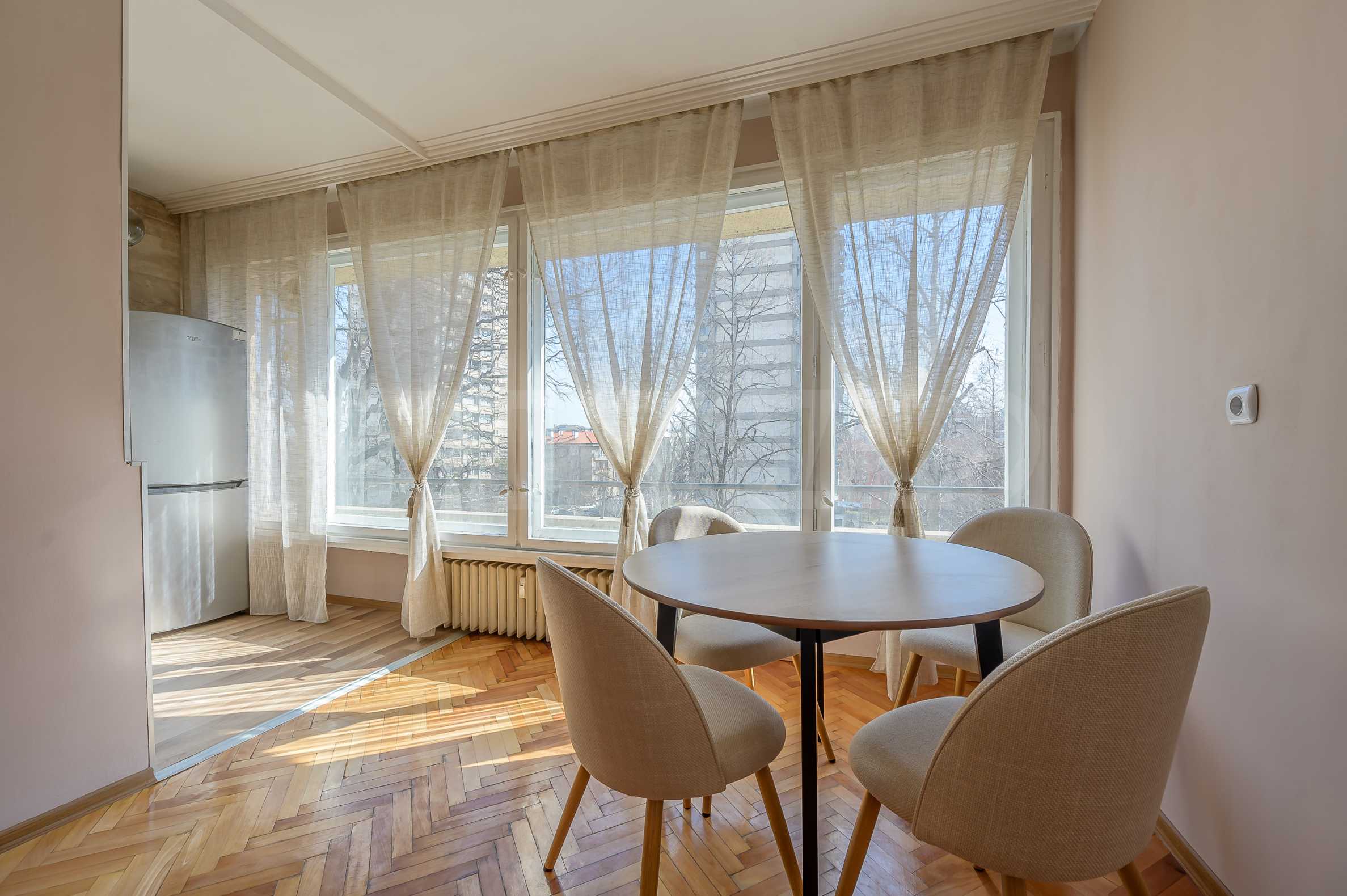 Жилището е светло и добре поддържано, с отлично разпределение, подходящо както за едно лице, така и за двойка, които търсят спокойствие и комфорт в престижен район на София.