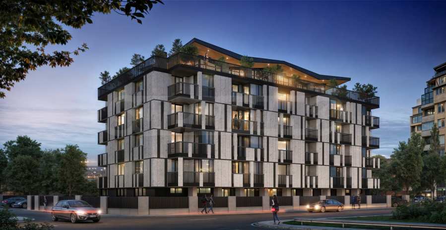 Сградата се разгръща върху пет жилищни етажа и впечатлява с модерна архитектурна линия и характерно присъствие, което ясно се отличава от околната среда. Съвременният екстериор и широките панорамни прозорци осигуряват обилна естествена светлина във всеки дом и разкриват пълната красота на природния пейзаж наоколо.