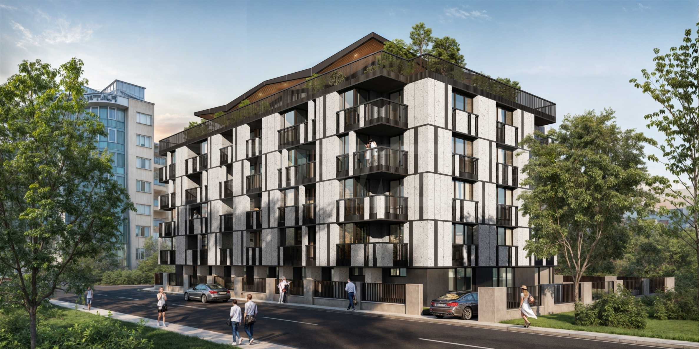 Сградата се разгръща върху пет жилищни етажа и впечатлява с модерна архитектурна линия и характерно присъствие, което ясно се отличава от околната среда. Съвременният екстериор и широките панорамни прозорци осигуряват обилна естествена светлина във всеки дом и разкриват пълната красота на природния пейзаж наоколо.