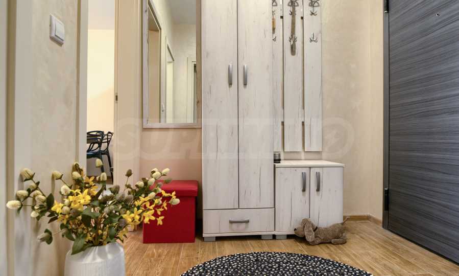 Апартаментът се предлага напълно обзаведен и оборудван с чисто нови мебели и електроуреди. Готов е да посрещне своите първи наематели.