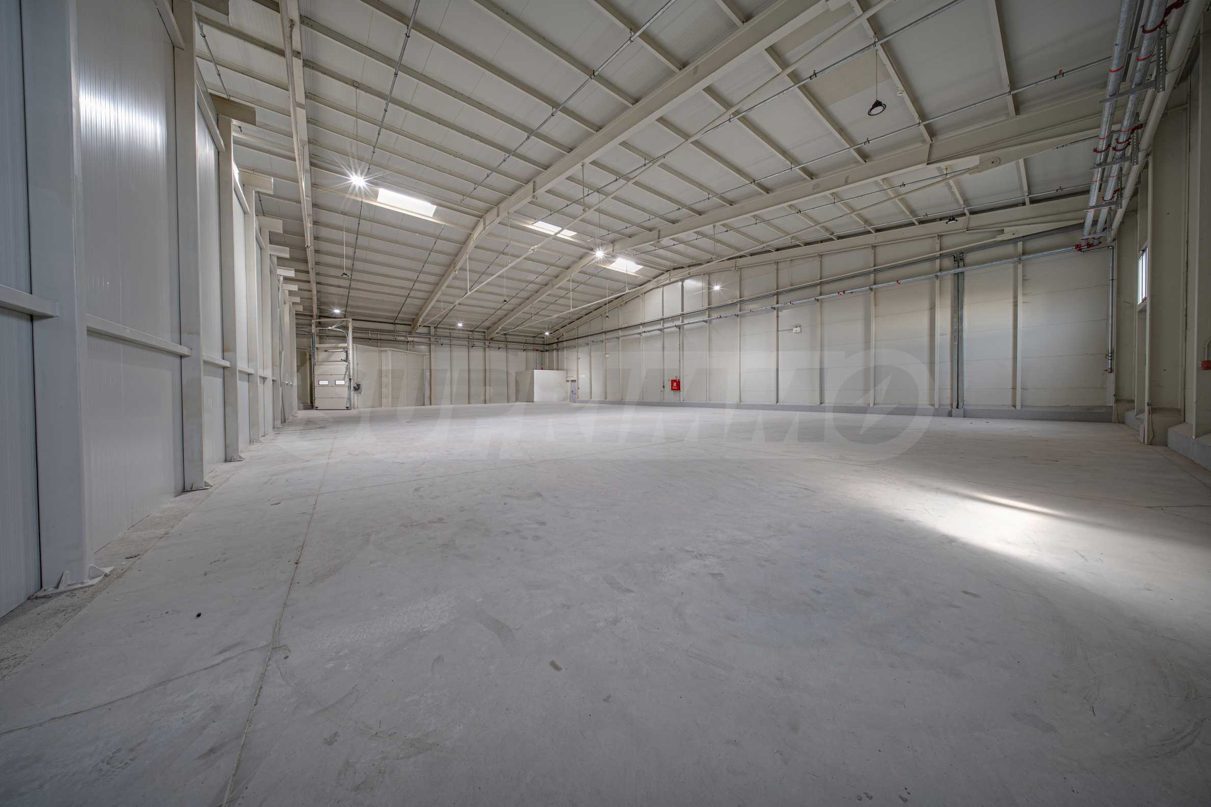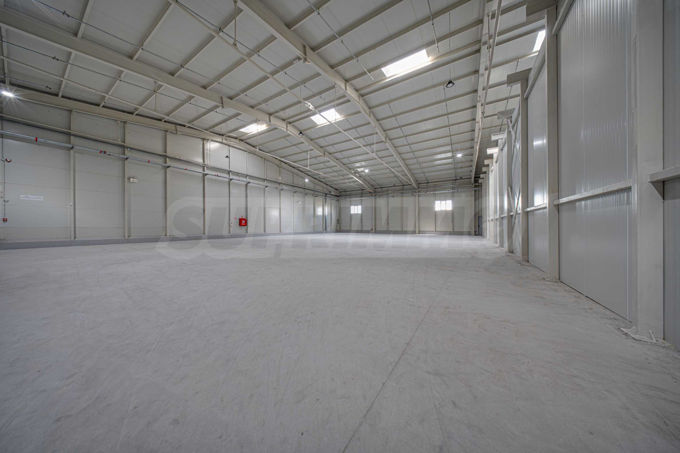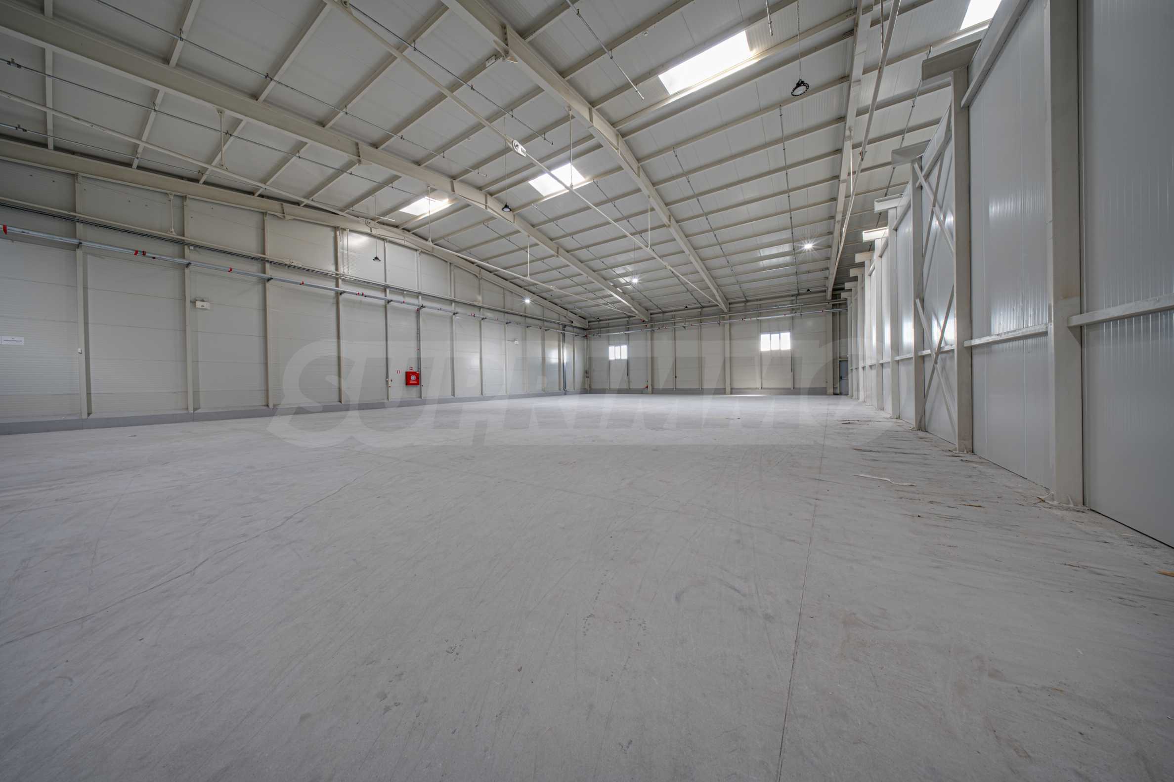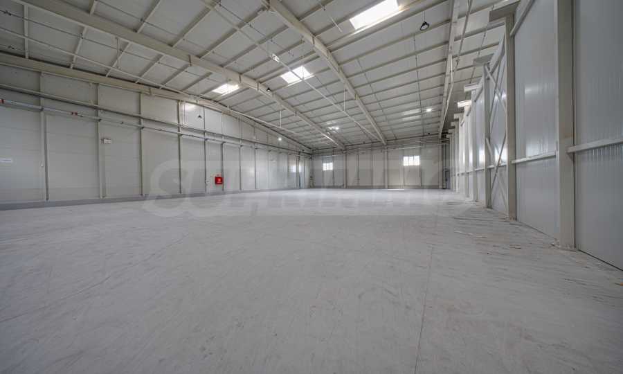 Складът е с пожароизвестяване, СОТ, видеонаблюдение, трифазен ток, вода и под с шлайфан бетон.
