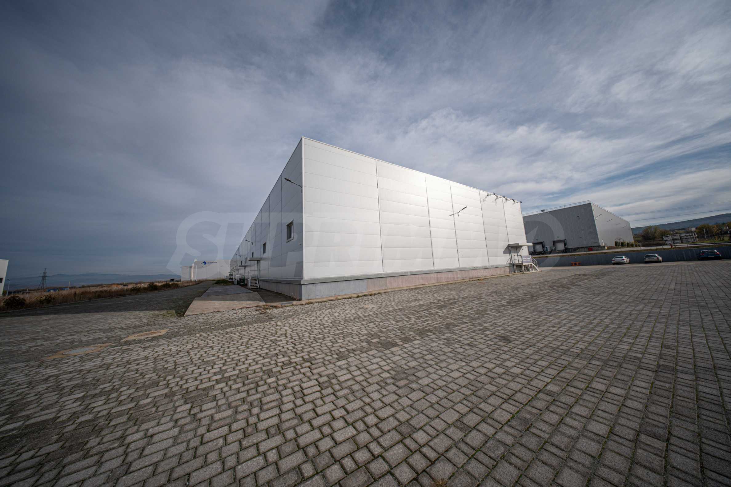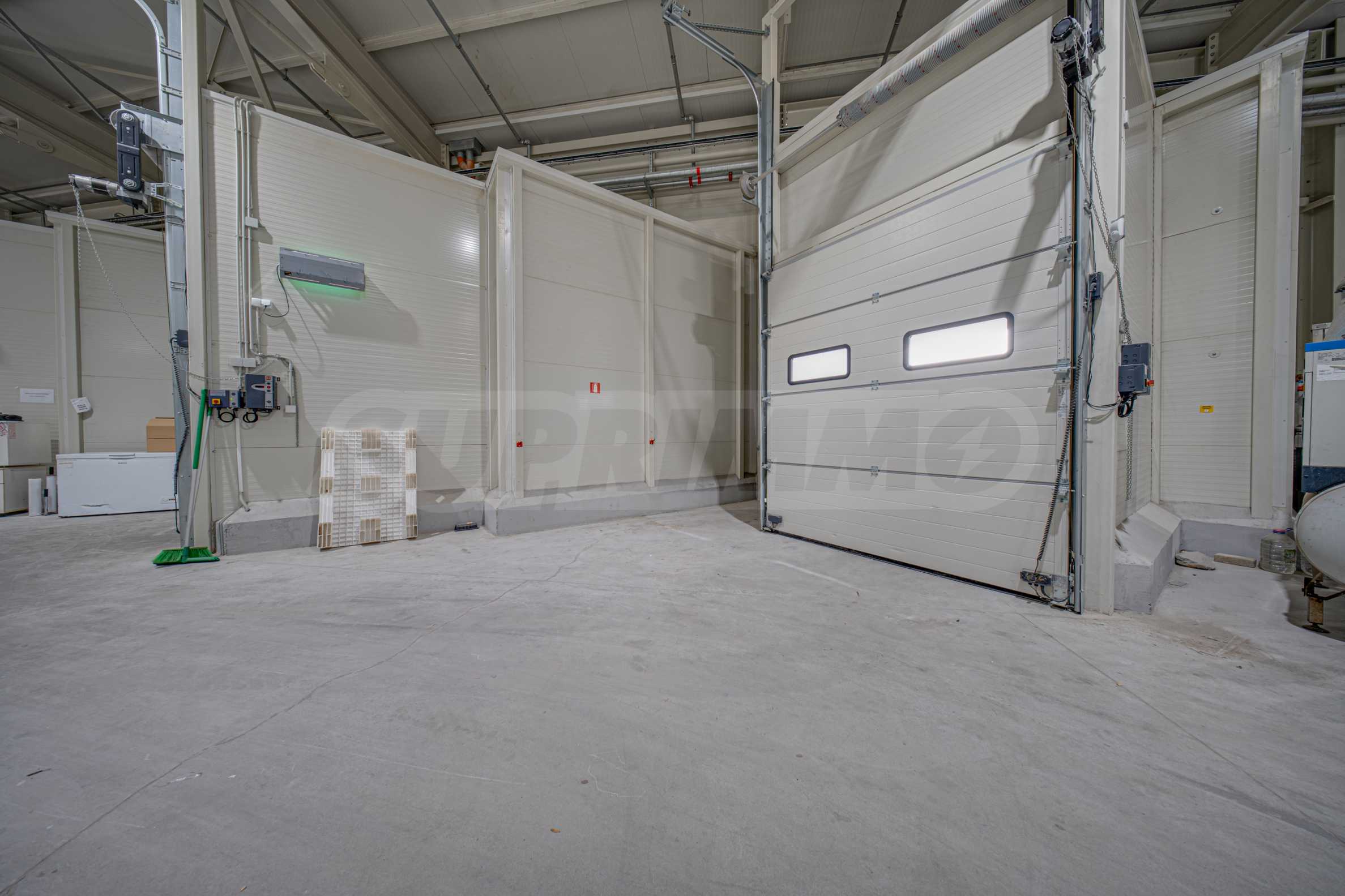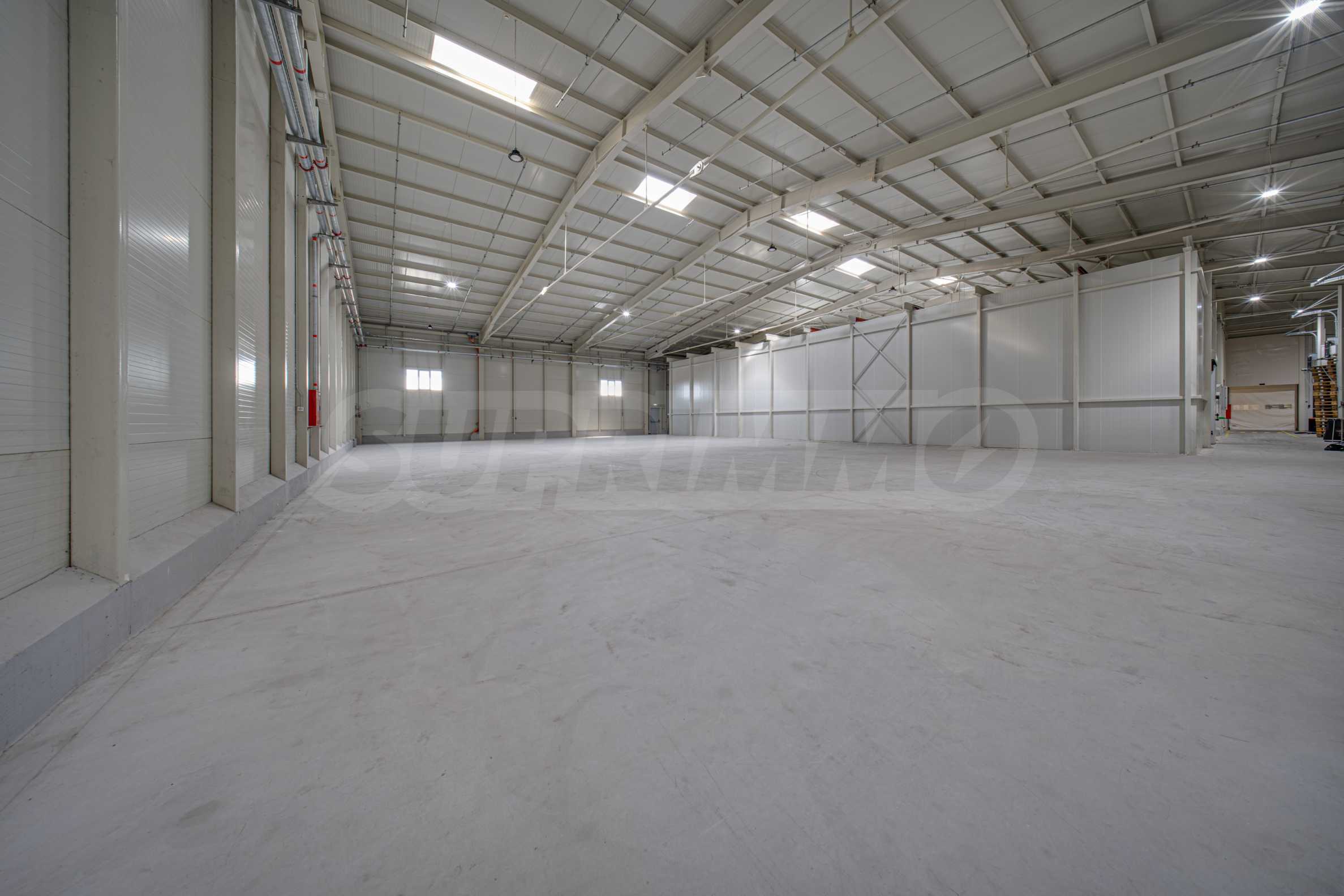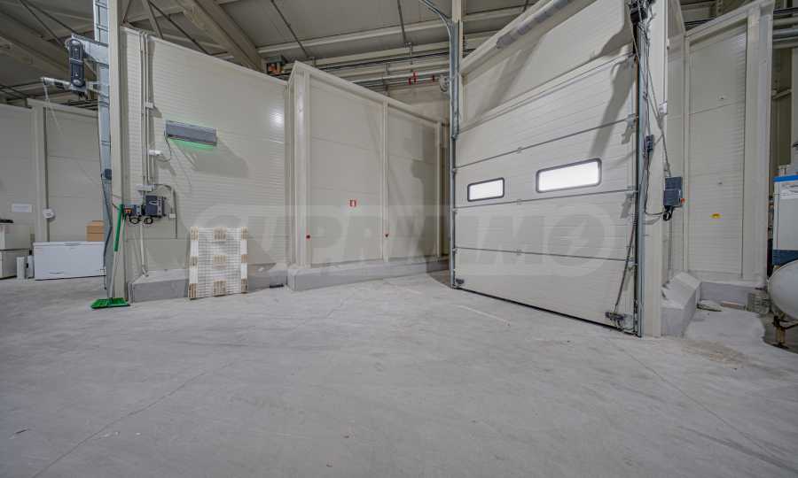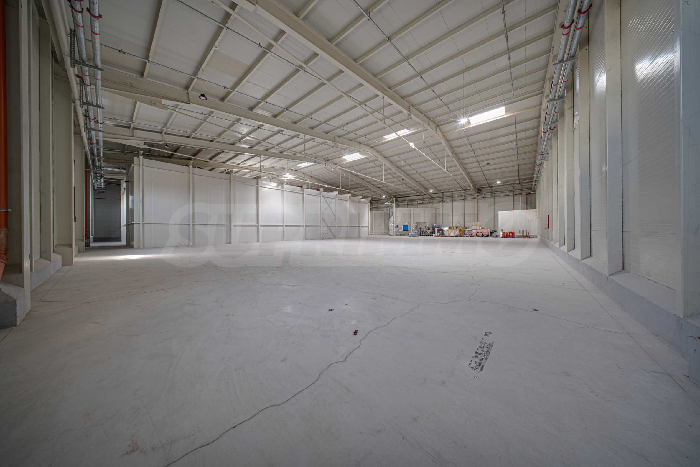 Складът е с пожароизвестяване, СОТ, видеонаблюдение, трифазен ток, вода и под с шлайфан бетон.