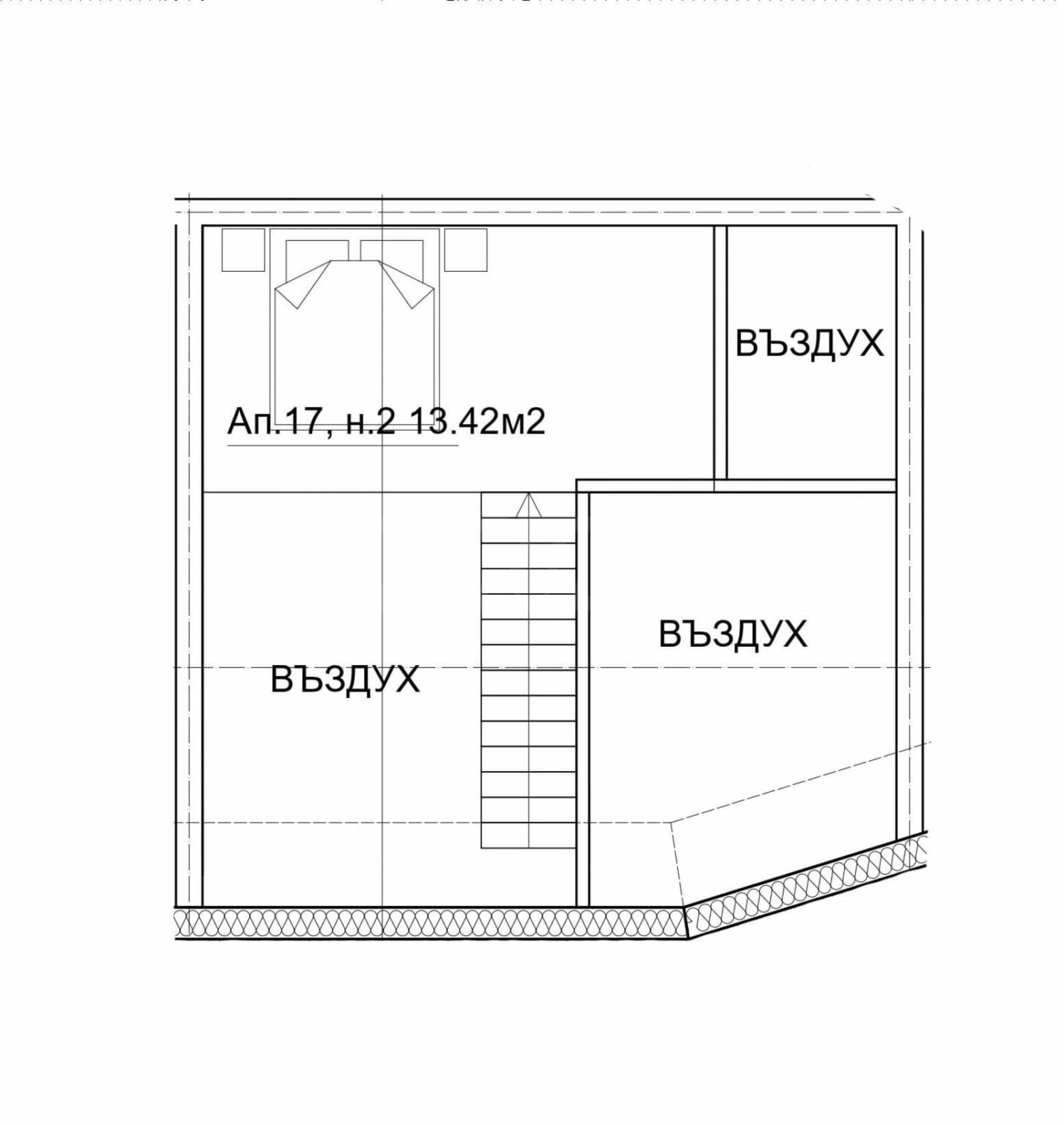 Имотът се намира на 4-ти и 5-ти етаж и има обща площ 165.698 кв.м. Разпределението включва две спални, като втората спалня е на ниво две, баня/тоалетна, килер, галерия - 13.42 кв.м. просторна дневна с тераса. Апартаментът се издава по БДС, с качествена 5-камерна дограма с троен стъклопакет - Veka, с блиндирана входна врата.