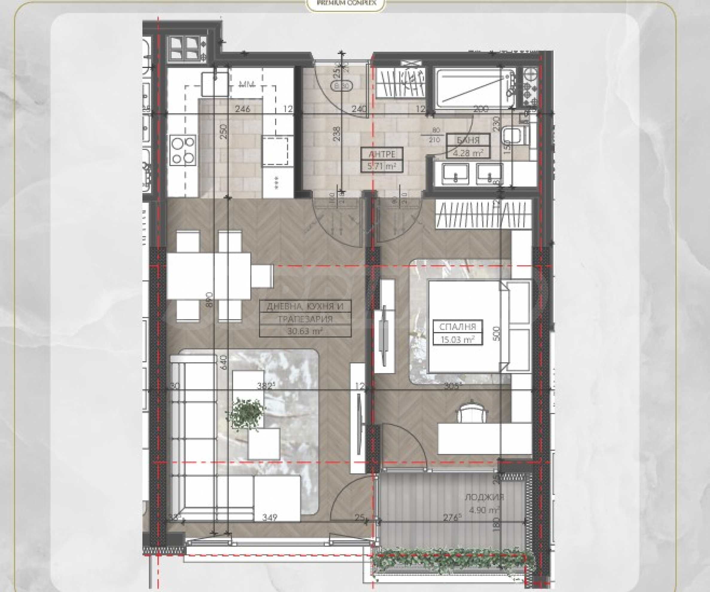 • Монолитна стоманобетонна конструкция, проектирана и изпълнена по най-съвременни стандарти за дълготрайност и устойчивост;