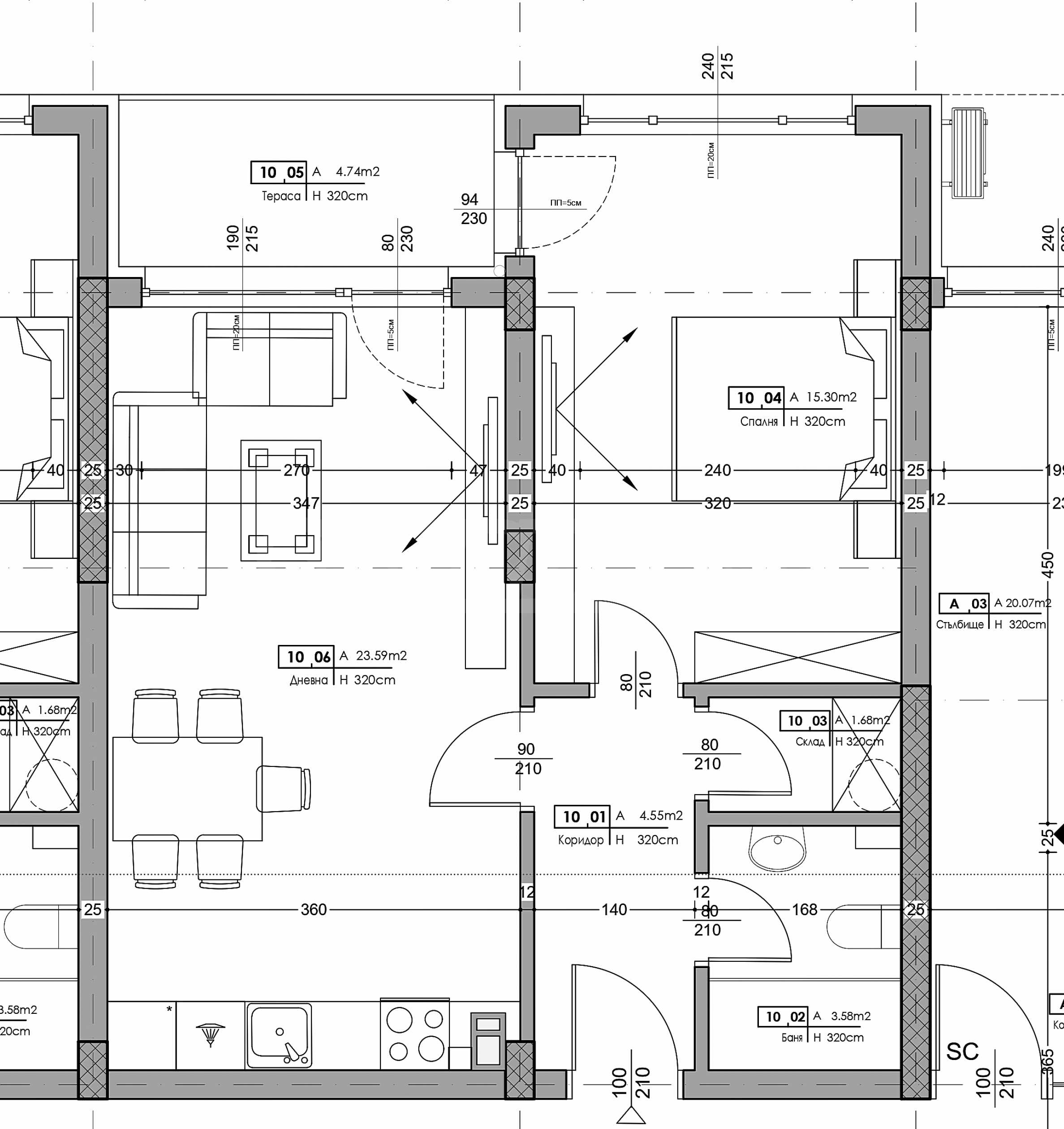 • светла височина на апартаментите от 1 до 3 етаж - 2,80 м;