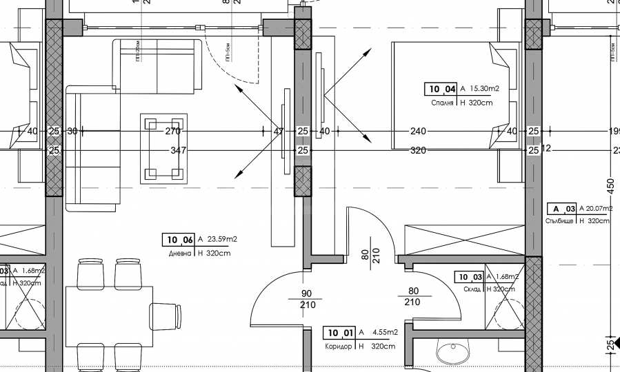 • светла височина на мансардите на 4 етаж - 3,40 м;