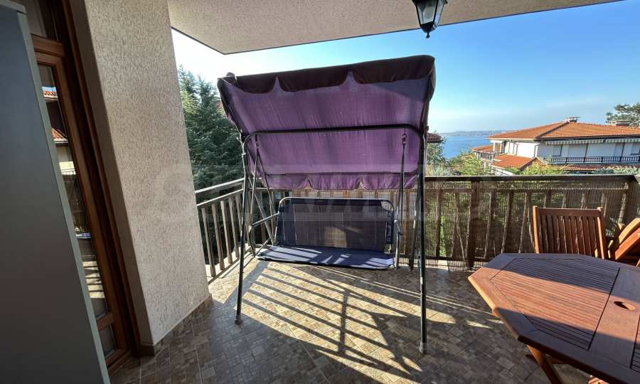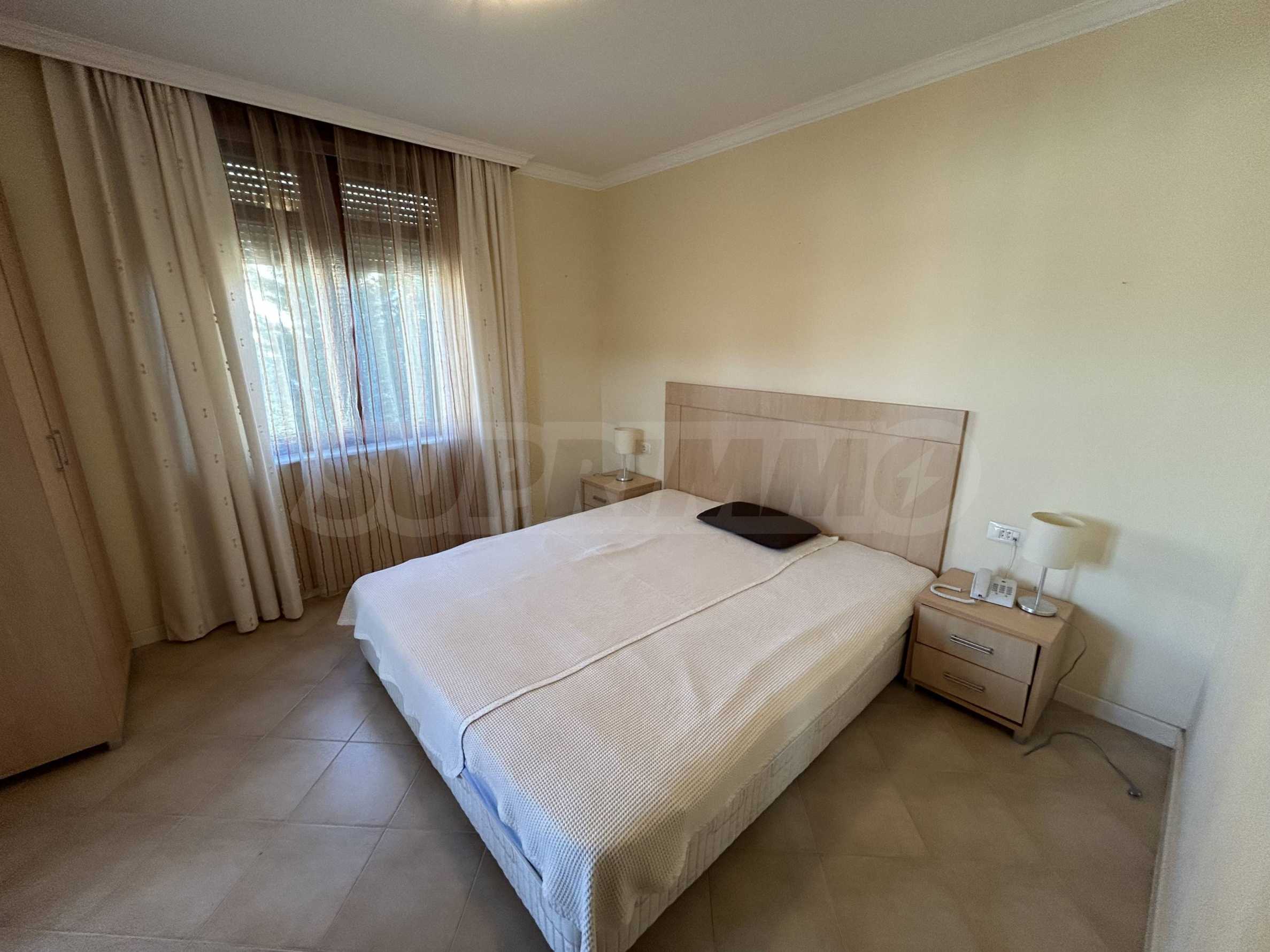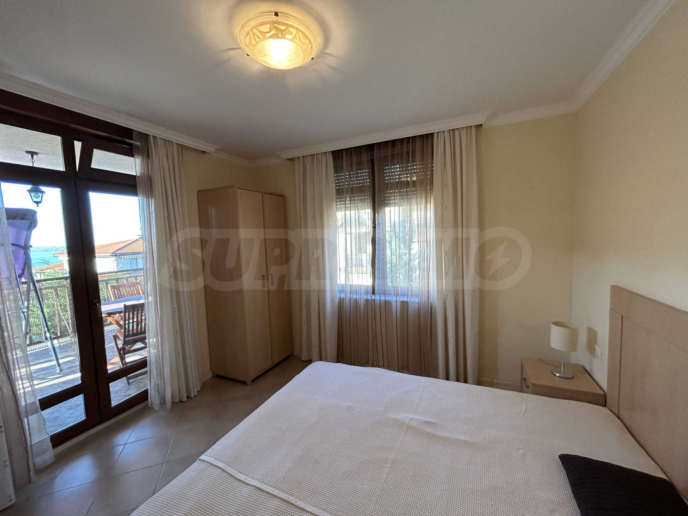 Имотът се намира на среден етаж, с обща площ от 89 кв.м, ориентиран към вътрешния двор на комплекса. Жилището е оборудвано с нови мебели и техника, запазва усещане за светлина, мекота и морски характер. Подходящо е както за ваканционно ползване, така и за целогодишен престой.