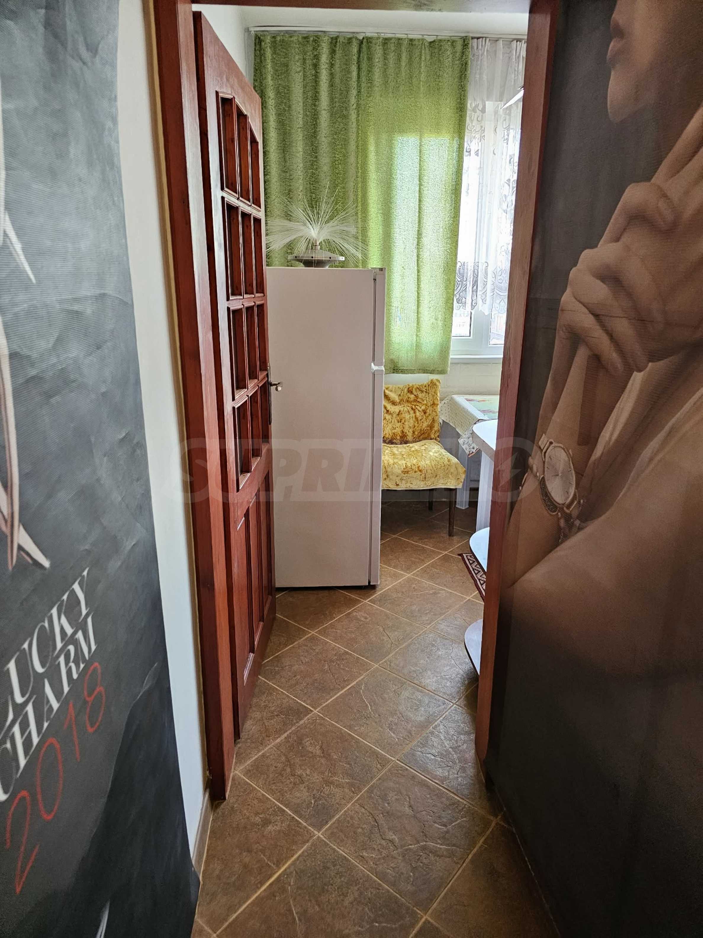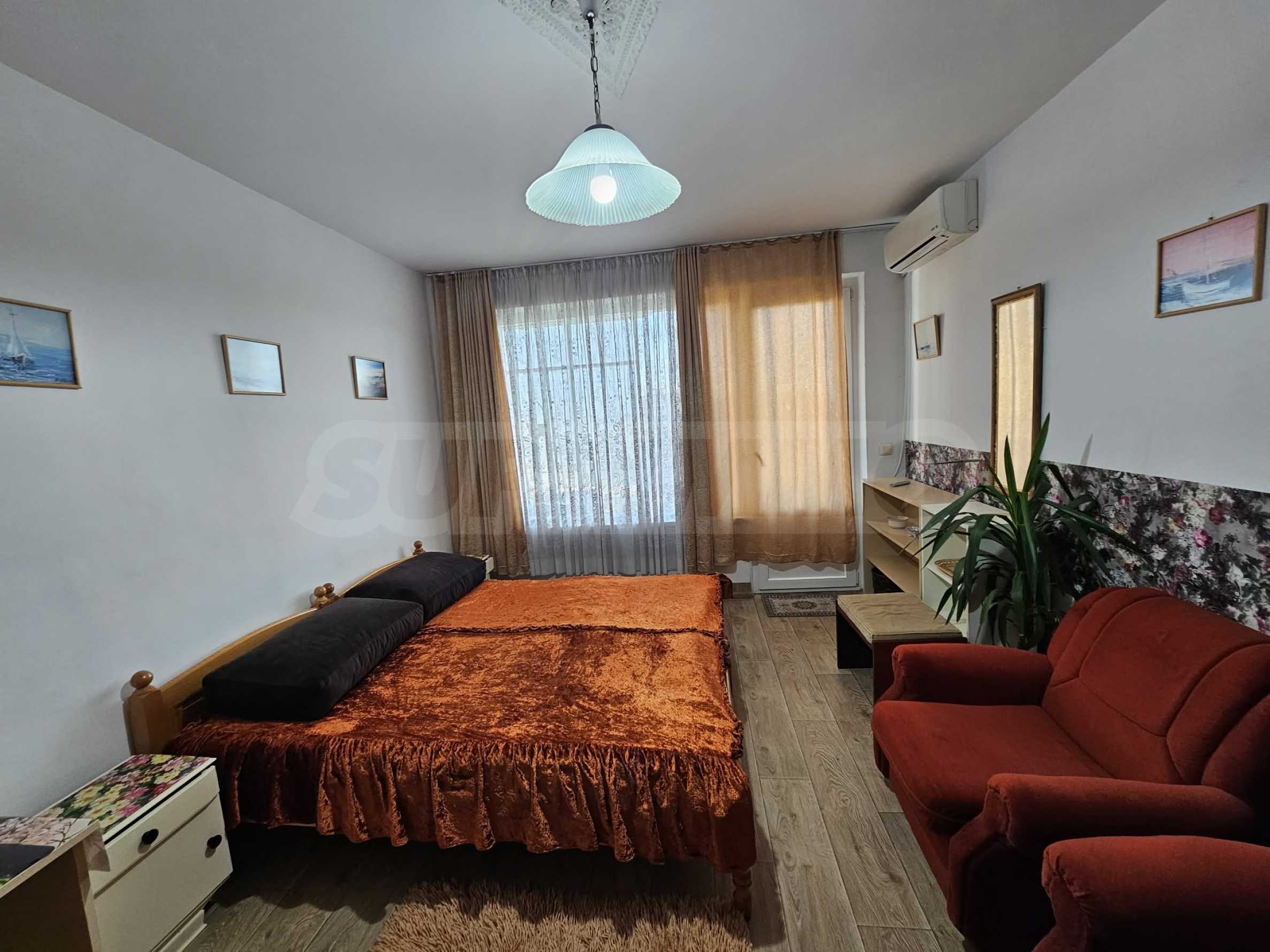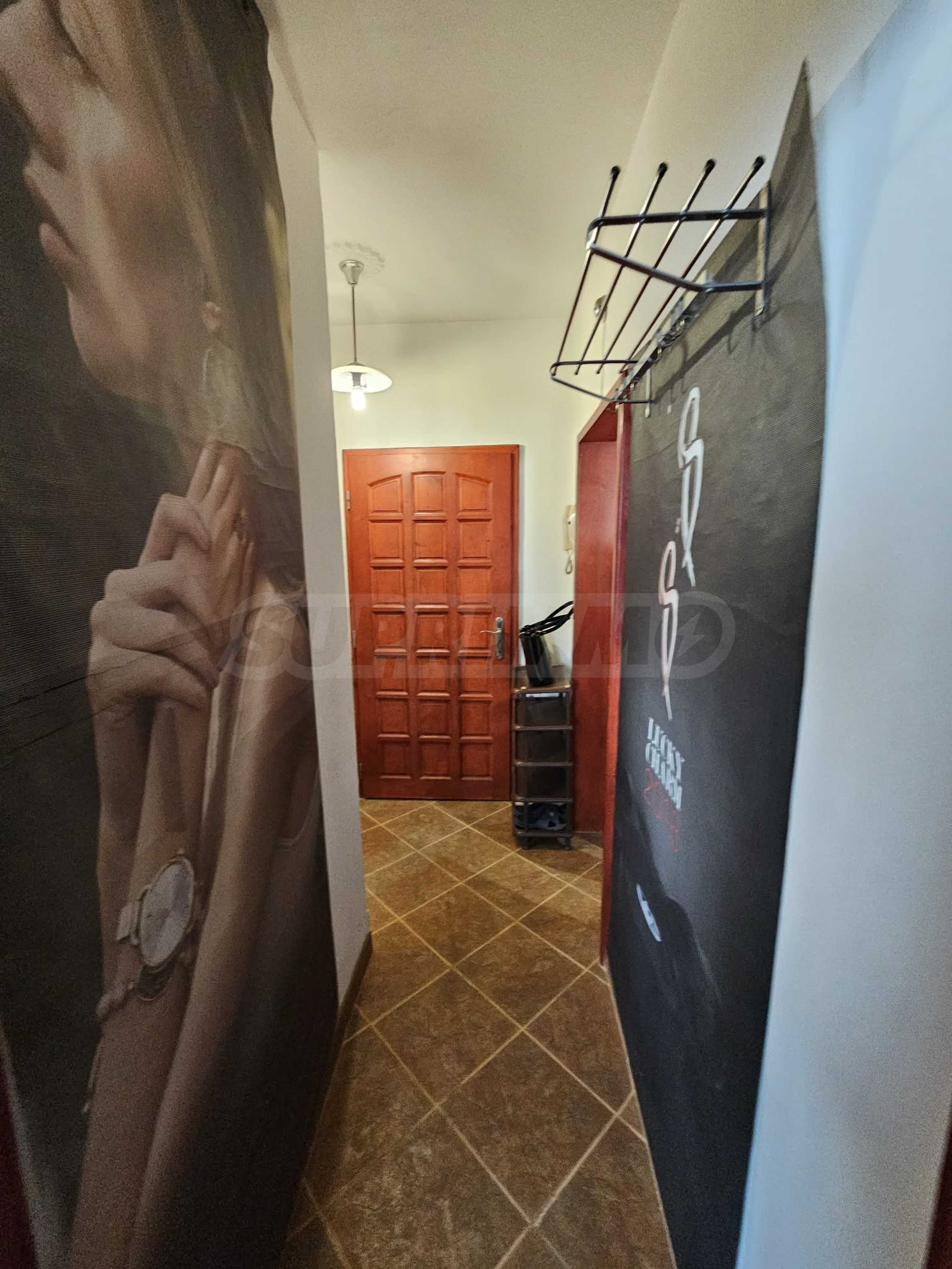 Жилището е напълно обзаведено и оборудвано с мебели, електроуреди, климатик, готово е за нанасяне. Подходящо е за студенти, учащи се или работещи.
