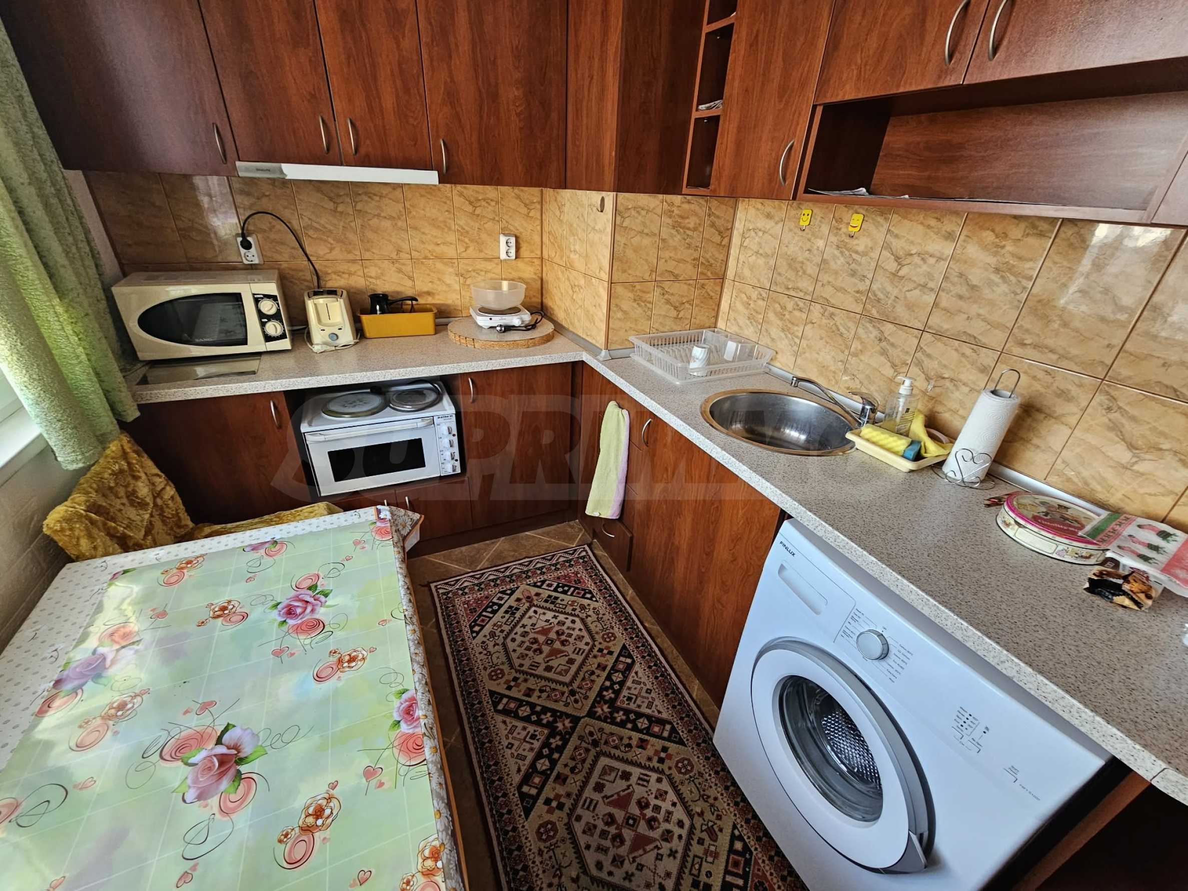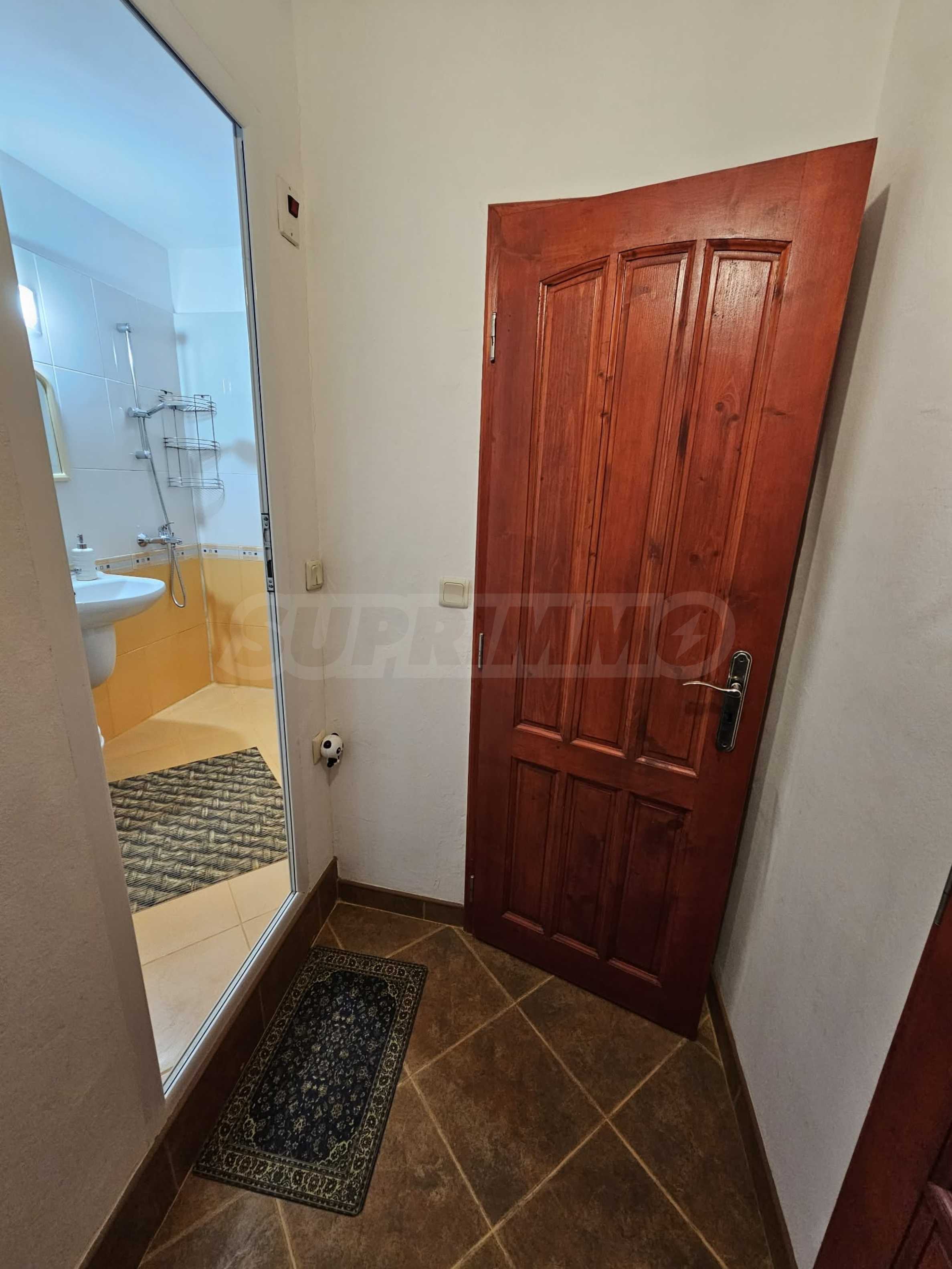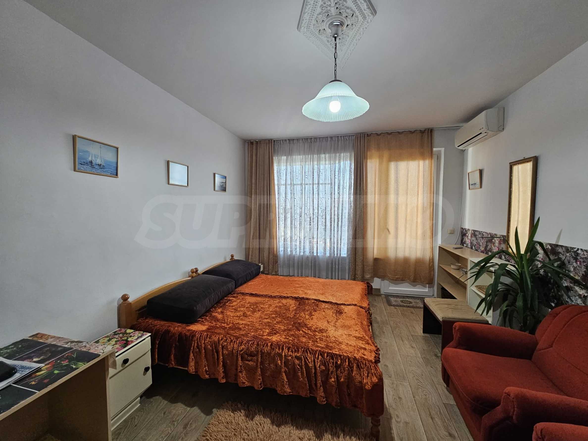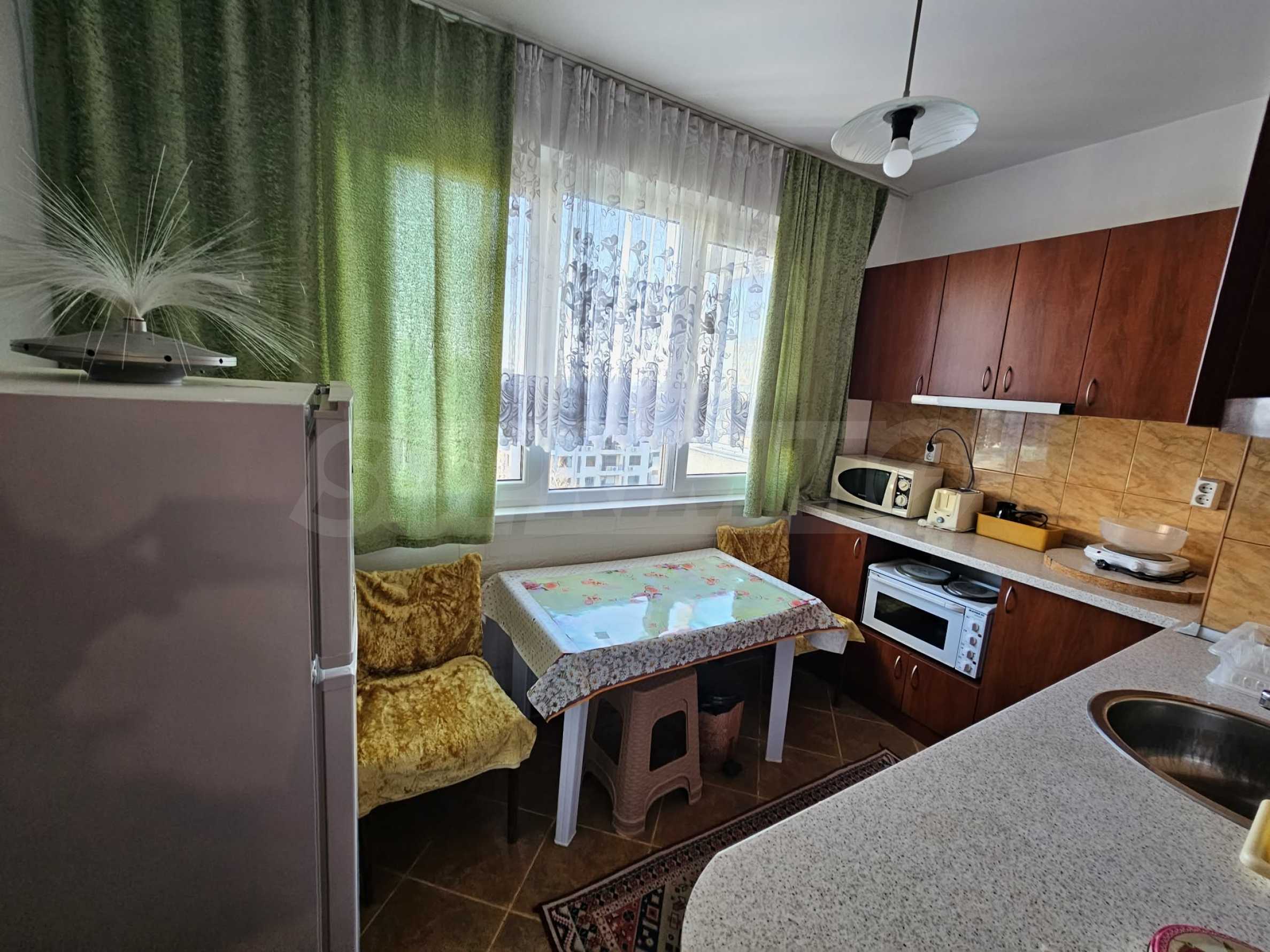 Жилището е напълно обзаведено и оборудвано с мебели, електроуреди, климатик, готово е за нанасяне. Подходящо е за студенти, учащи се или работещи.