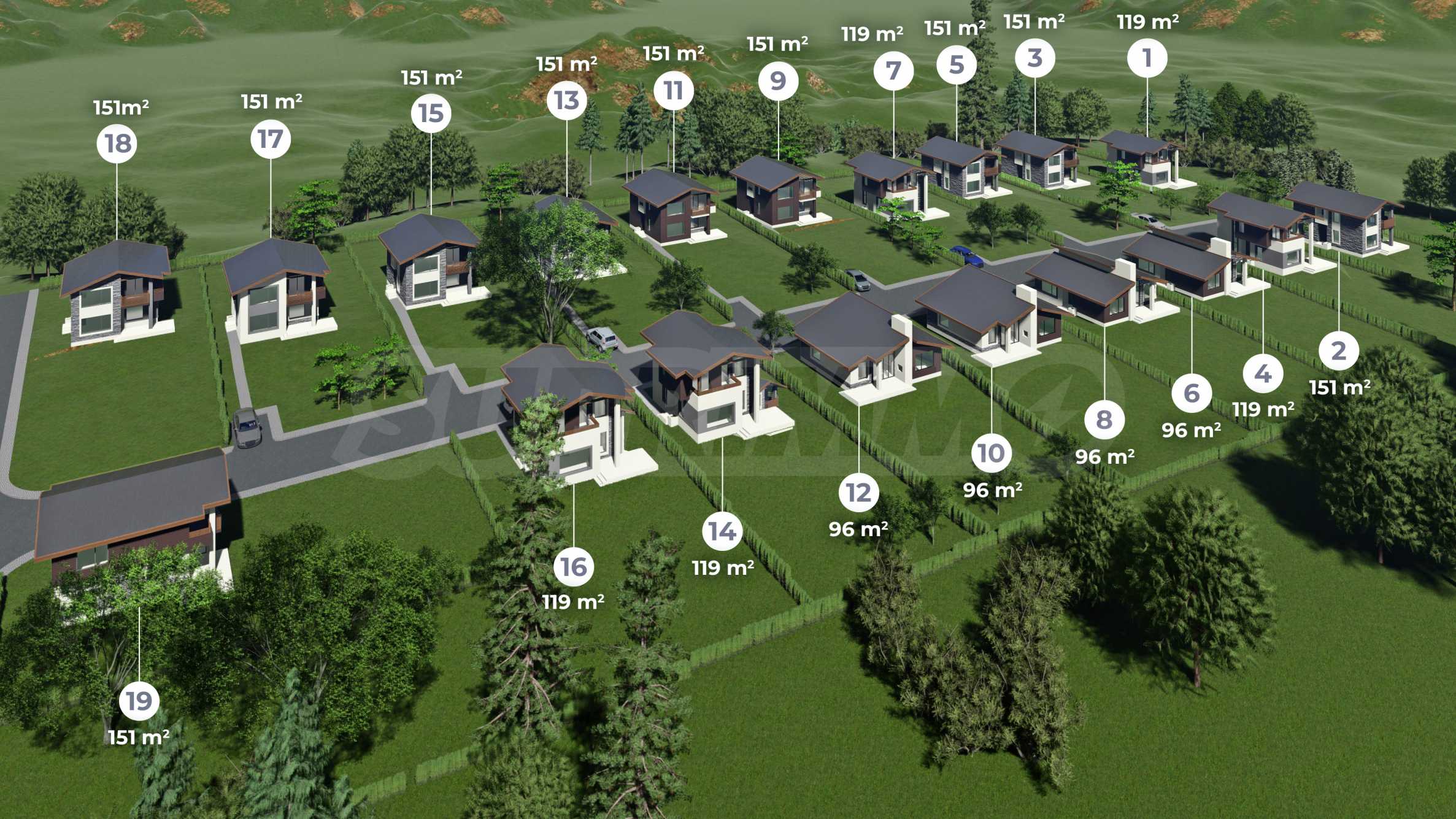 Къщите са три различни типа, проектирани с внимание към функционалността, енергийната ефективност и съвременния начин на живот.